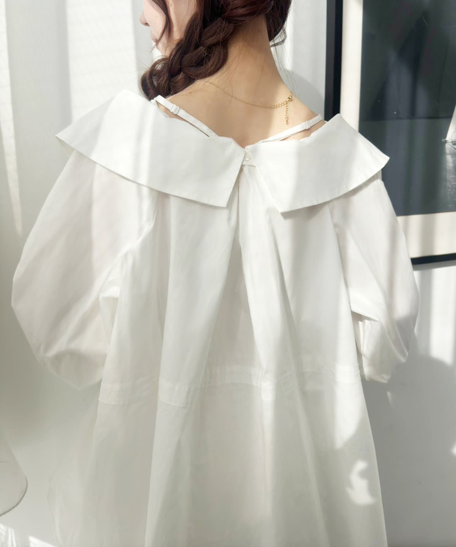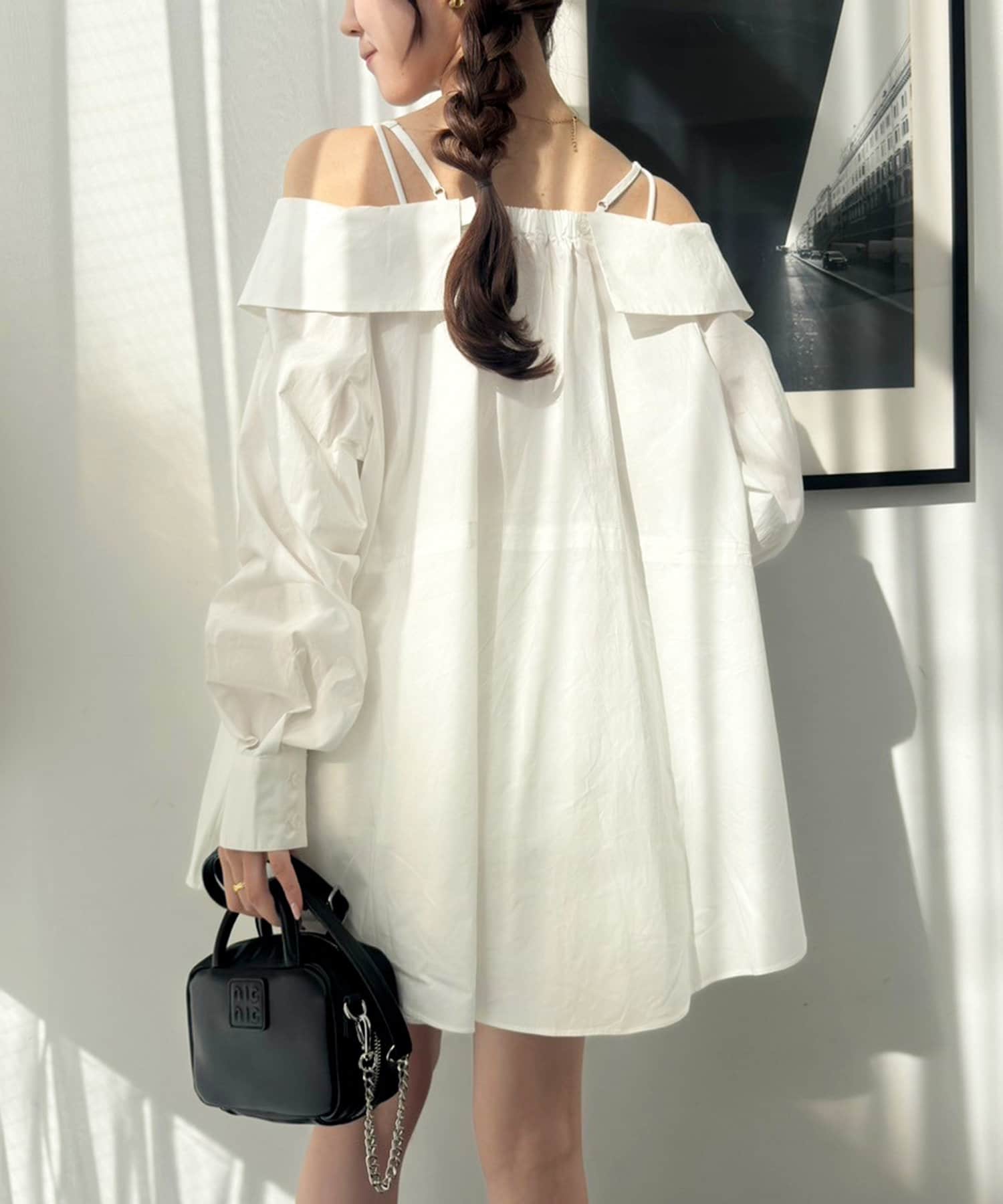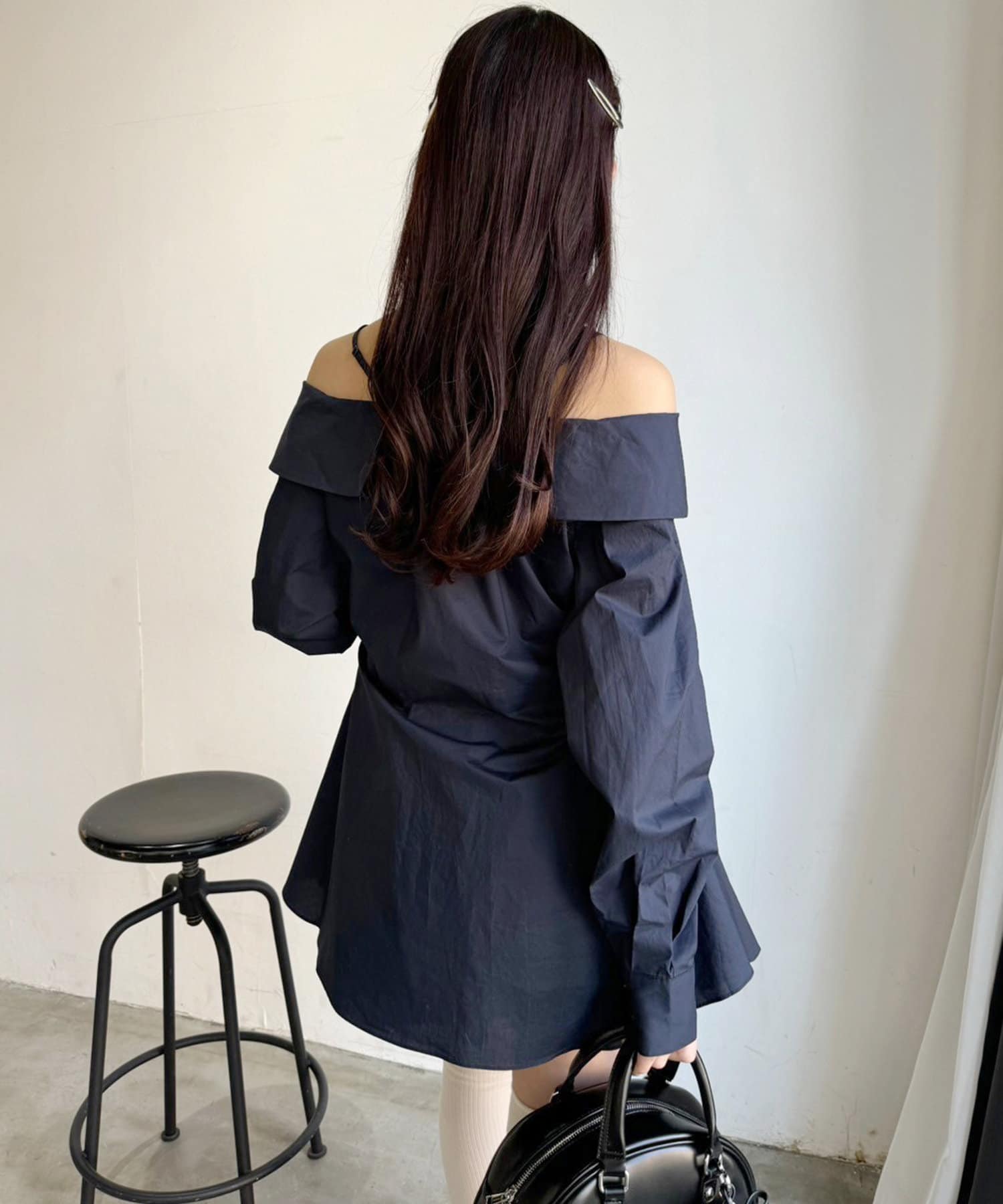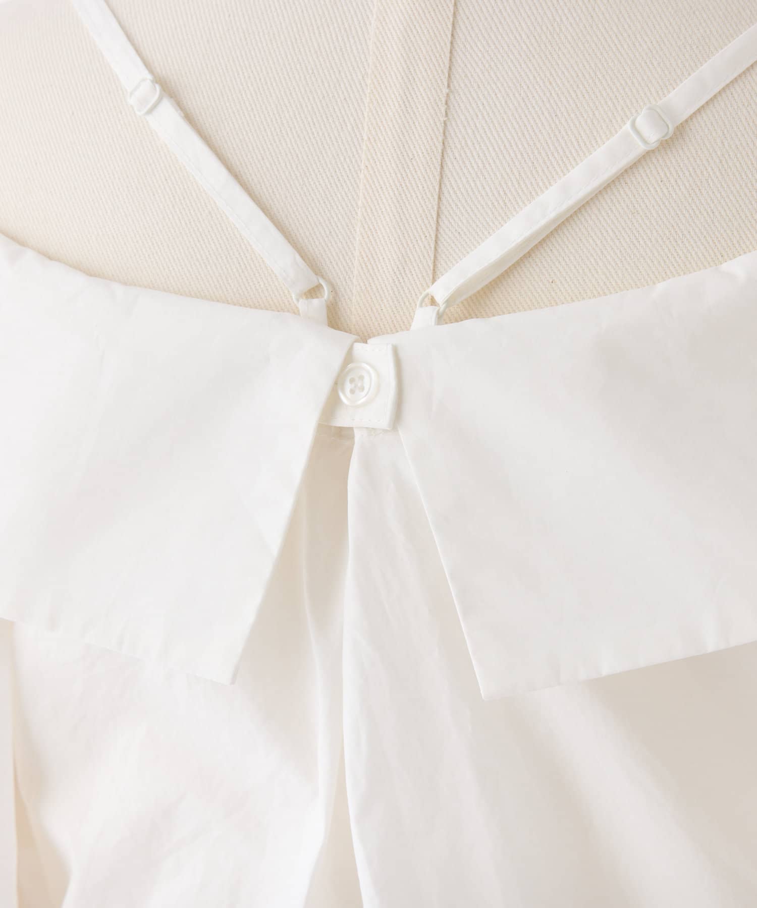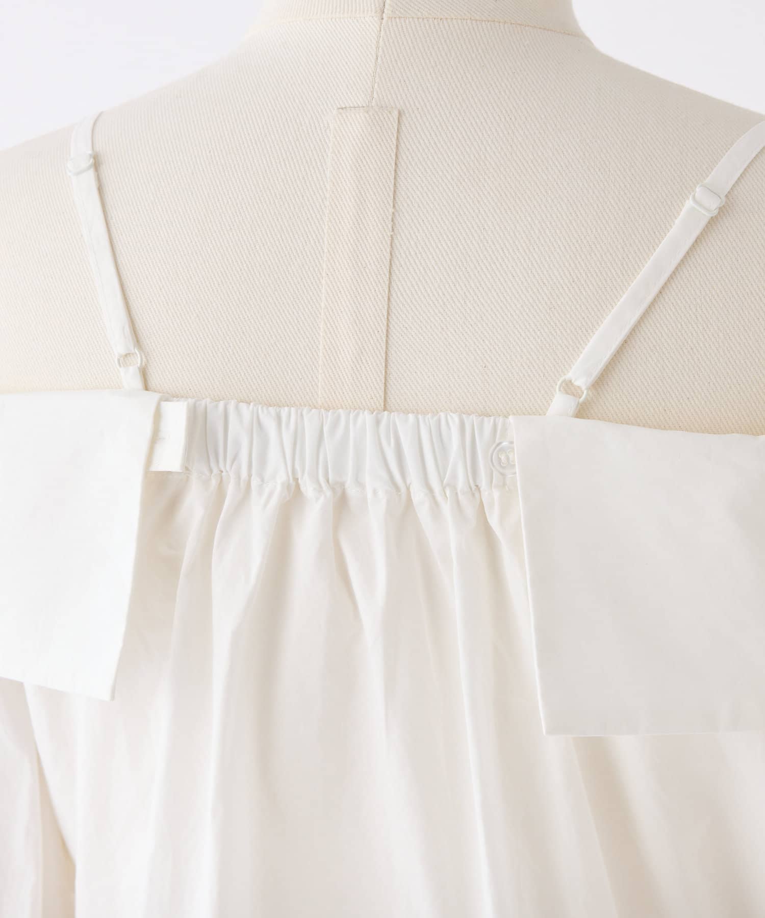 また、首に付いているボタンを留めると、オフショルの開き具合を調節できます◎