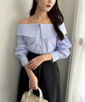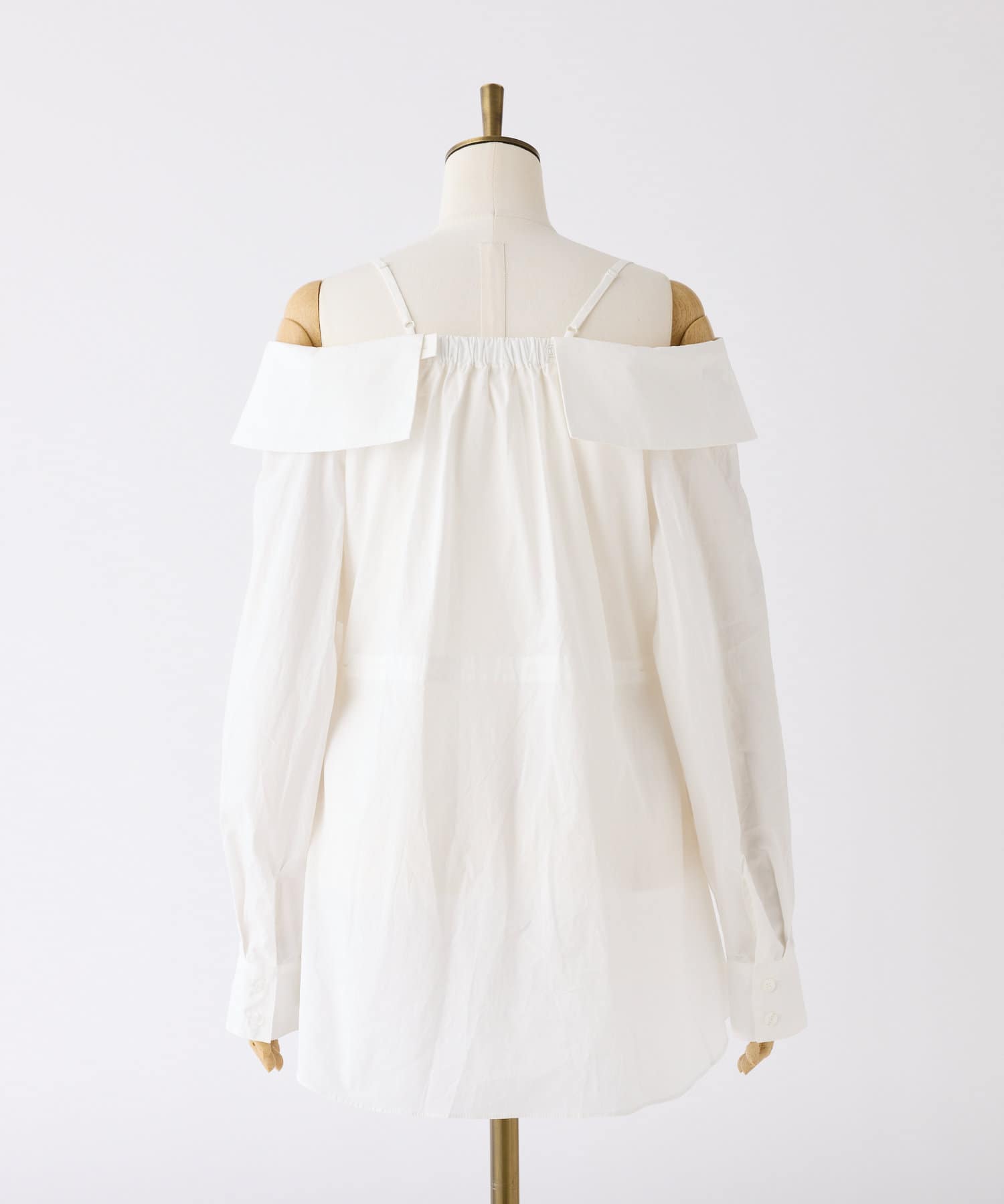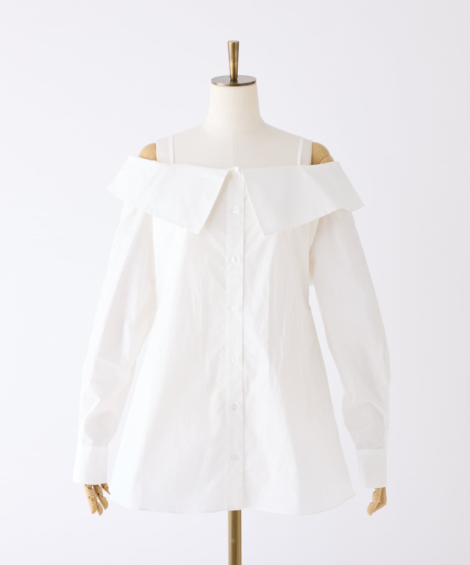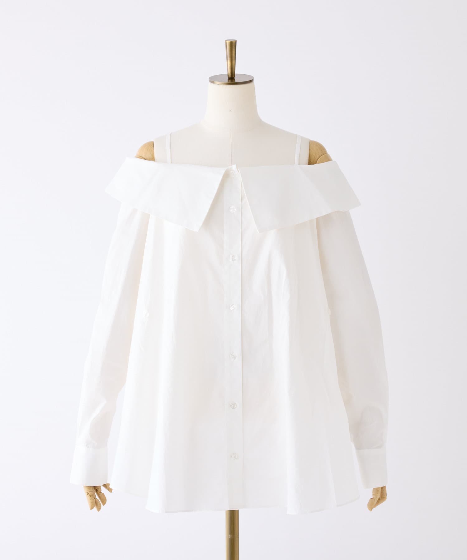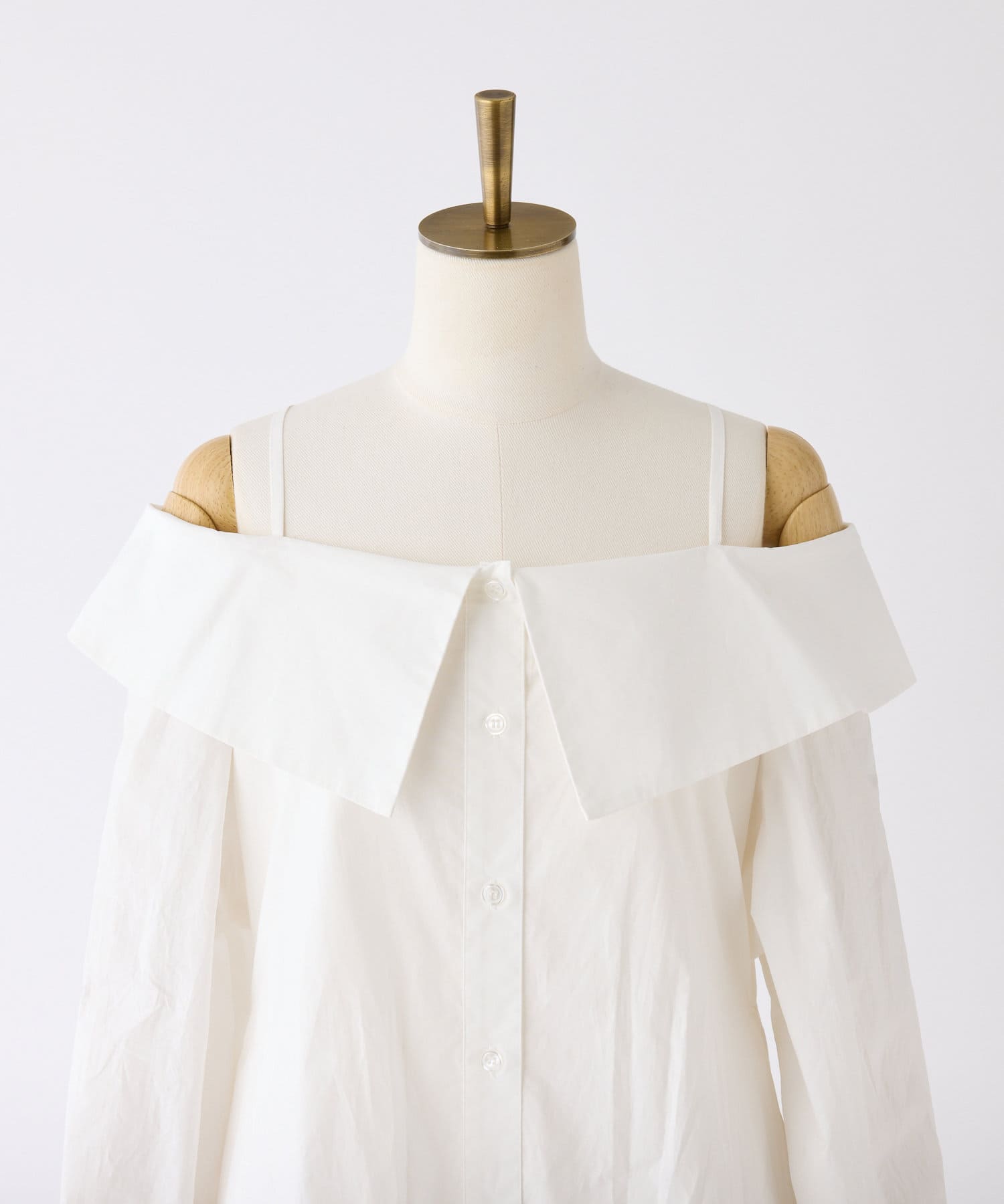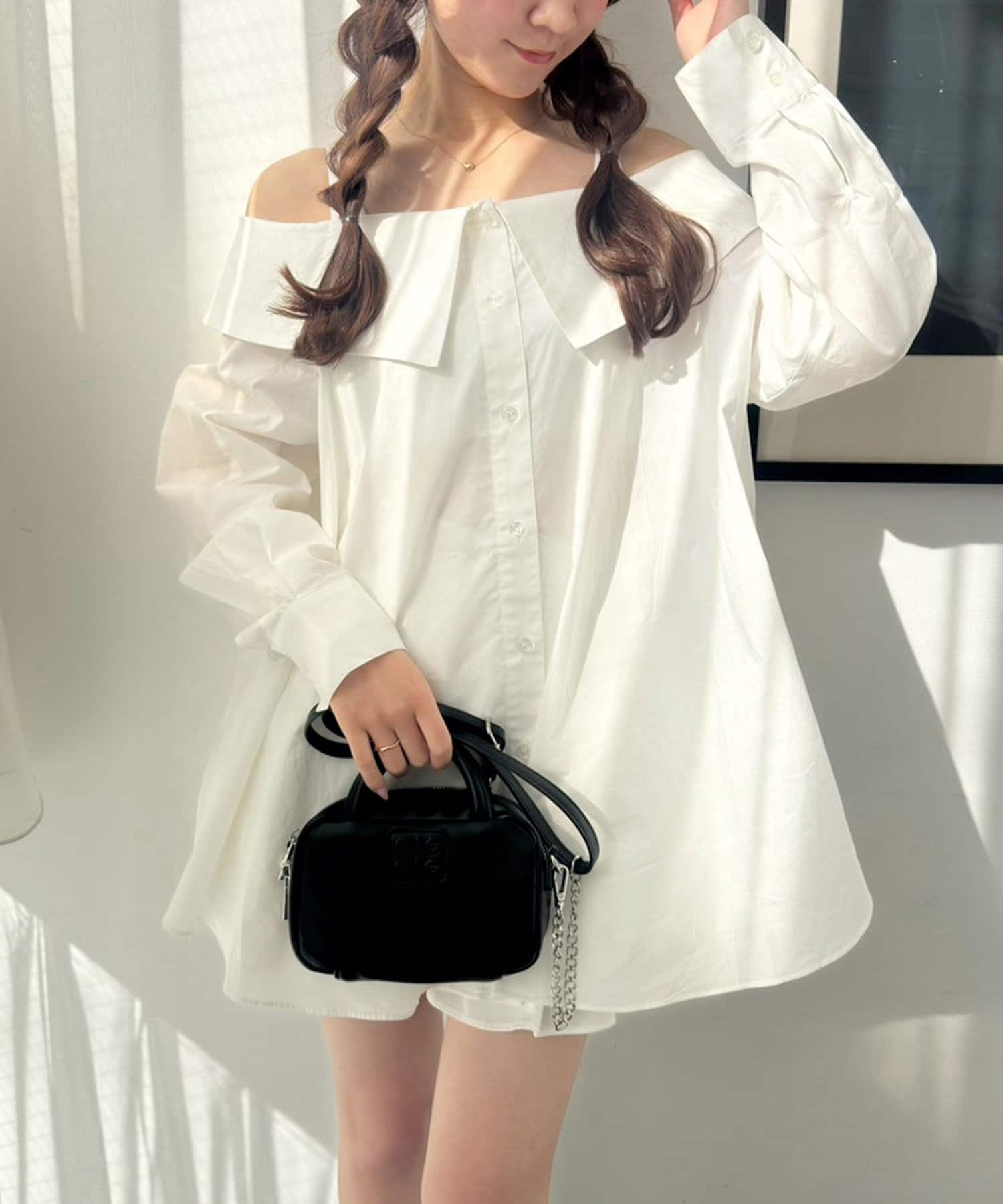 また、首に付いているボタンを留めると、オフショルの開き具合を調節できます◎