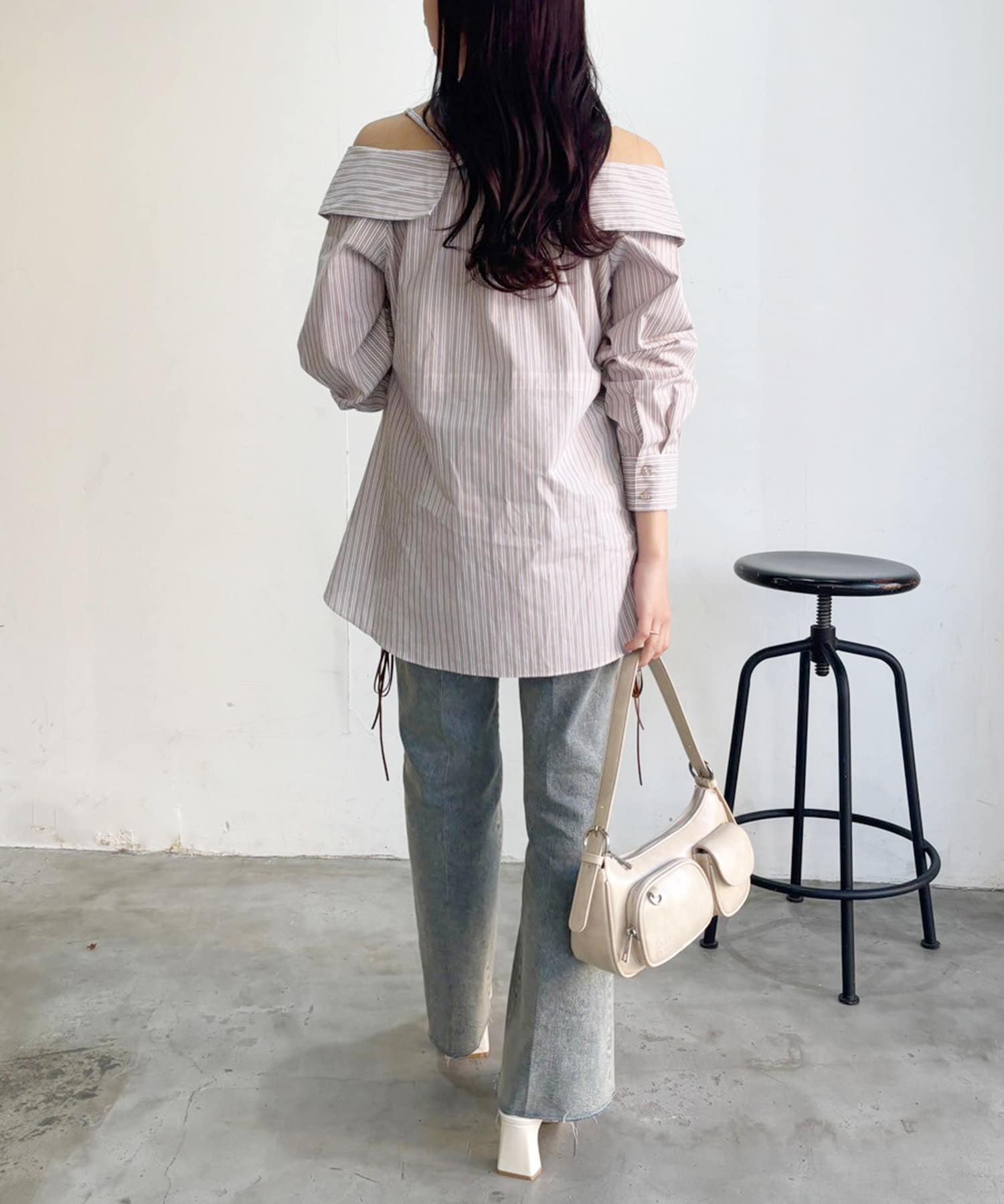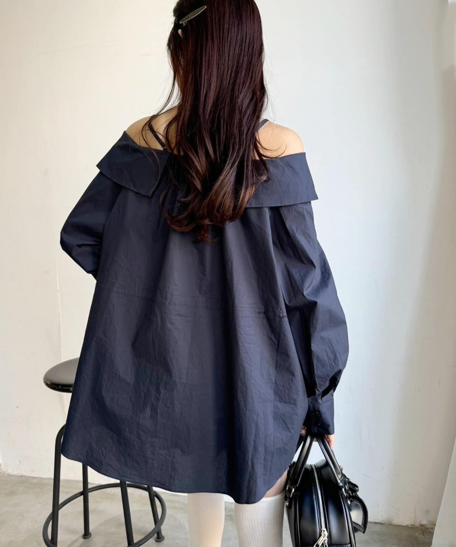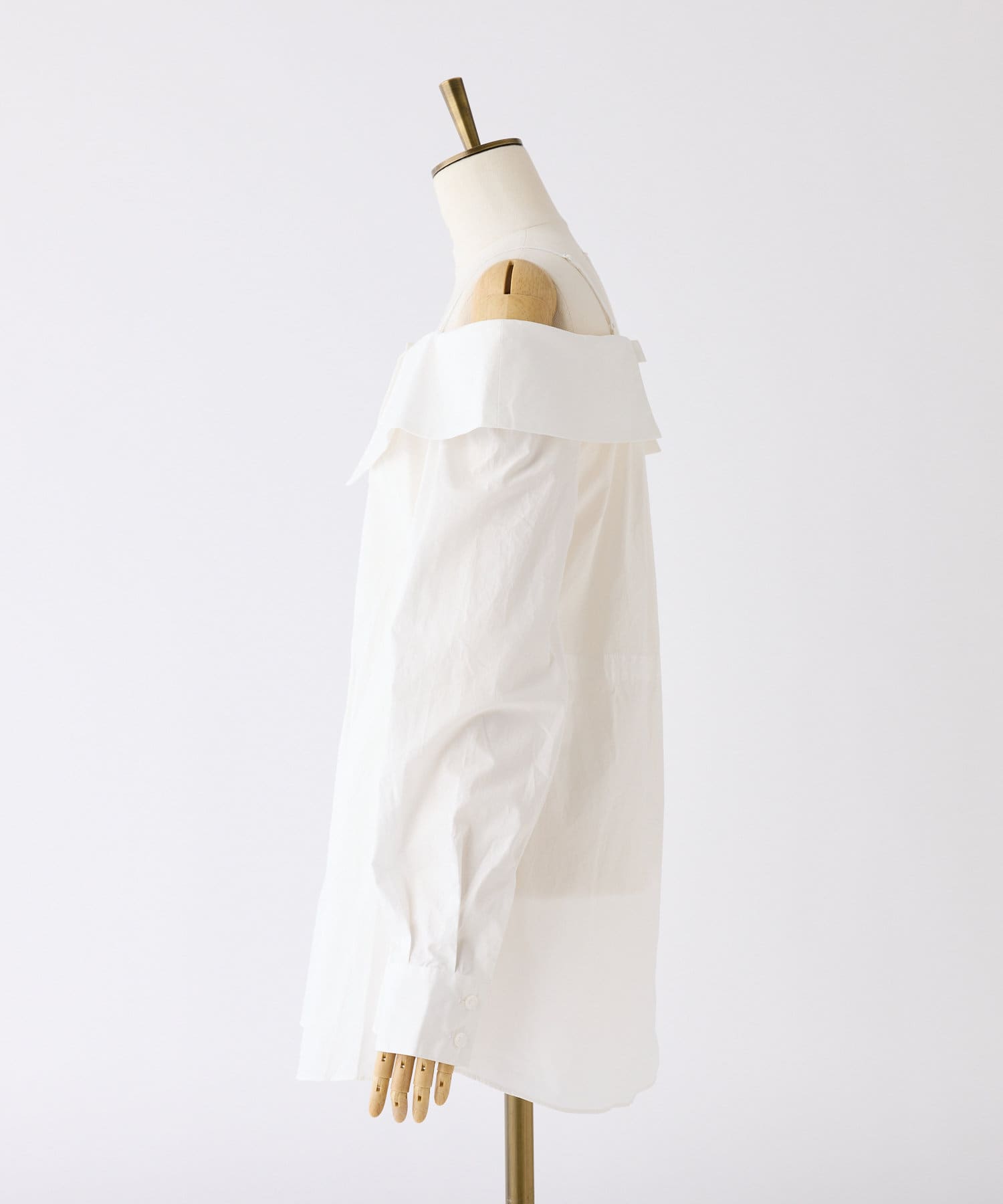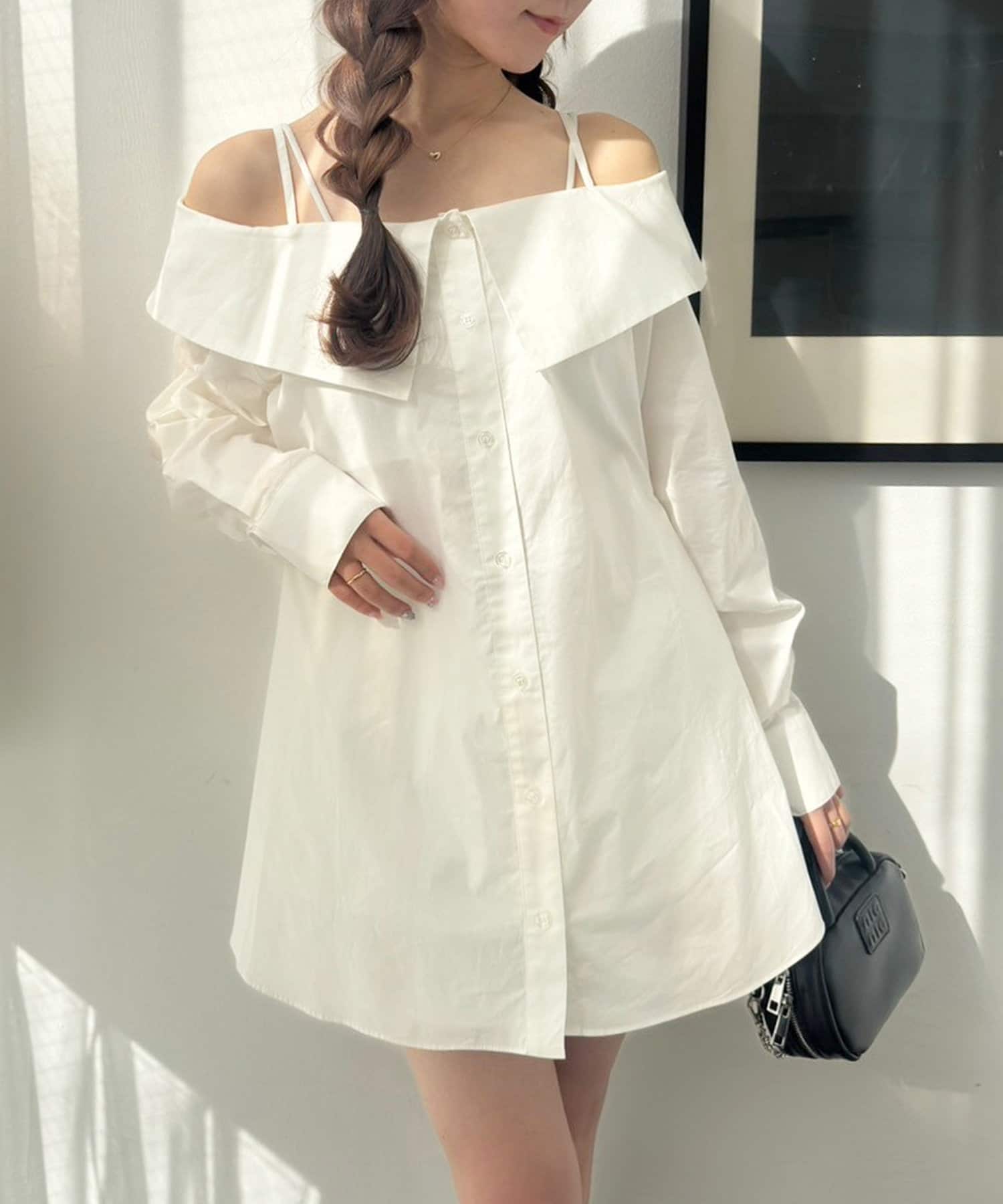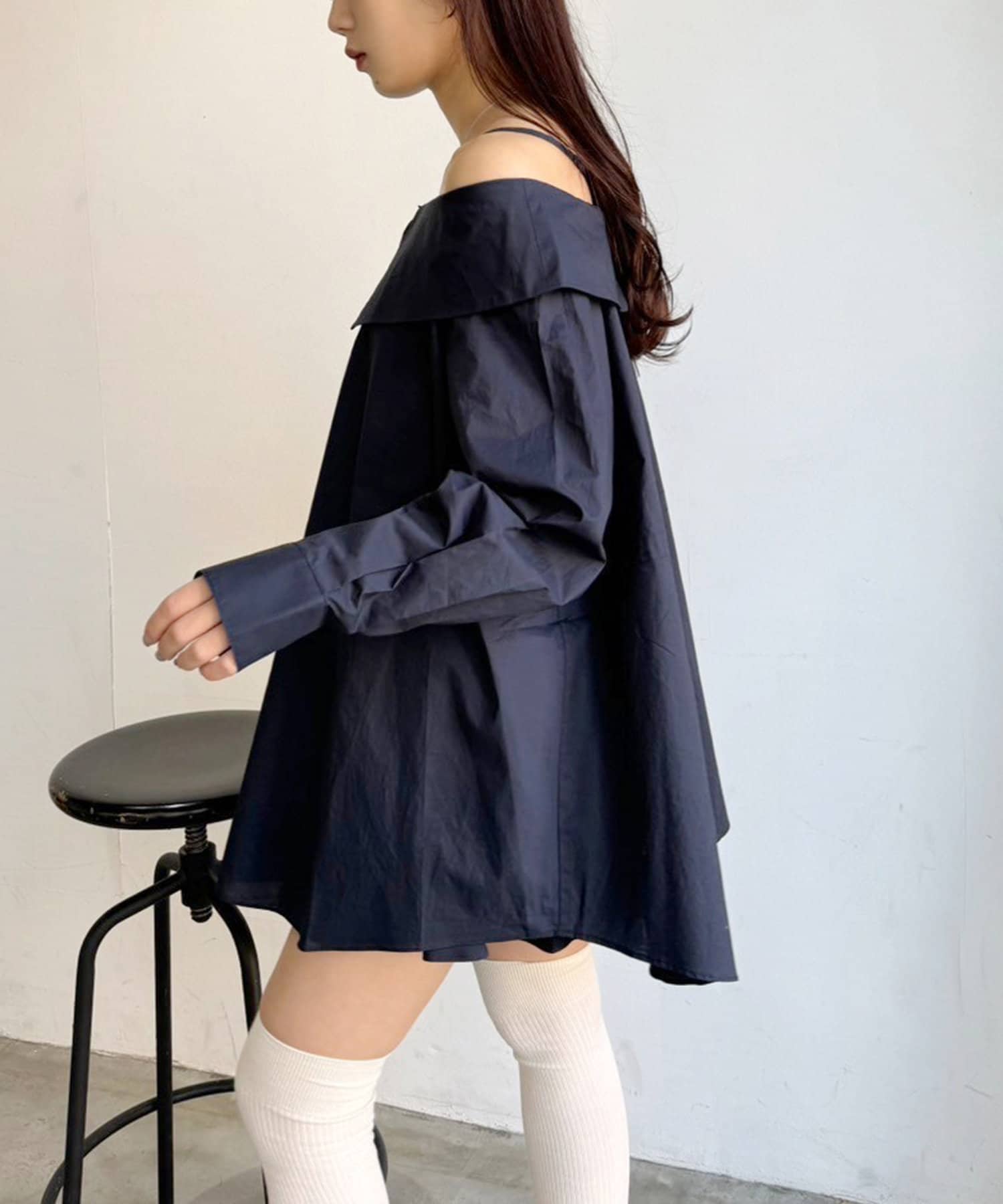 また、首に付いているボタンを留めると、オフショルの開き具合を調節できます◎
