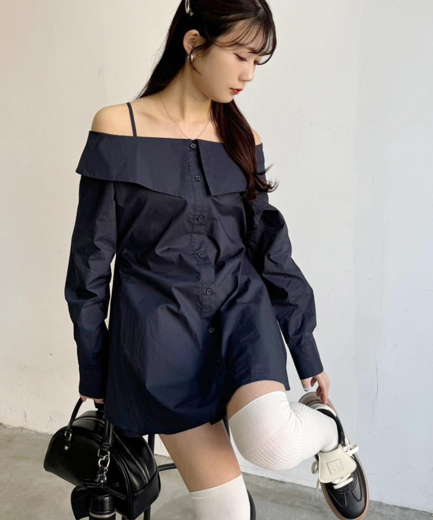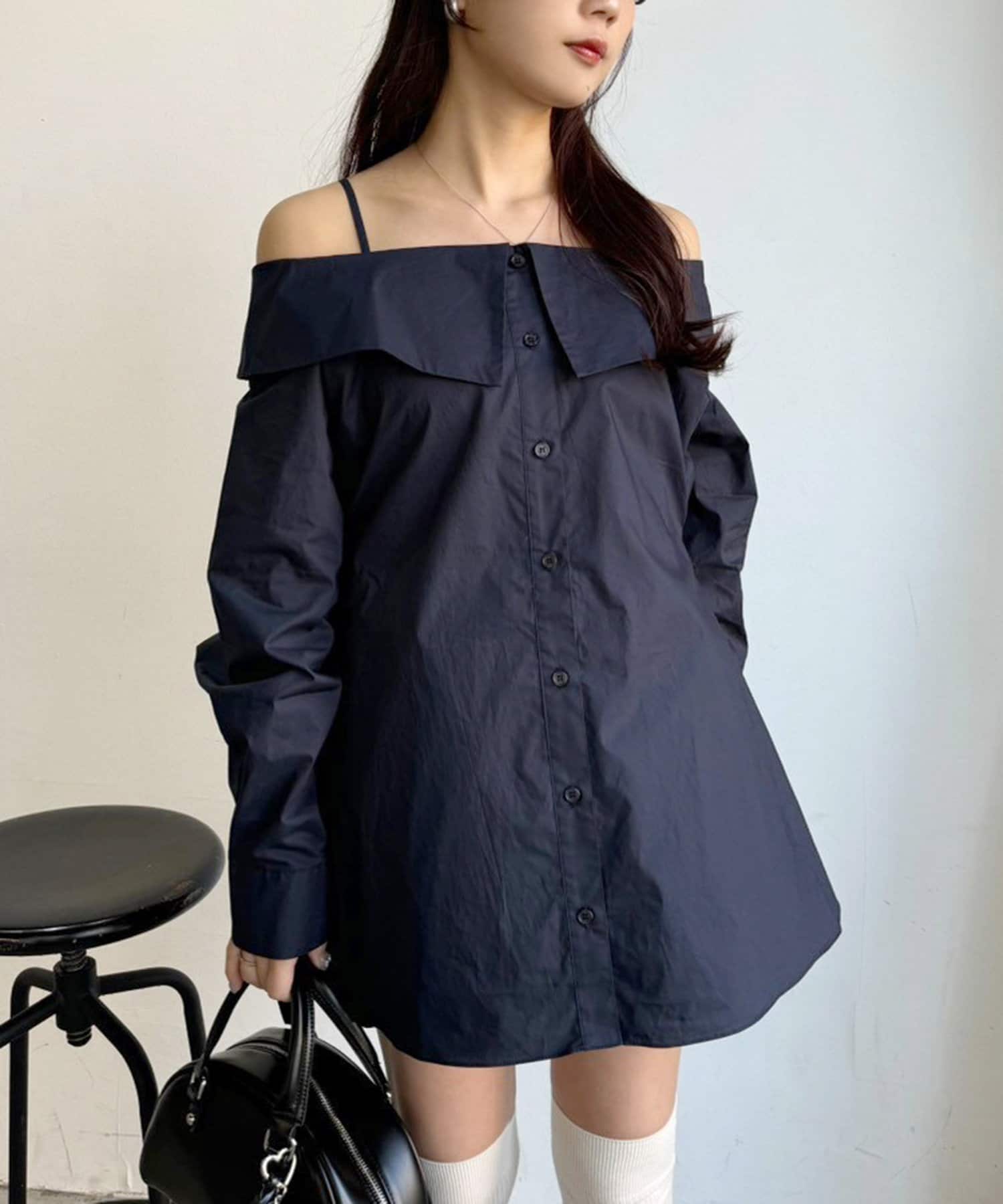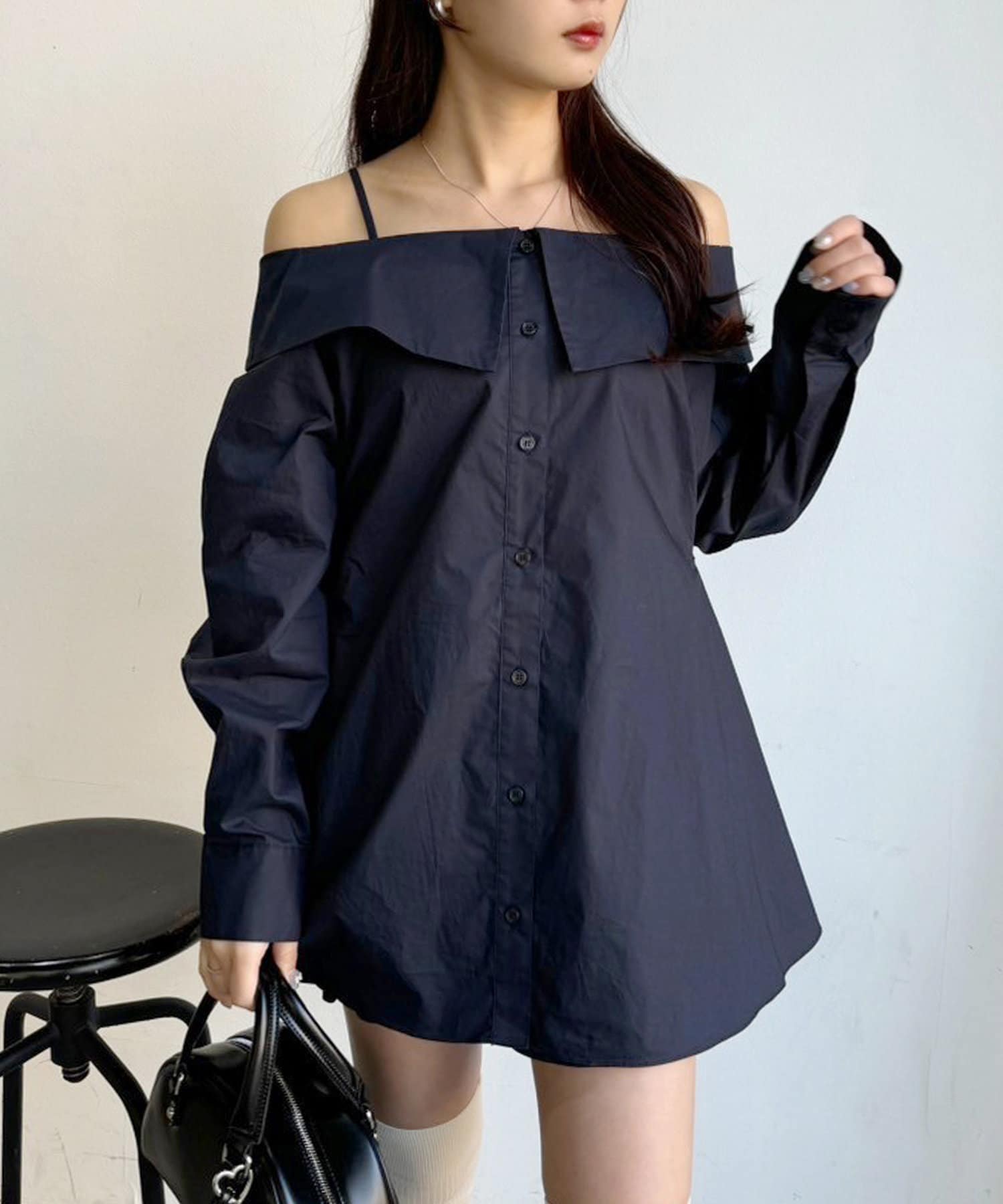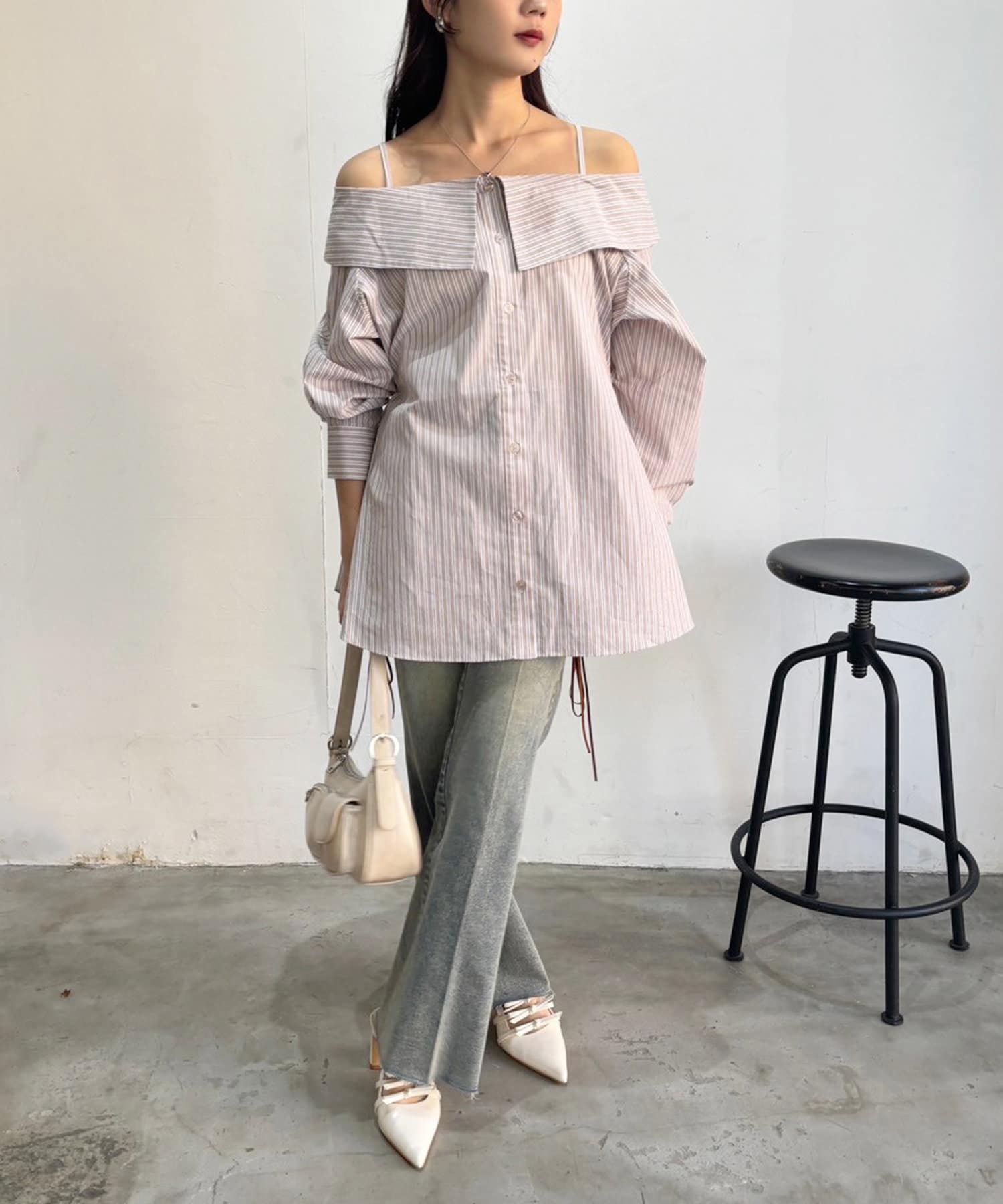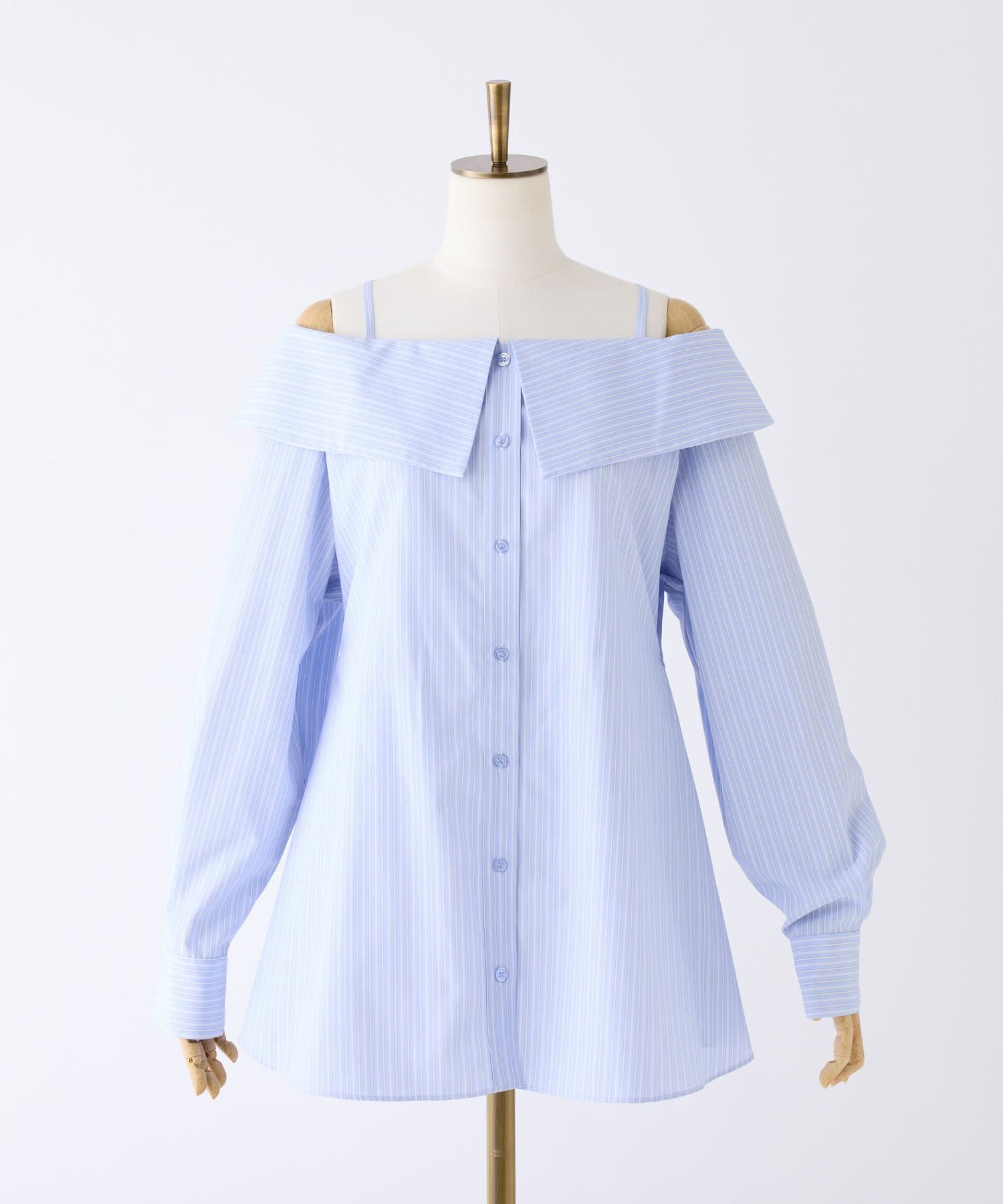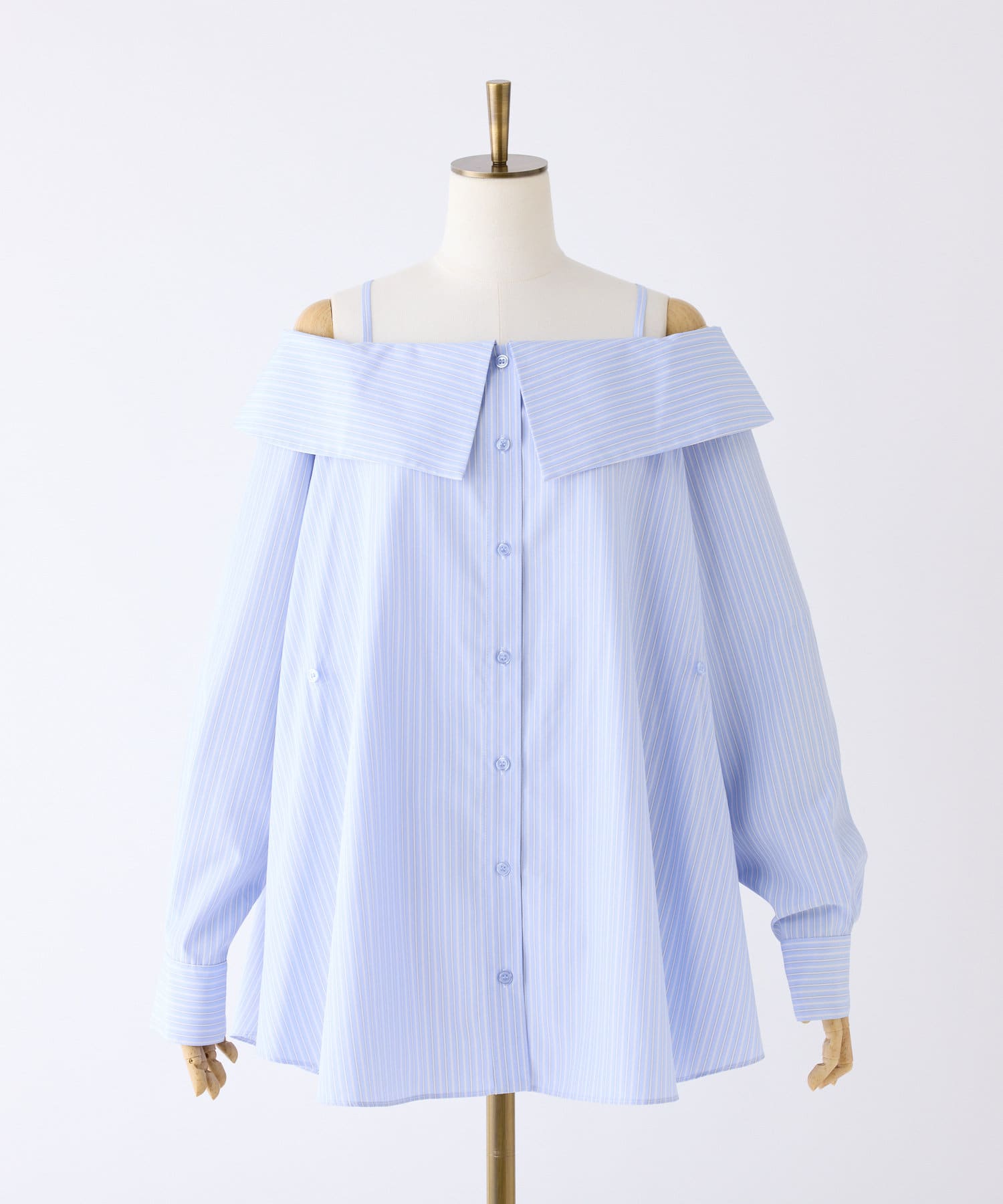 また、首に付いているボタンを留めると、オフショルの開き具合を調節できます◎