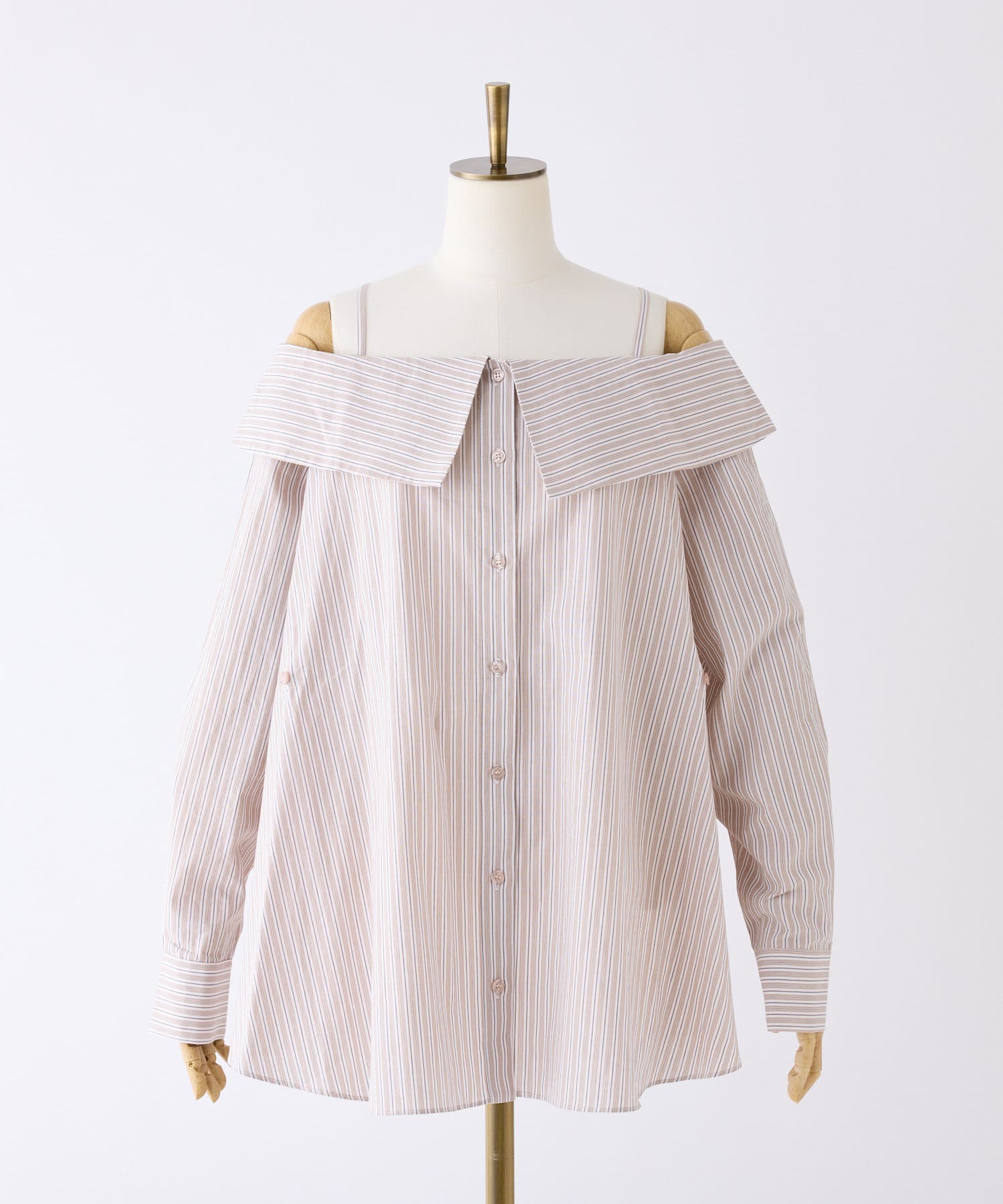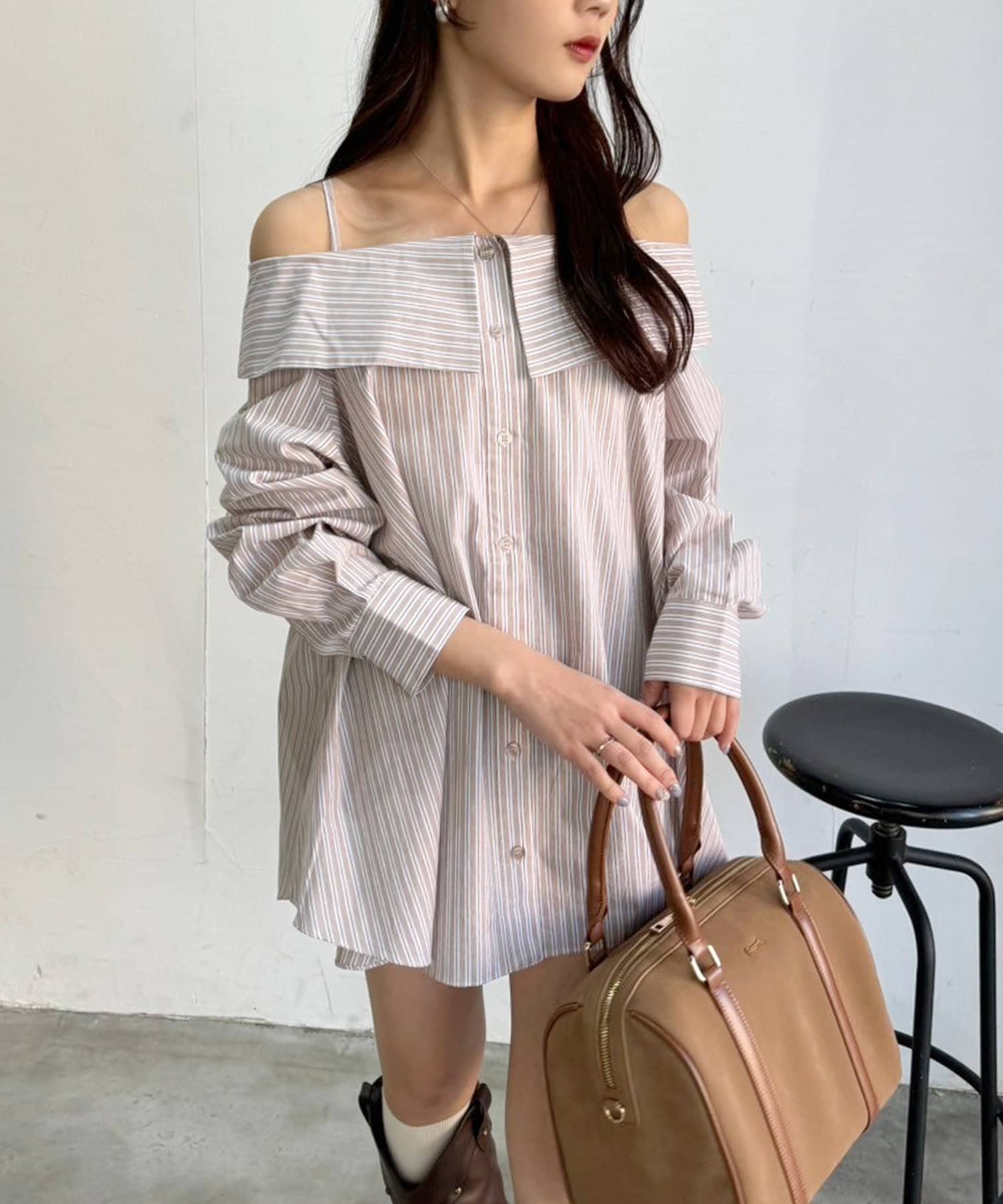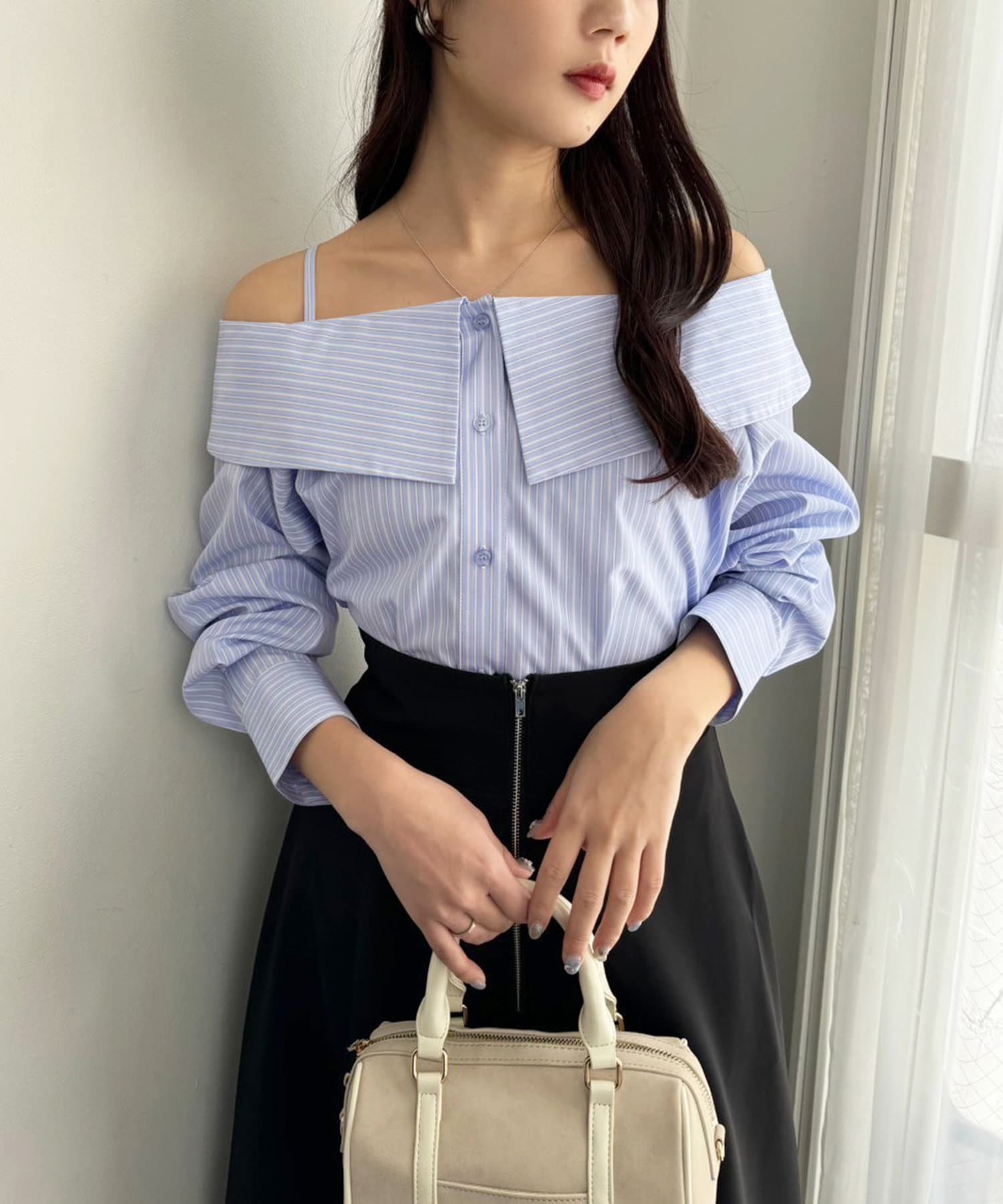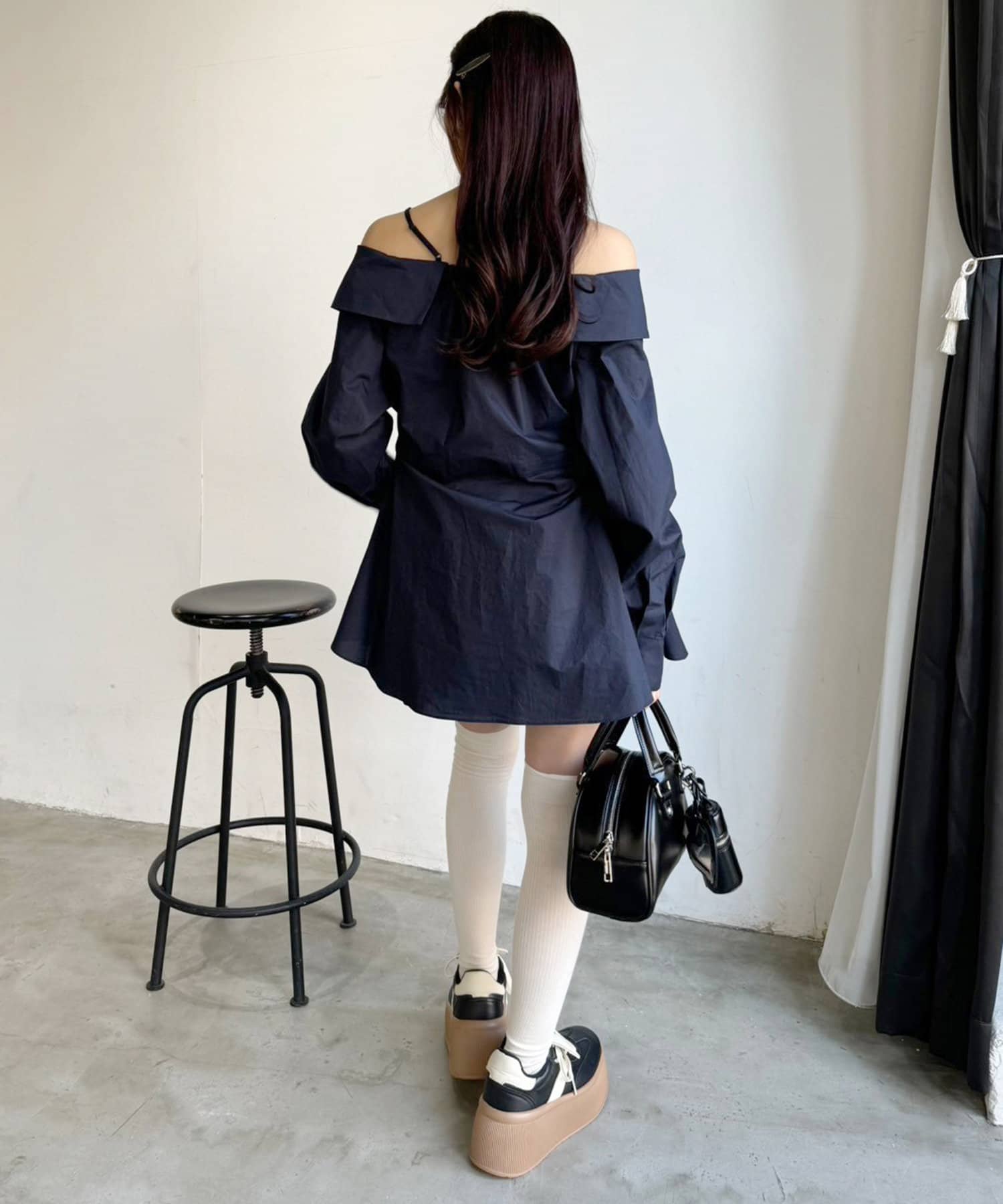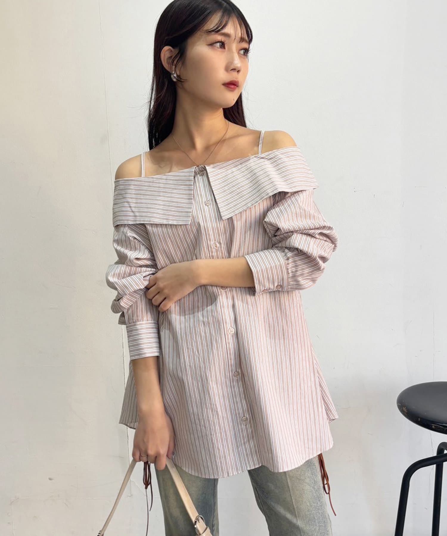 また、首に付いているボタンを留めると、オフショルの開き具合を調節できます◎