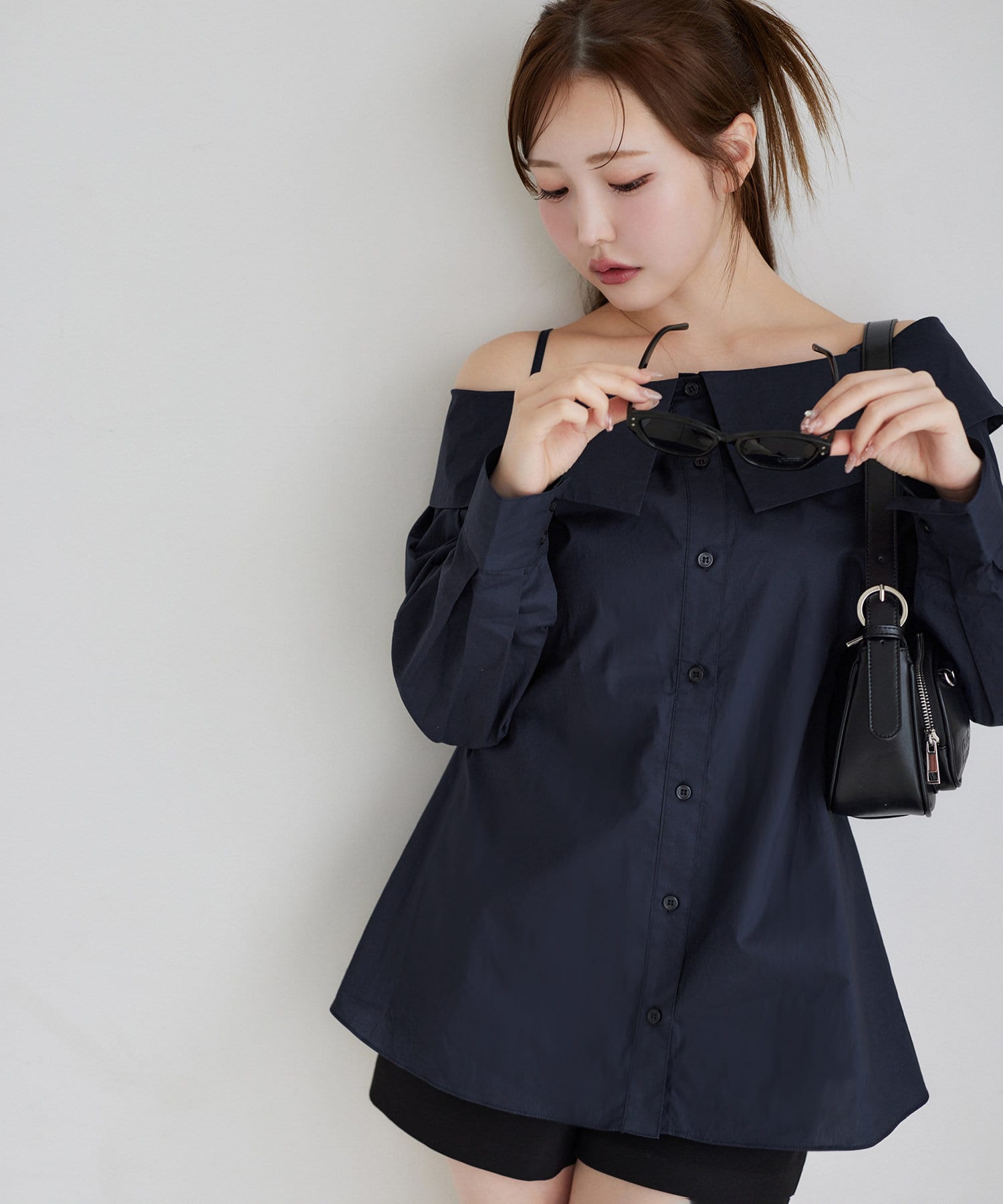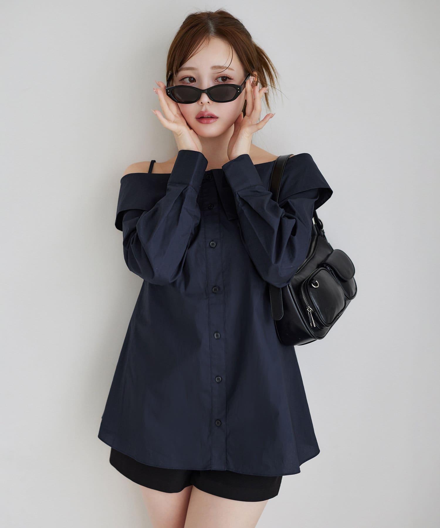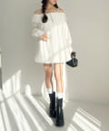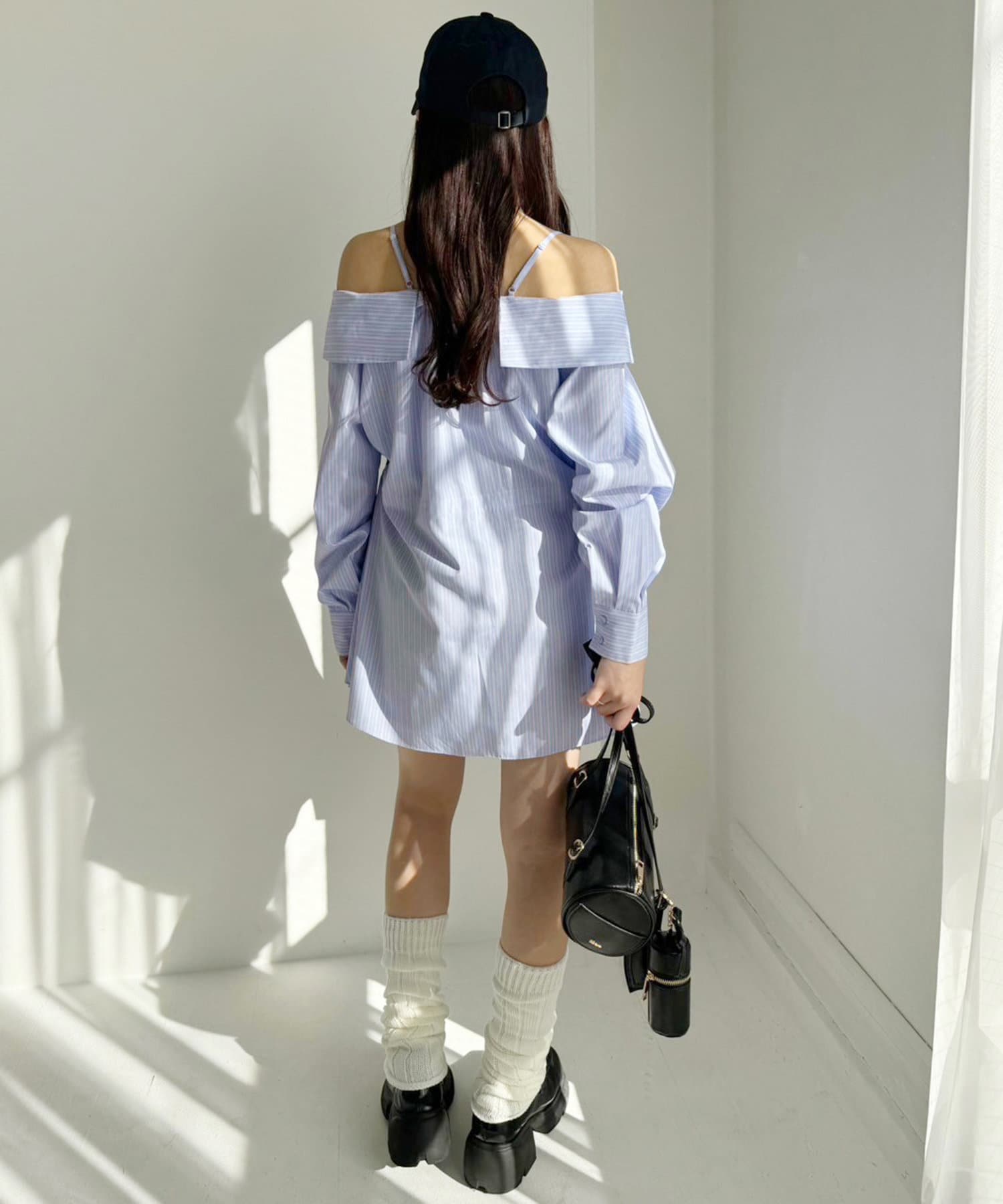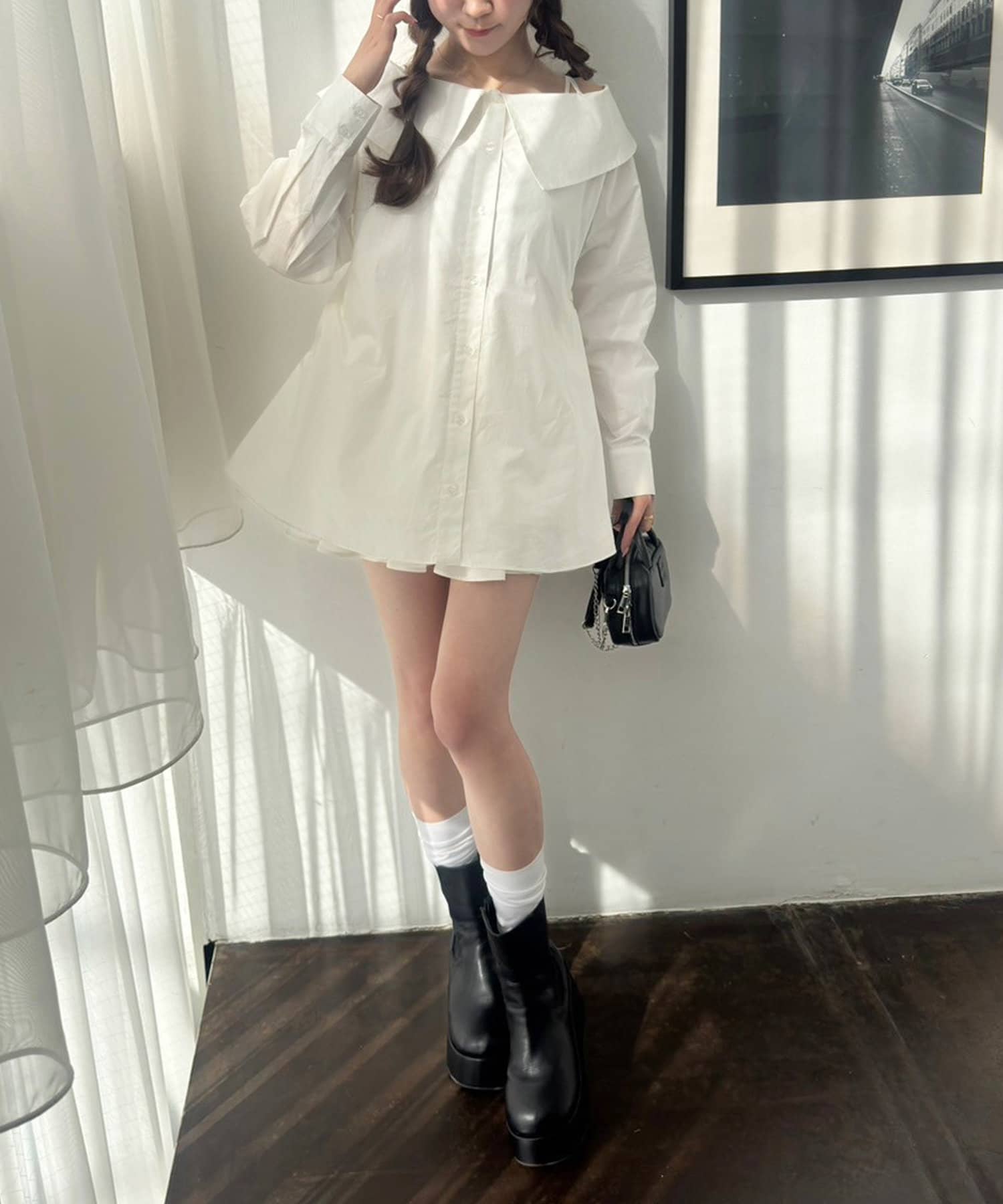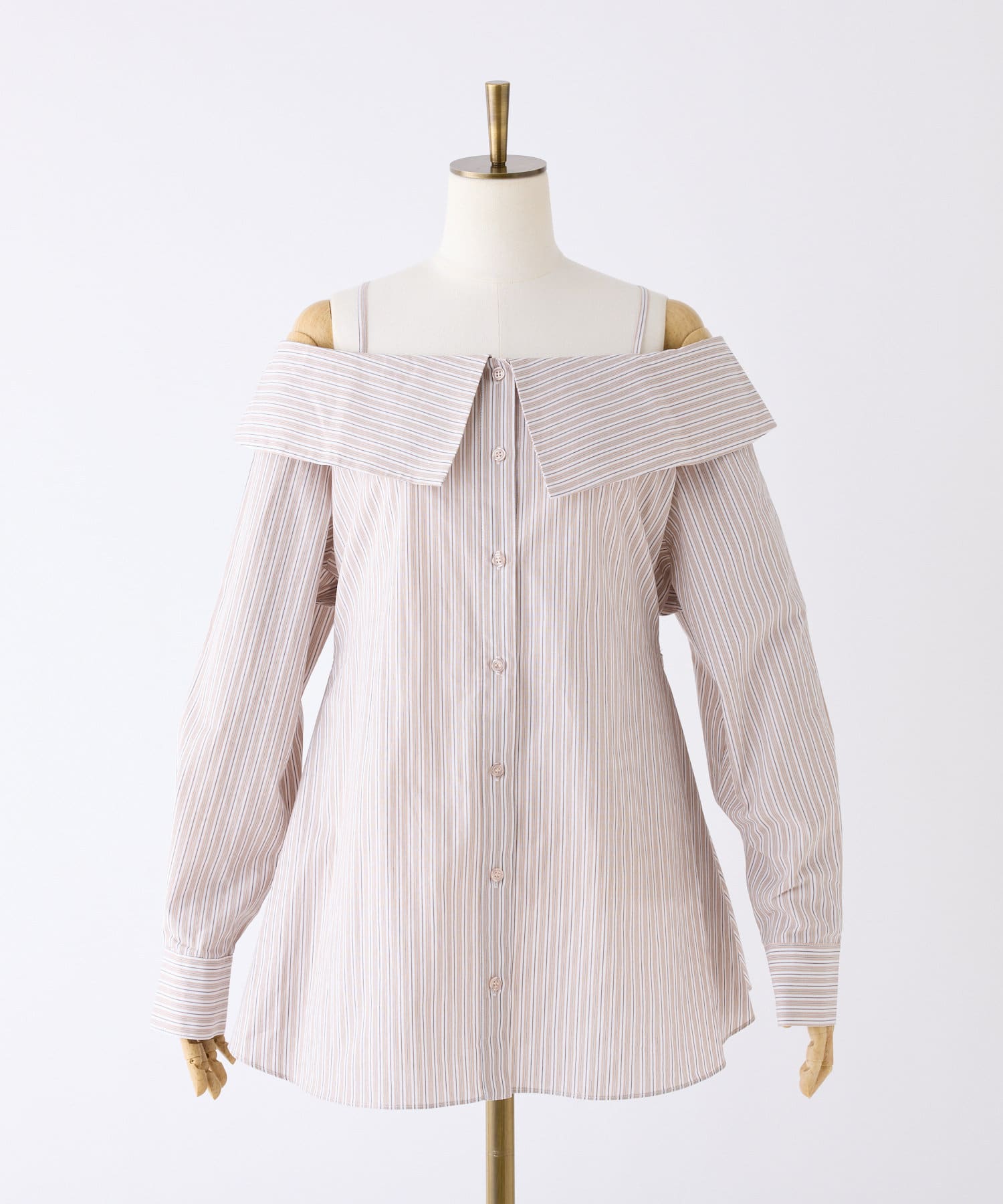また、首に付いているボタンを留めると、オフショルの開き具合を調節できます◎