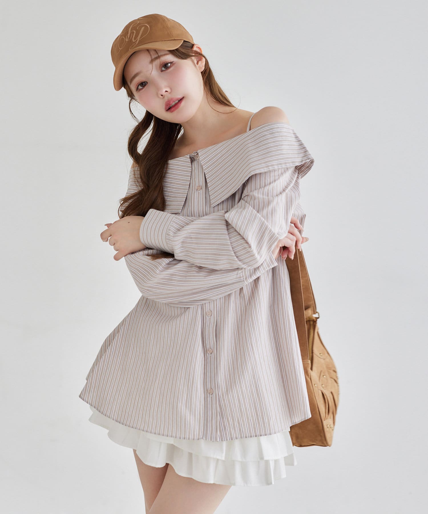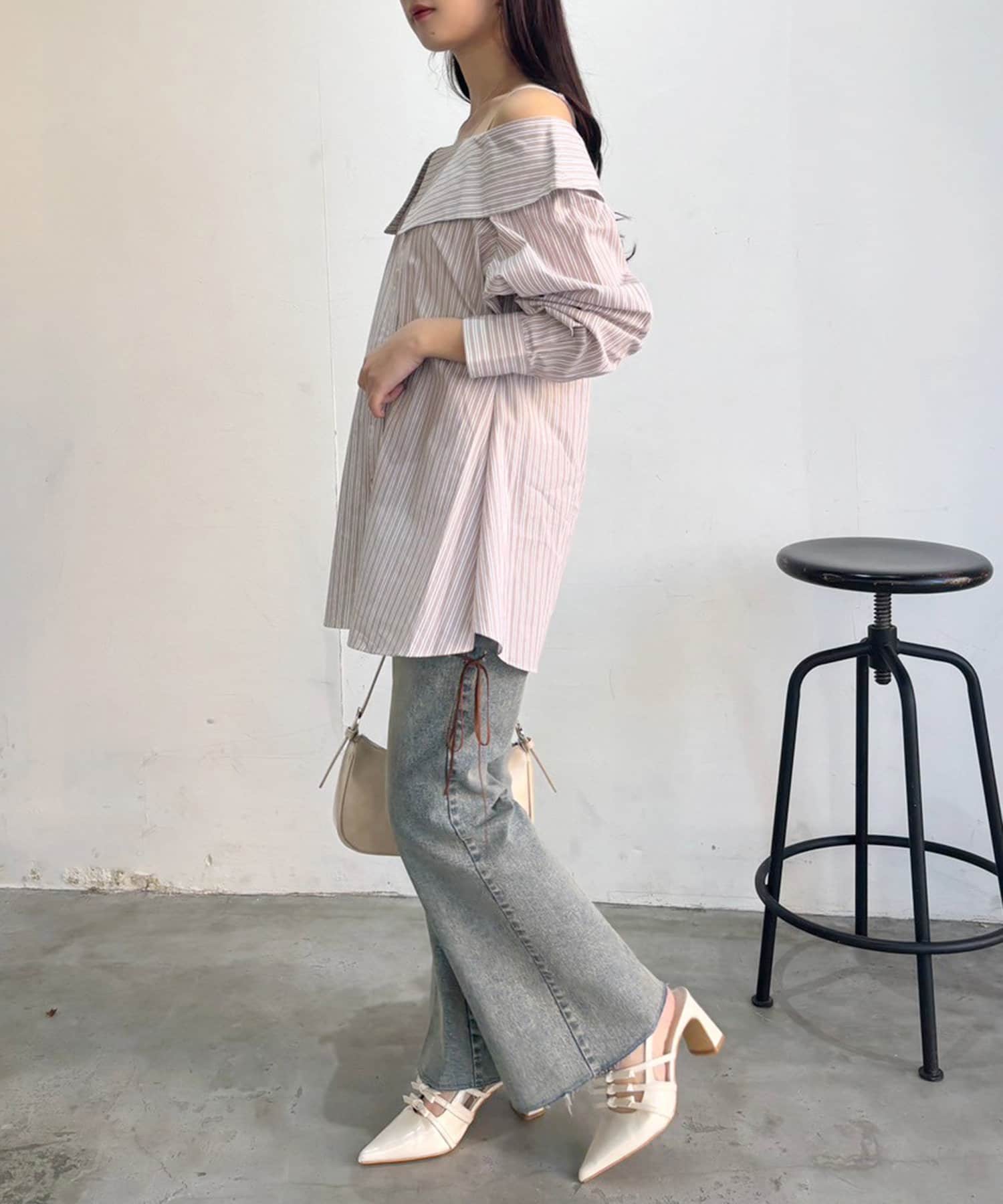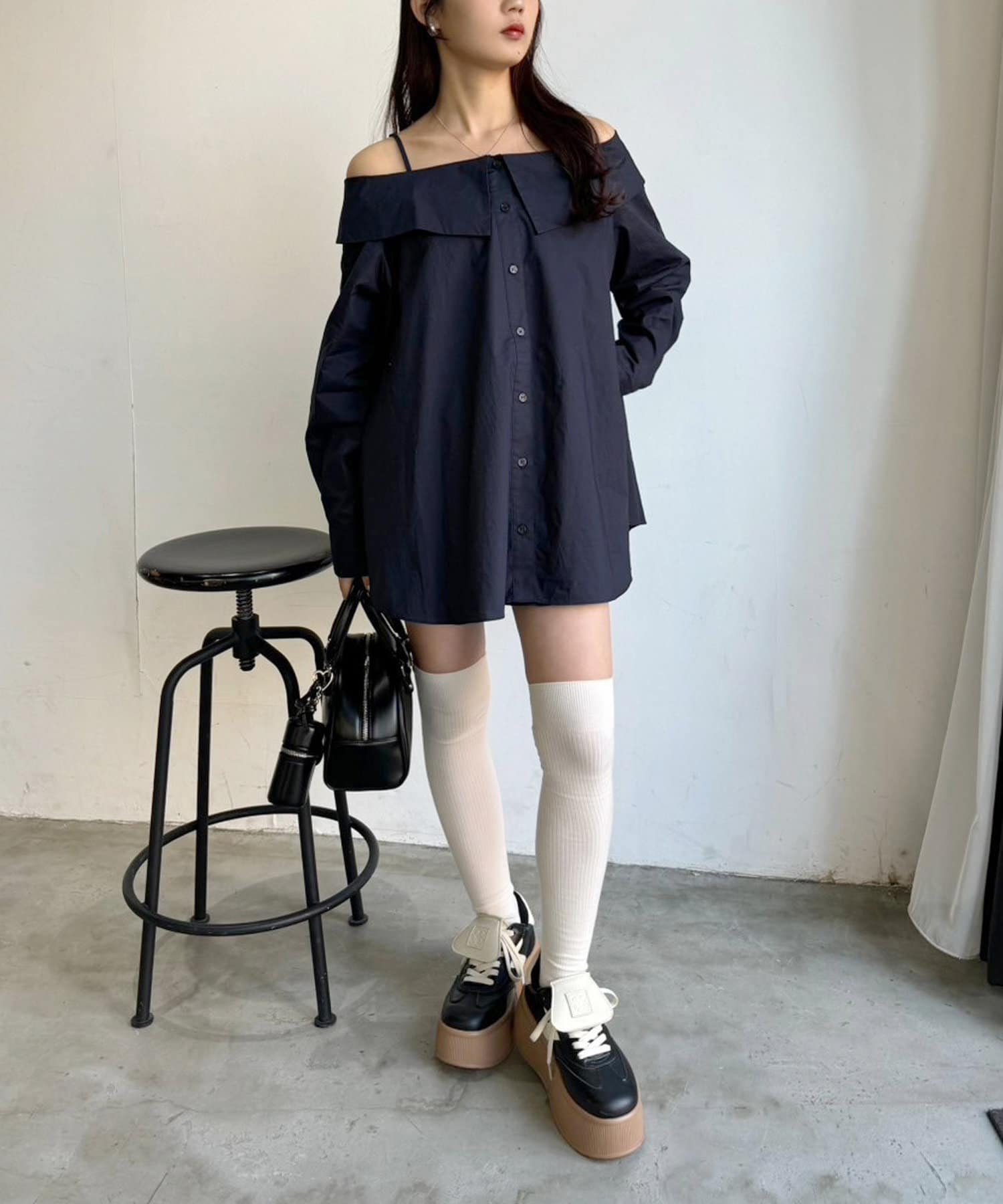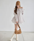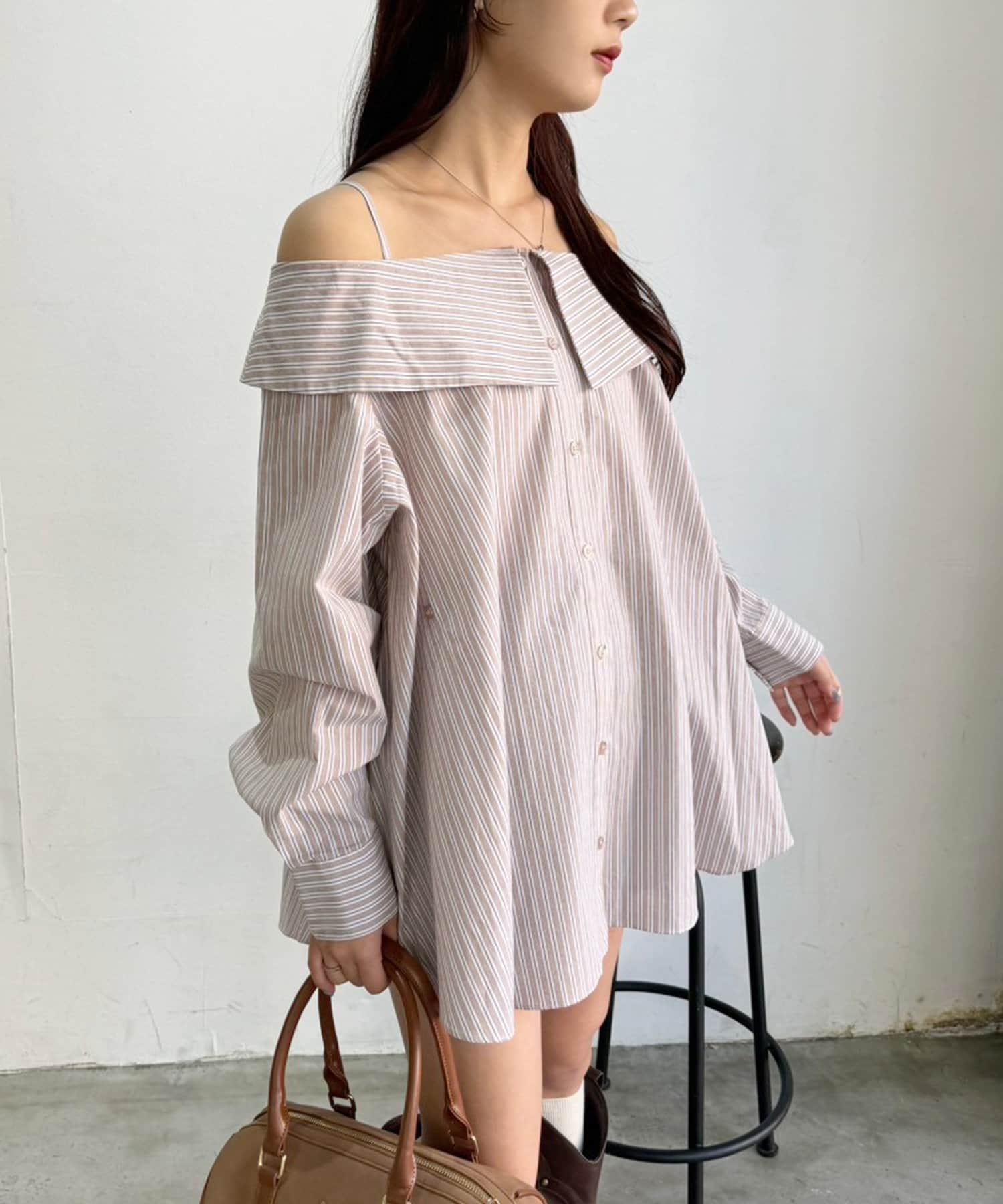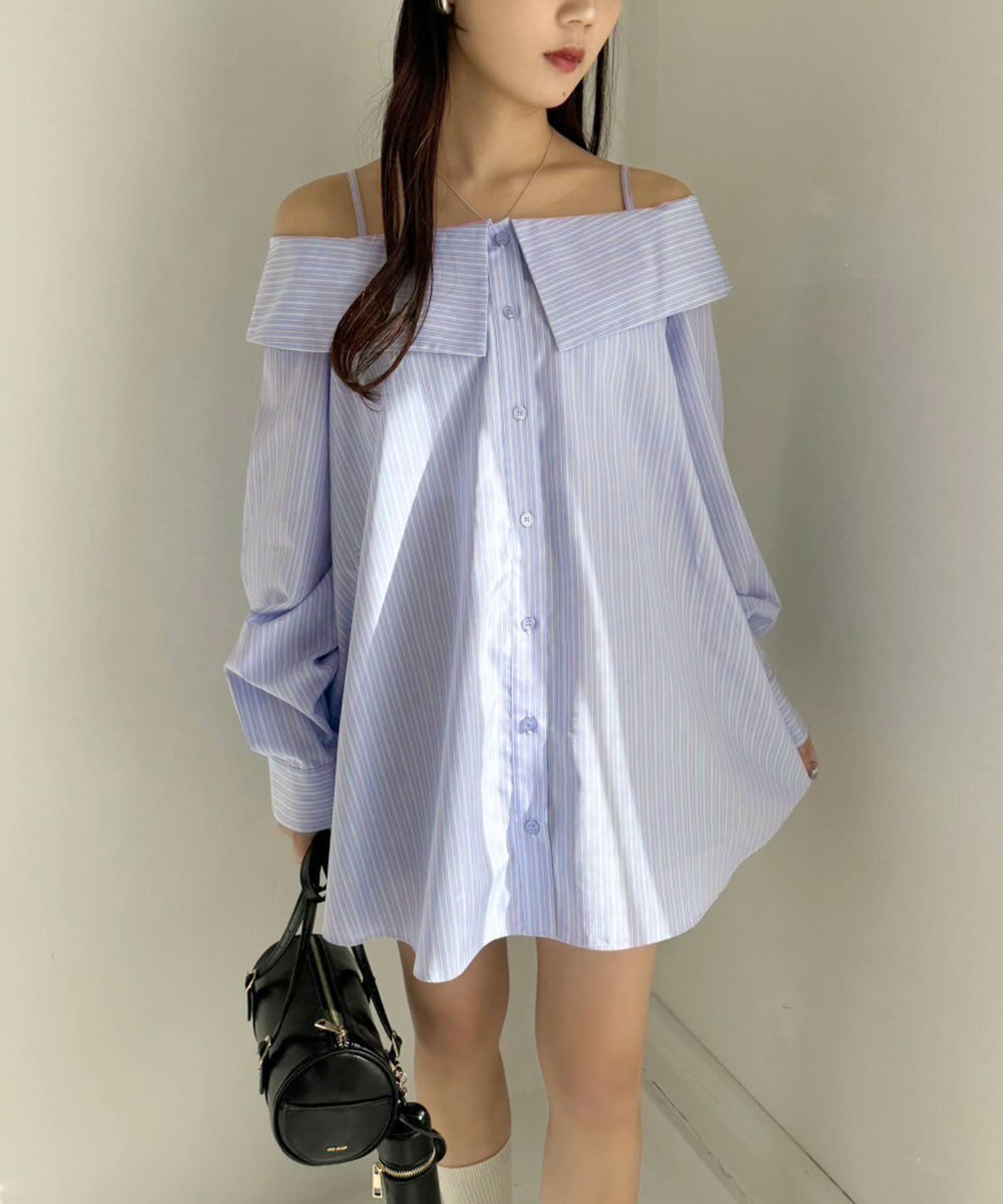 また、首に付いているボタンを留めると、オフショルの開き具合を調節できます◎