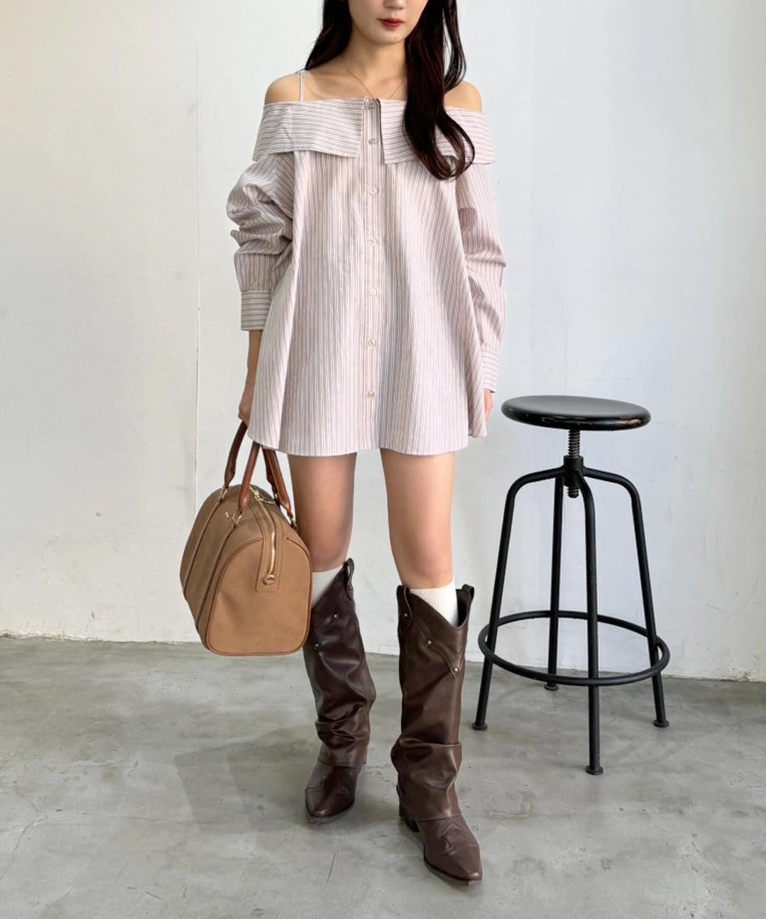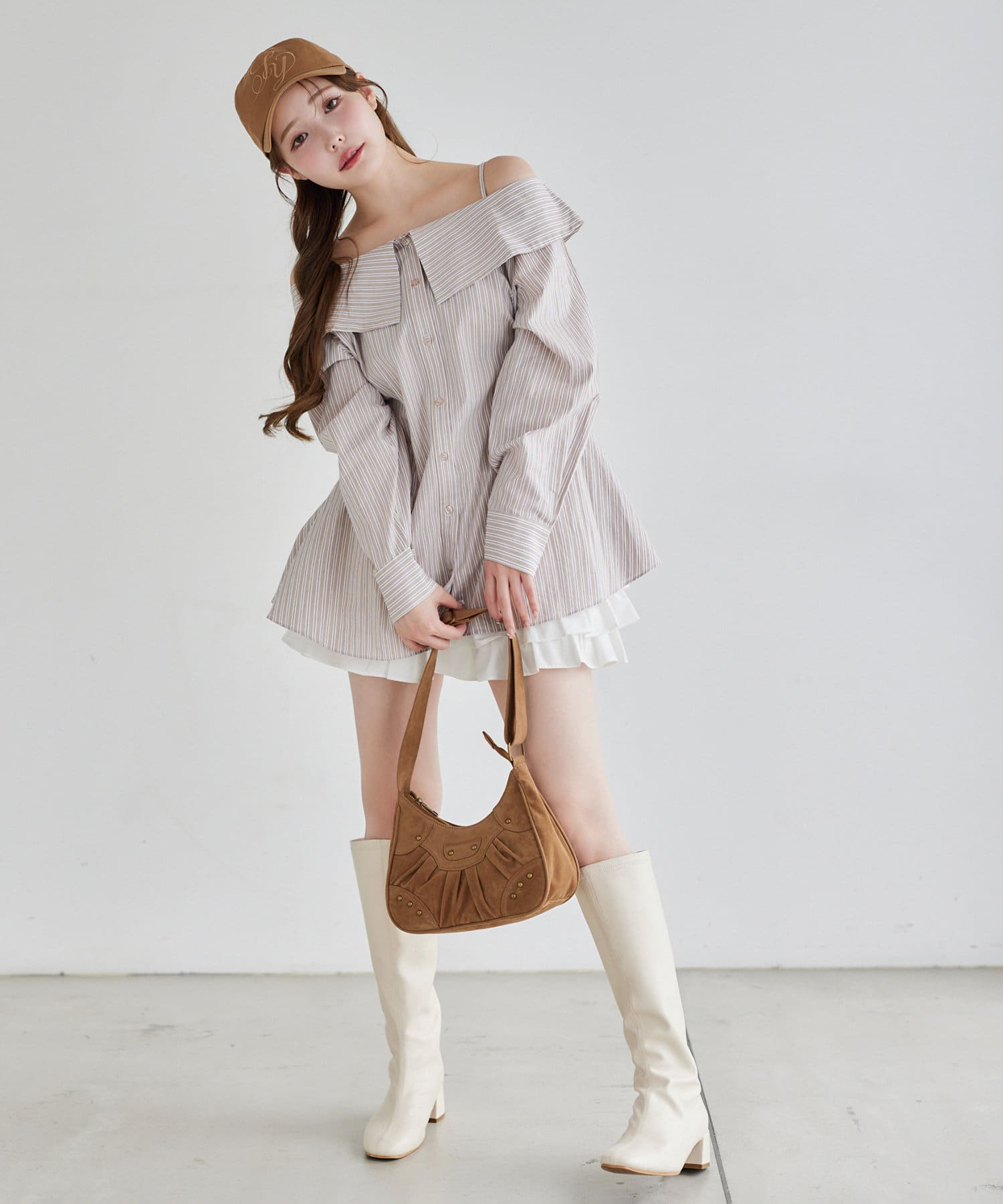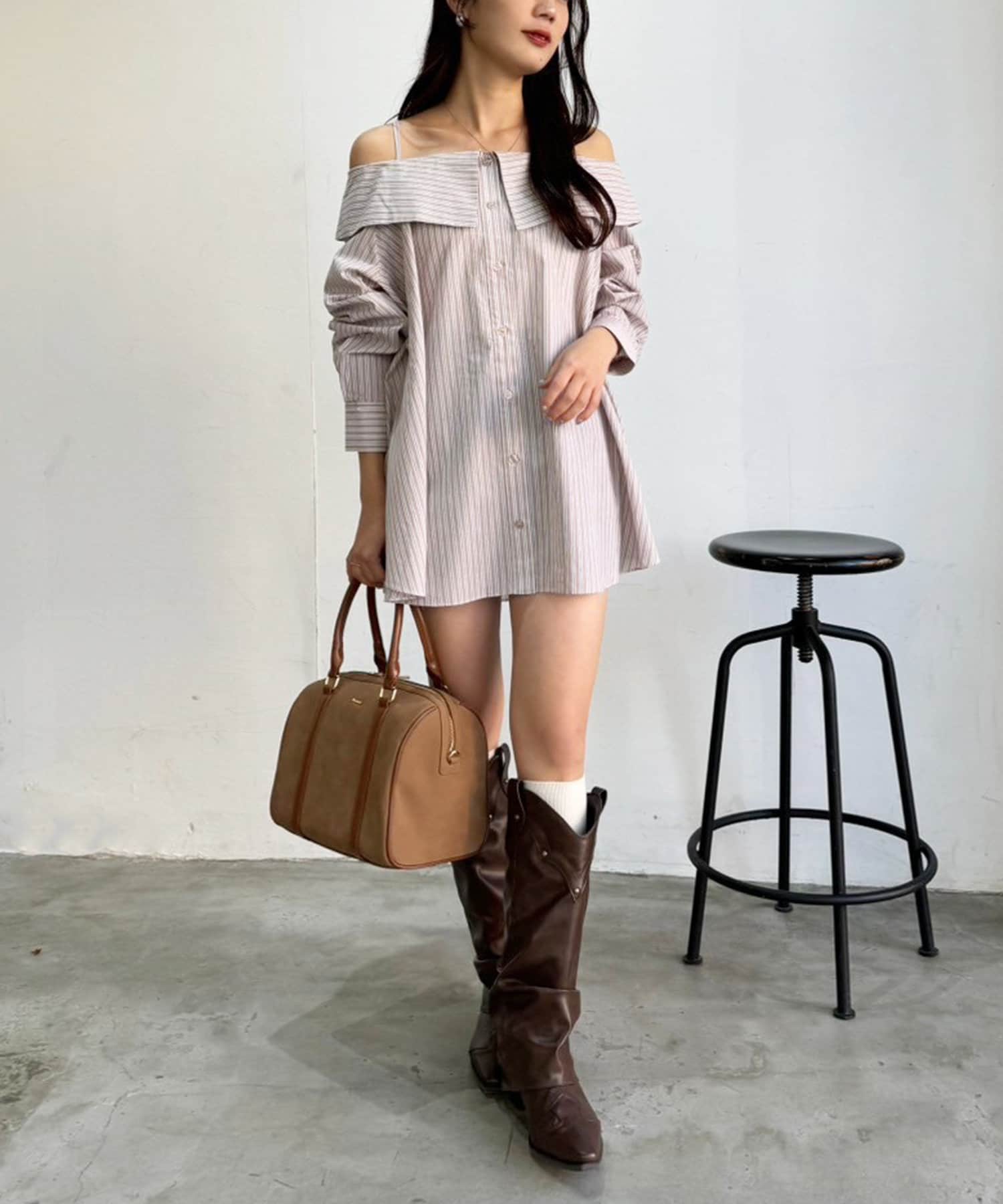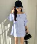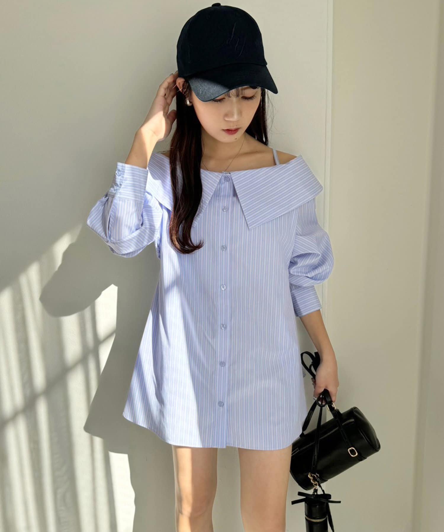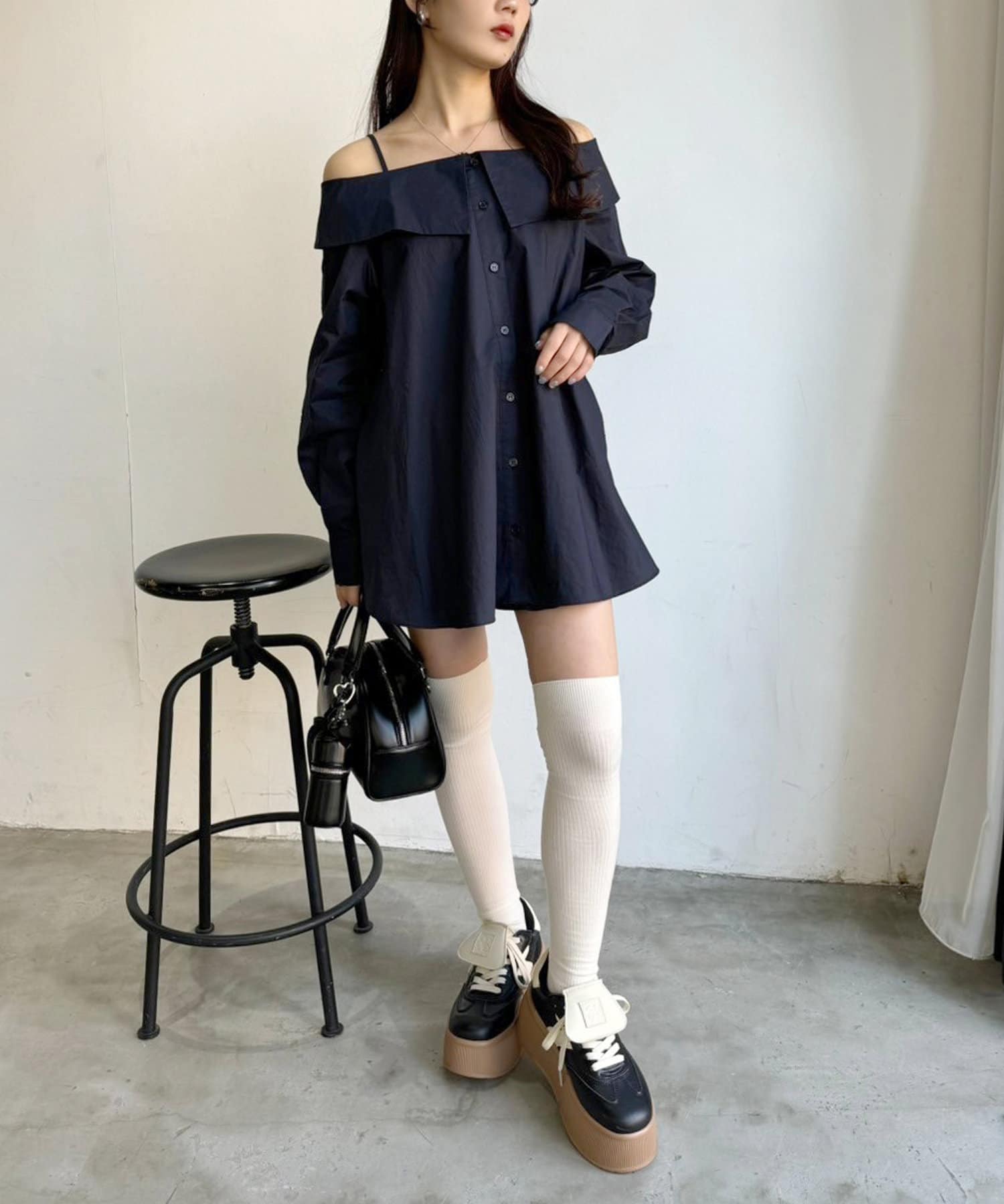 また、首に付いているボタンを留めると、オフショルの開き具合を調節できます◎
