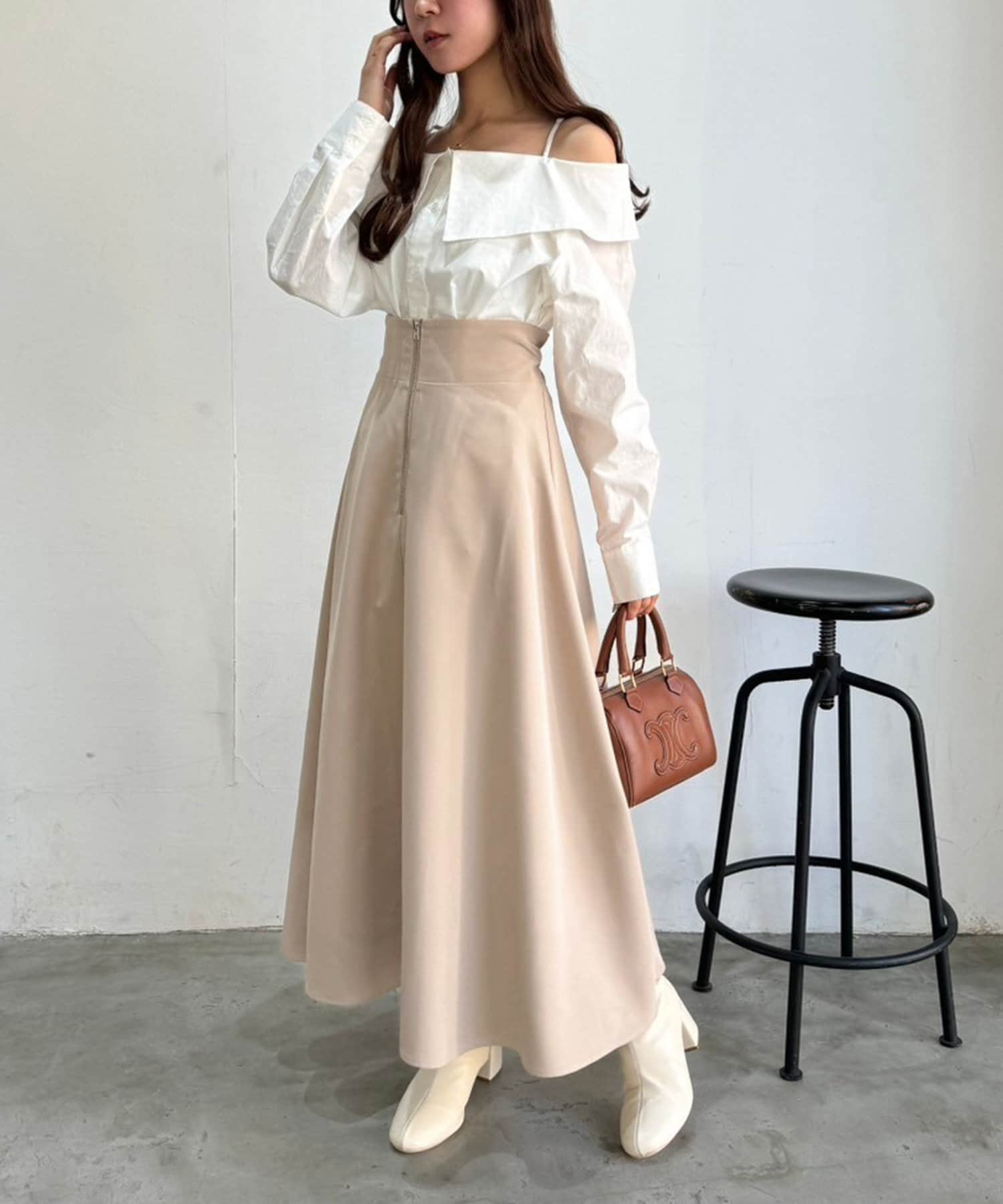 インもしやすいデザインなので、ロングスカートと合わせたキレイめコーデもオススメです。
