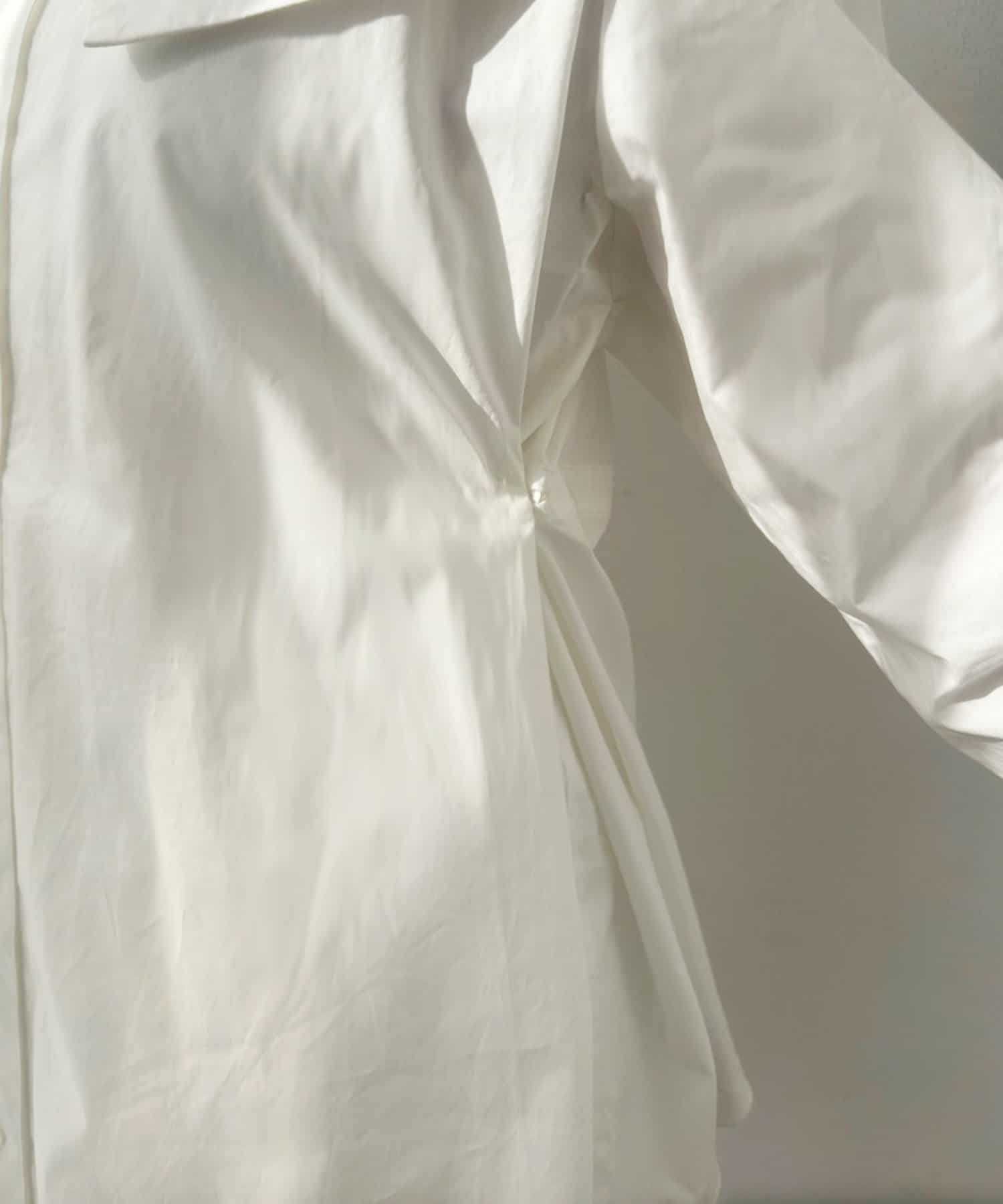 サイドにボタンが付いていて、留めるとスッキリしたシルエットに。