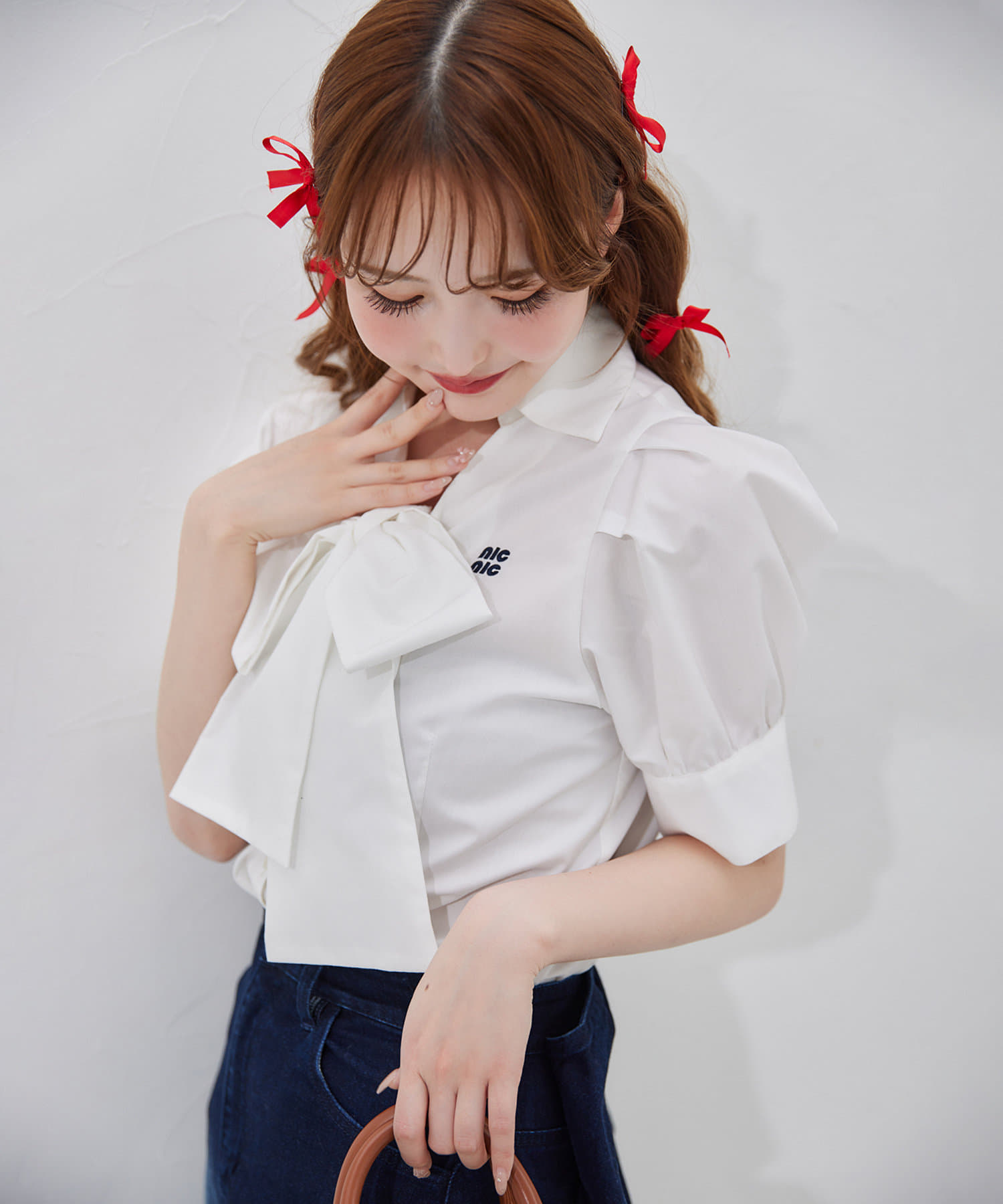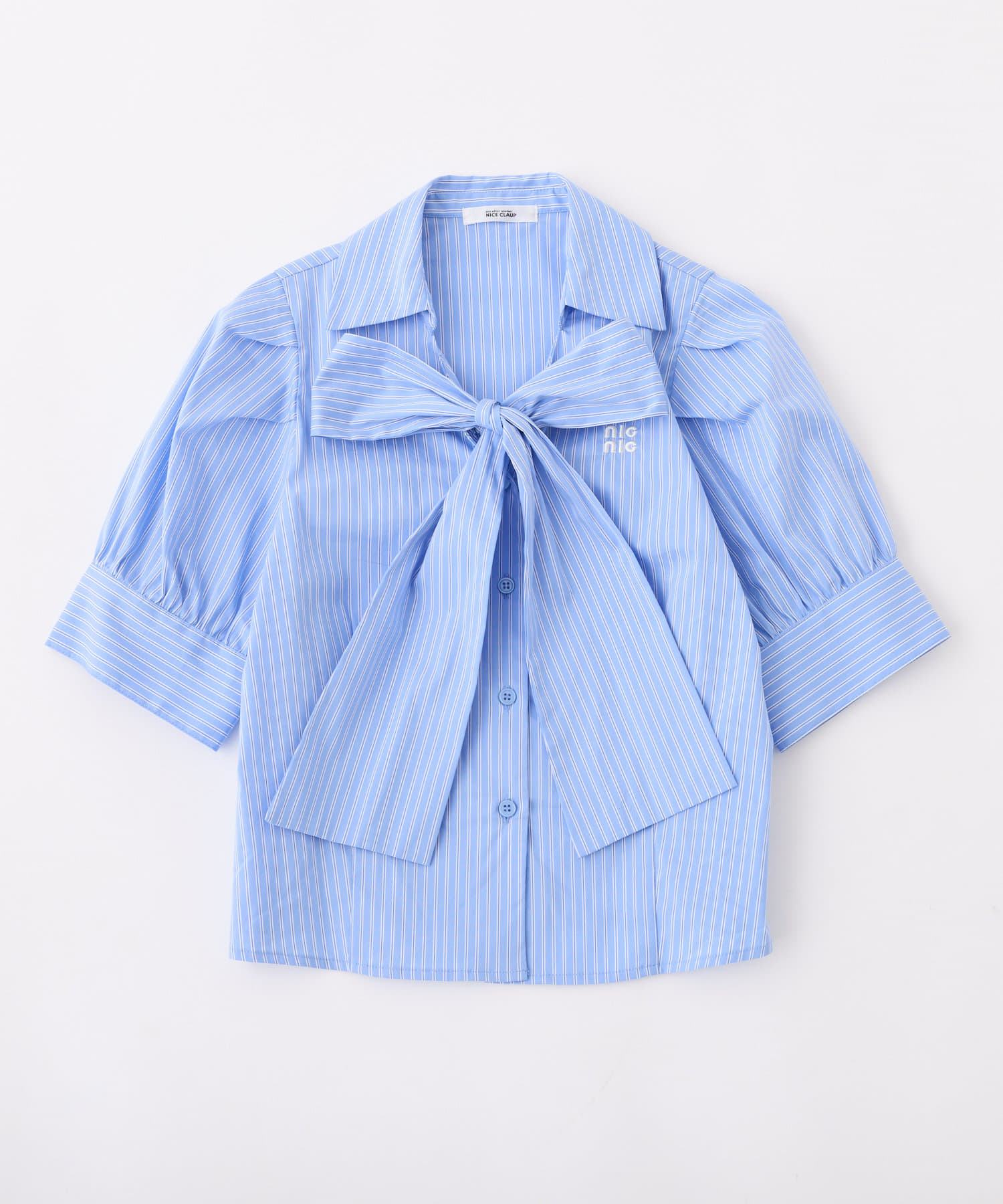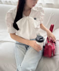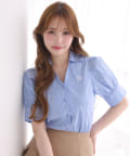 胸元の刺しゅうと大きなリボンがポイントのブラウス