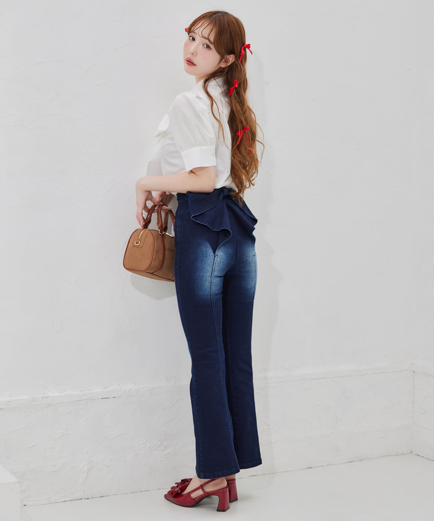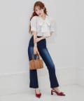 シンプルにデニムで合わせたフレンチガーリーな着こなしも◎