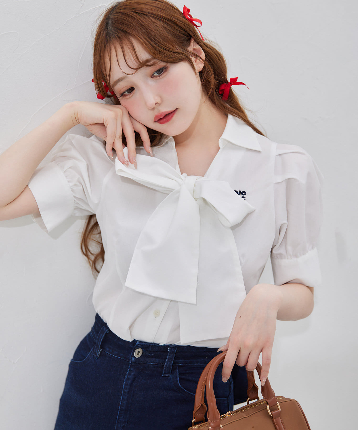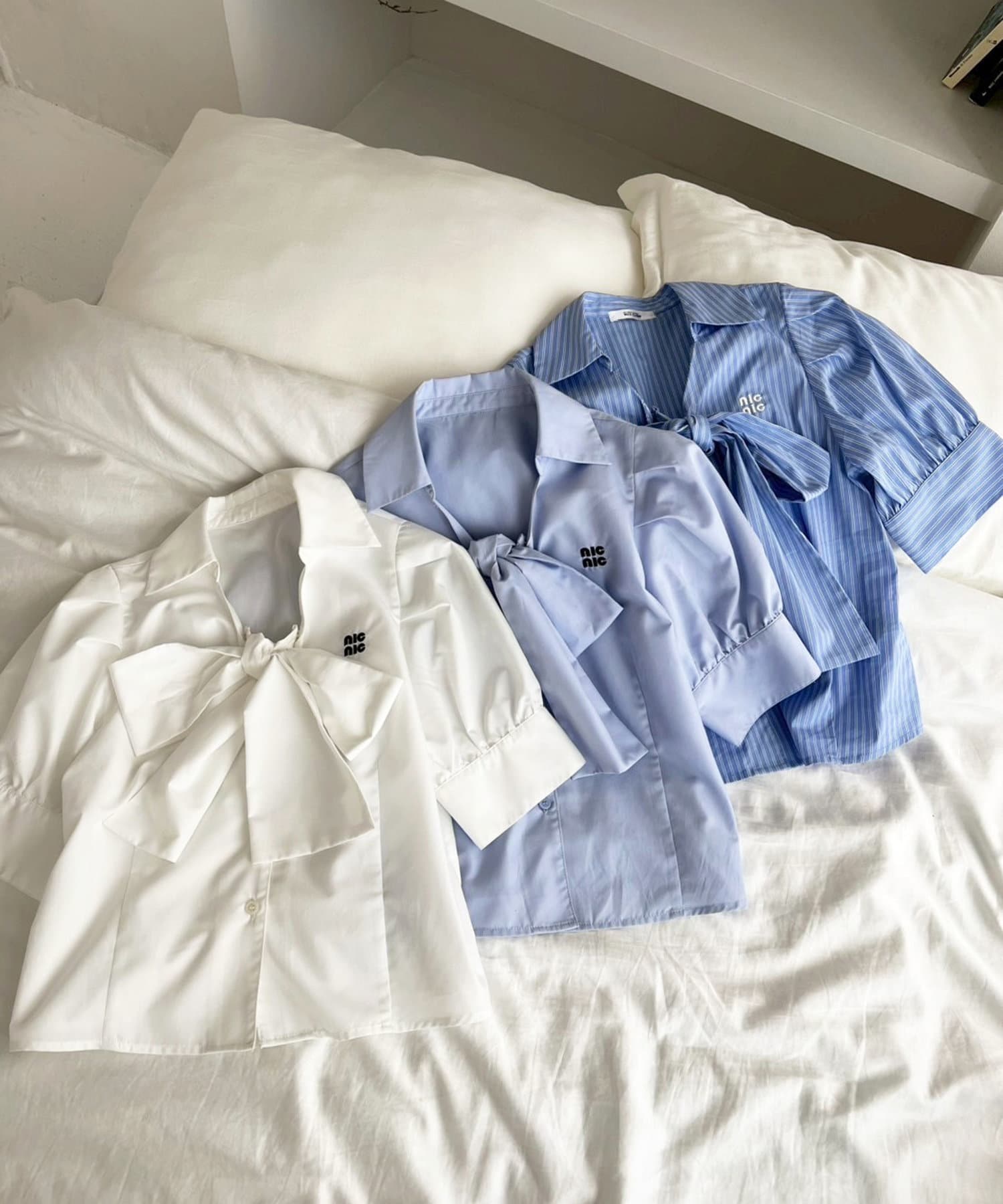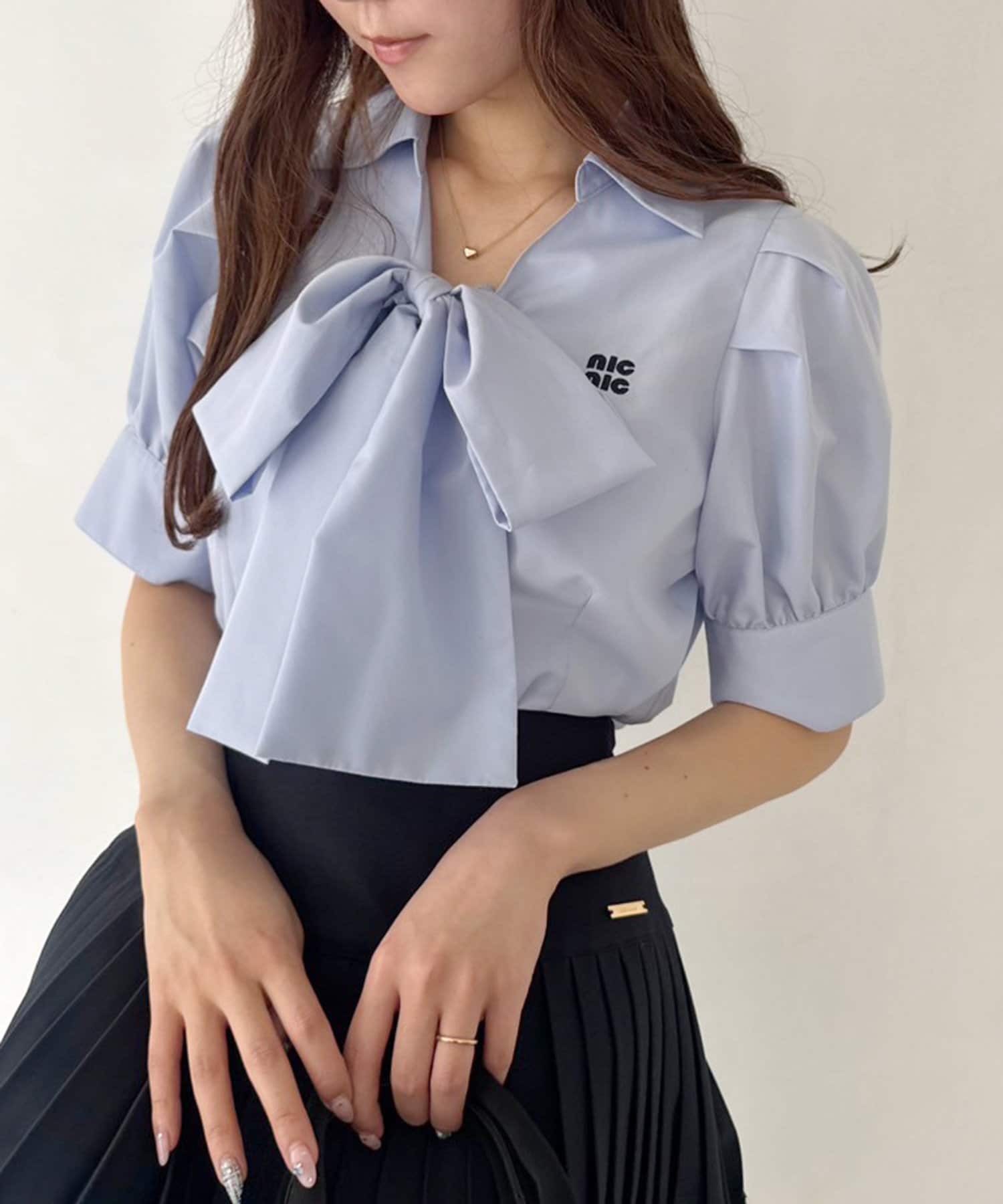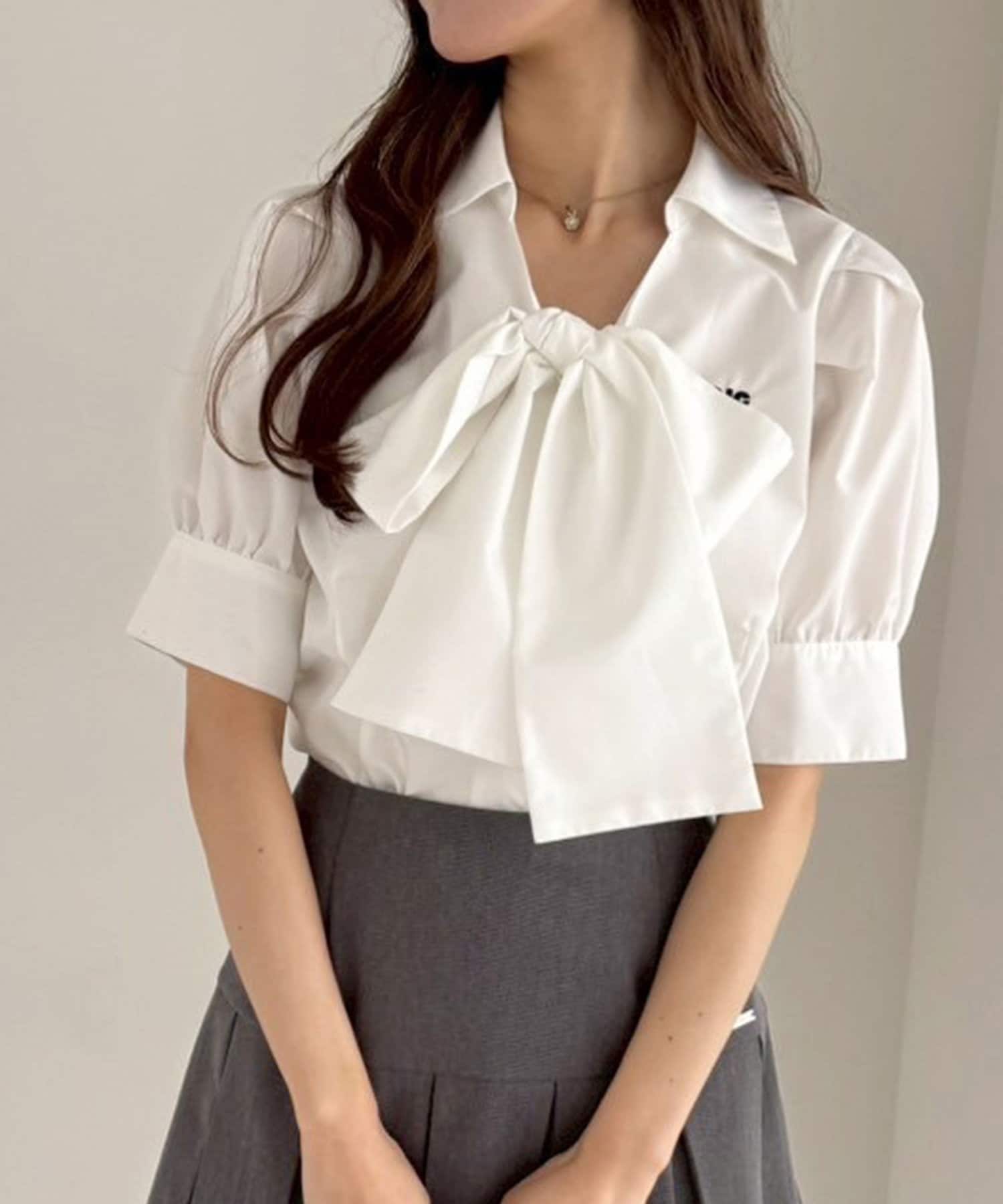 ボウタイリボン半袖シャツ