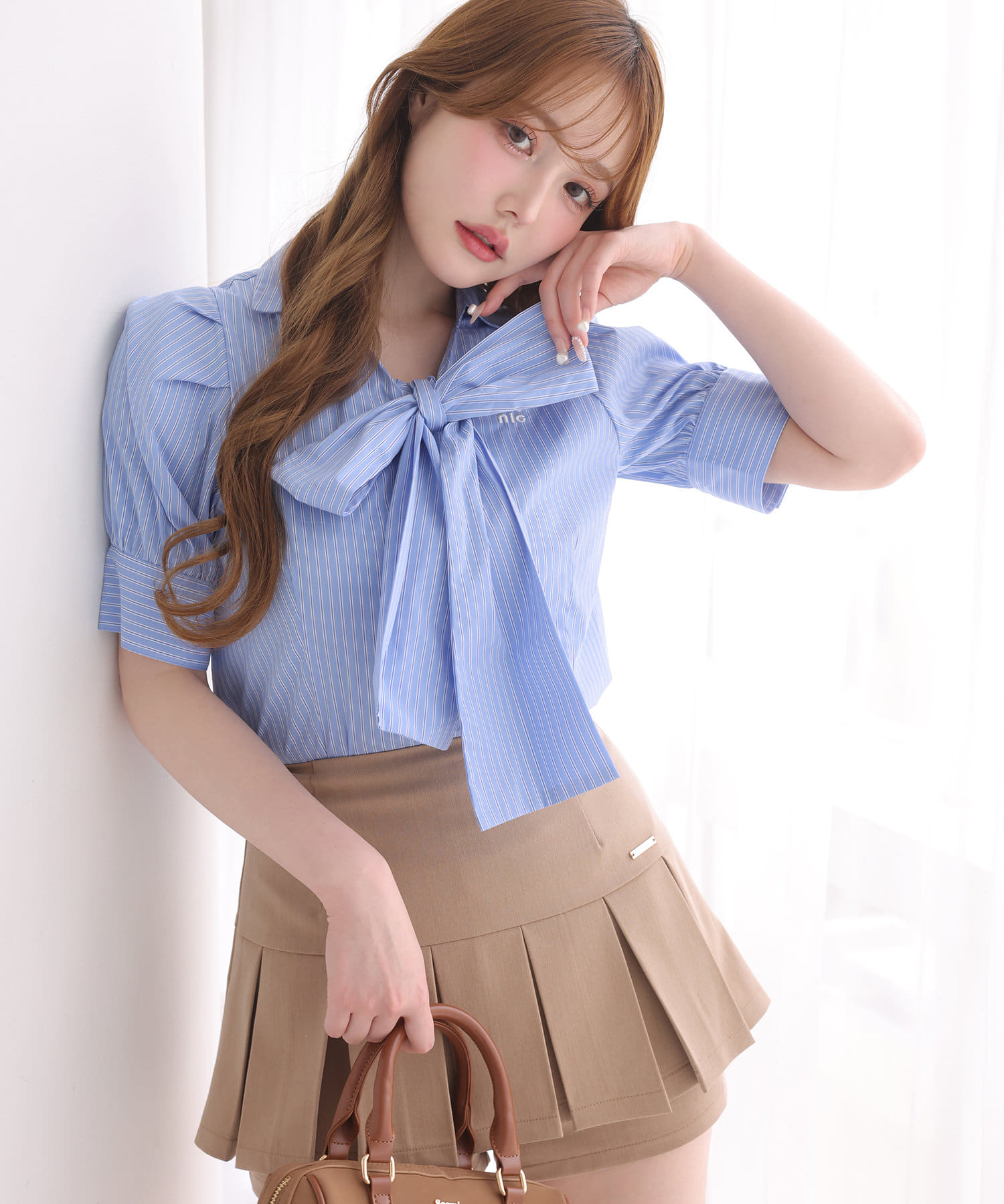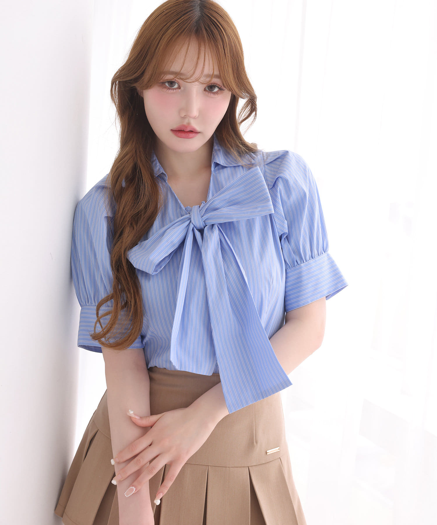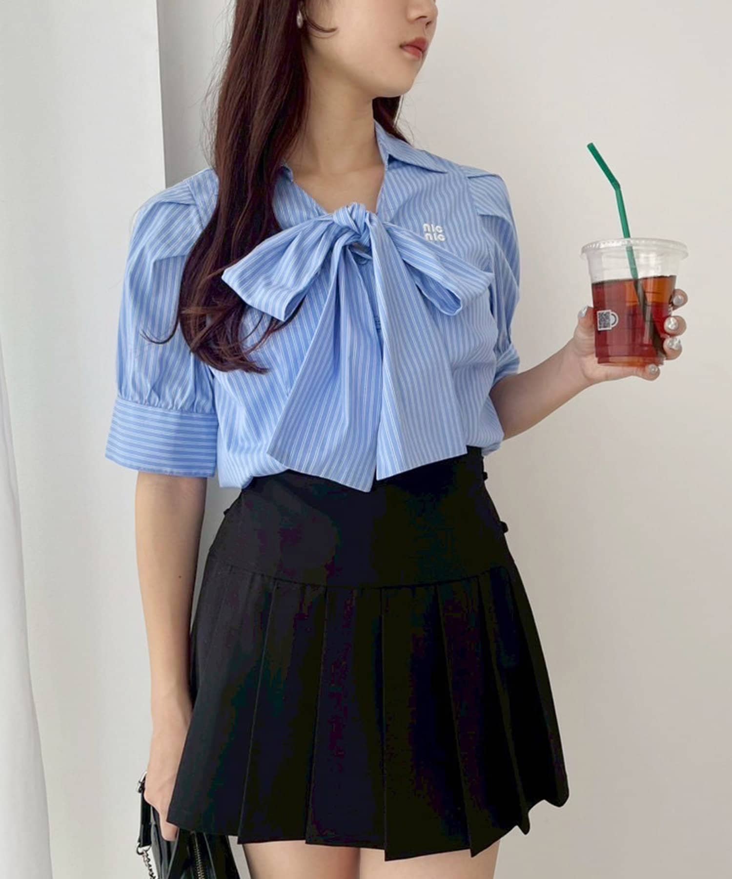 リボンは取り外しが出来るので、着方によって様々な印象も与えられます。