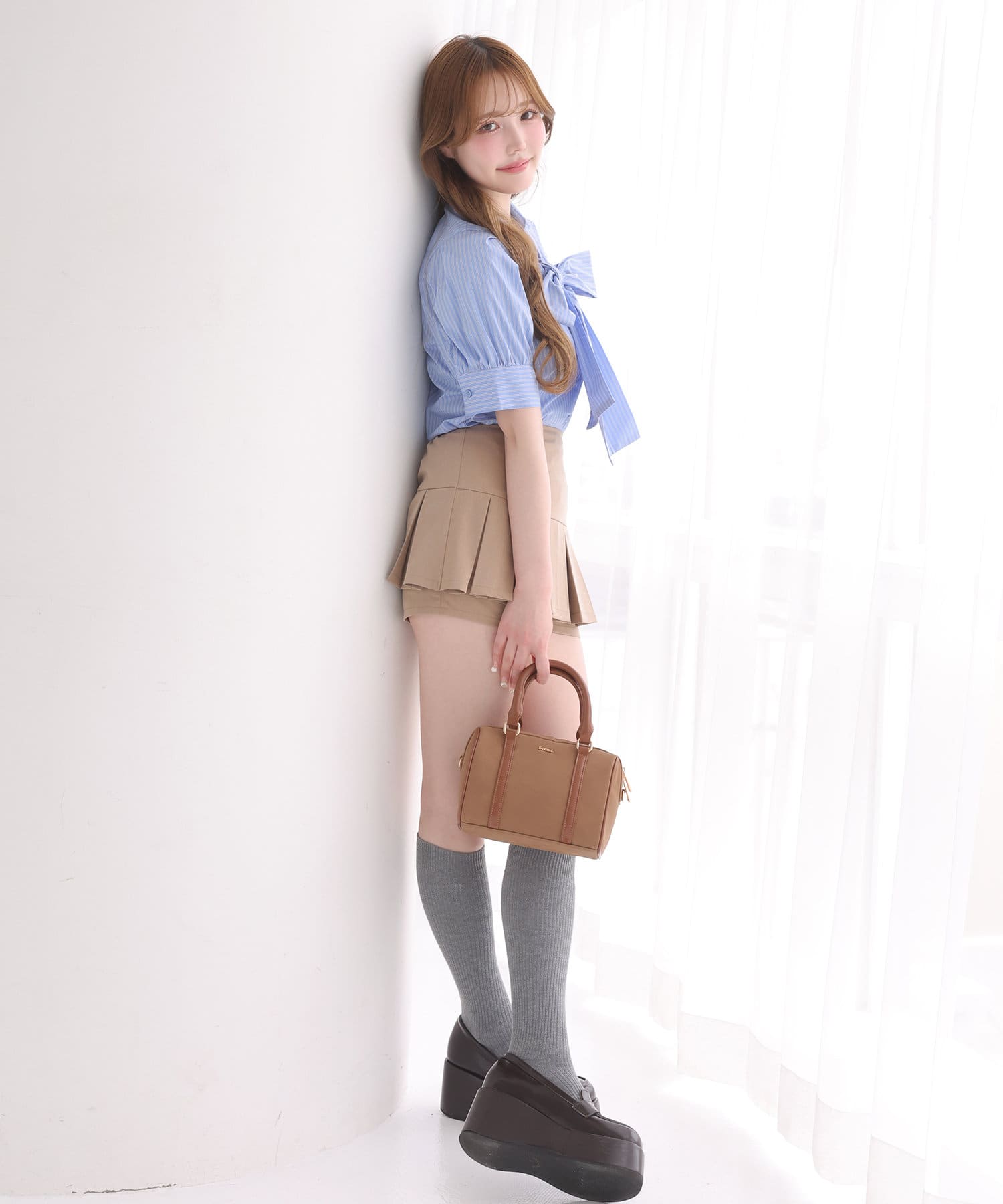 甘め好きな方はミニボトムにハイソックス合わせが今年らしい組み合わせでオススメです。
