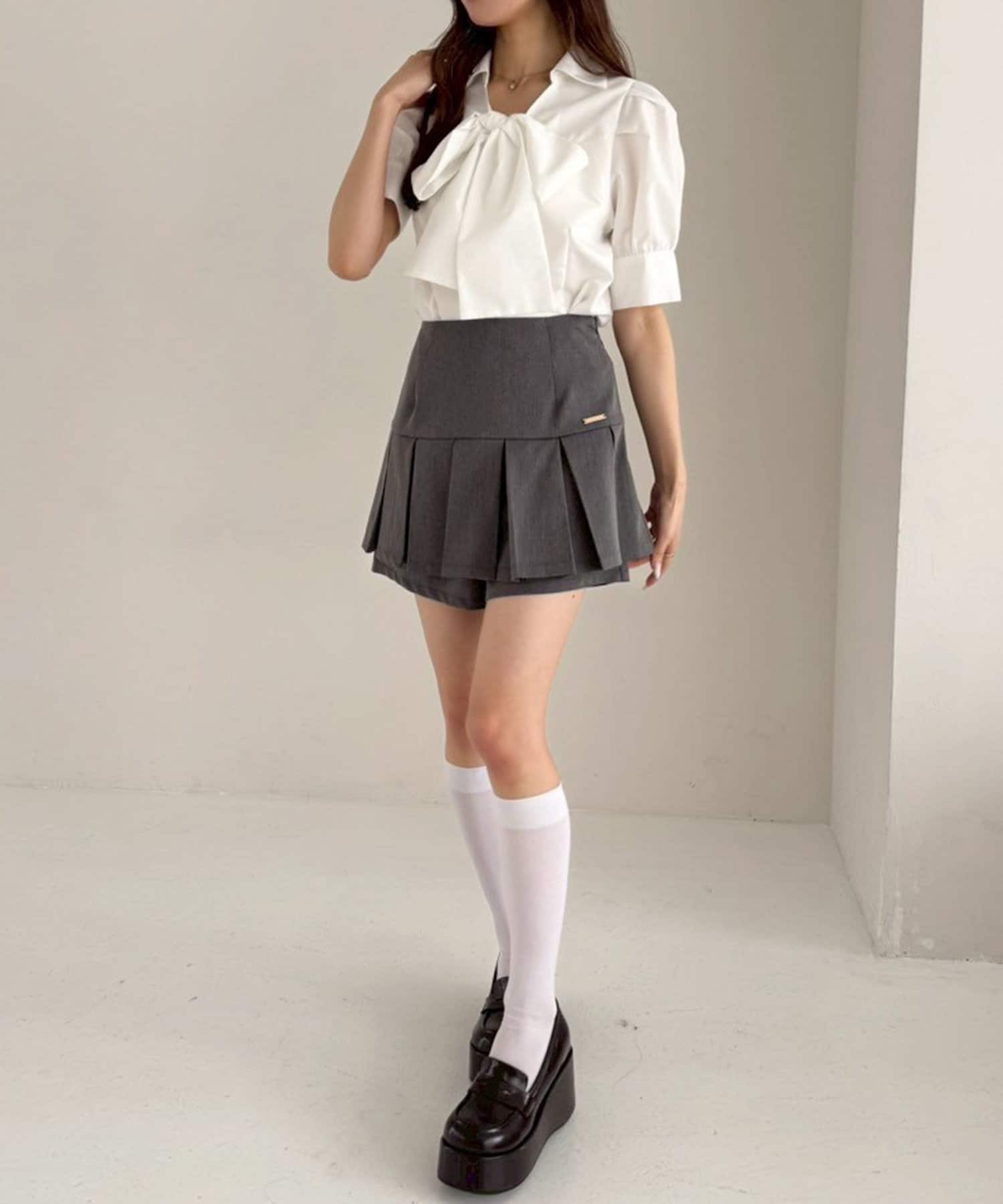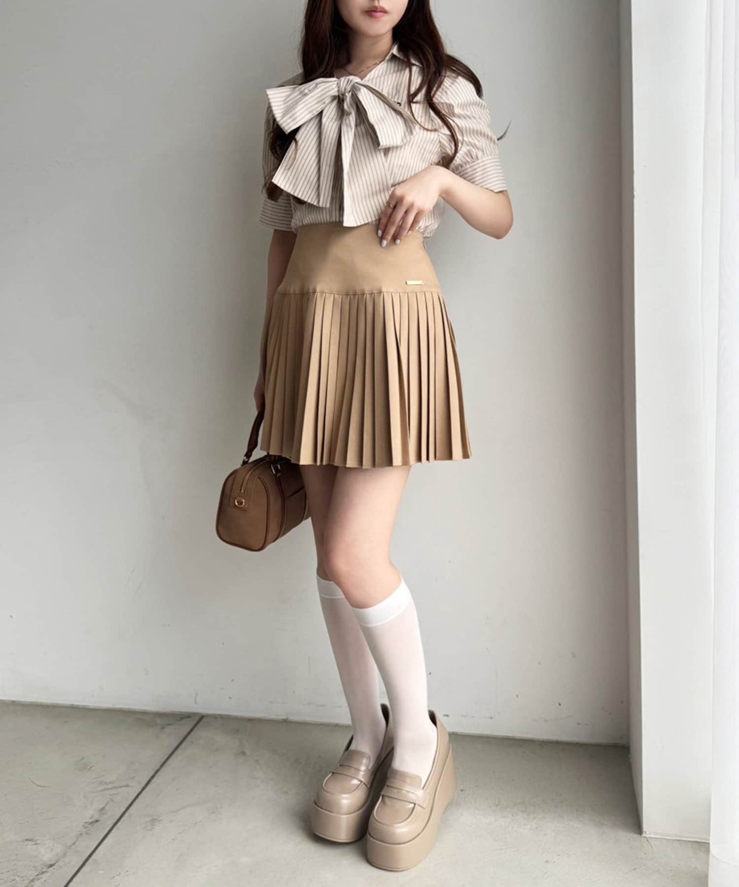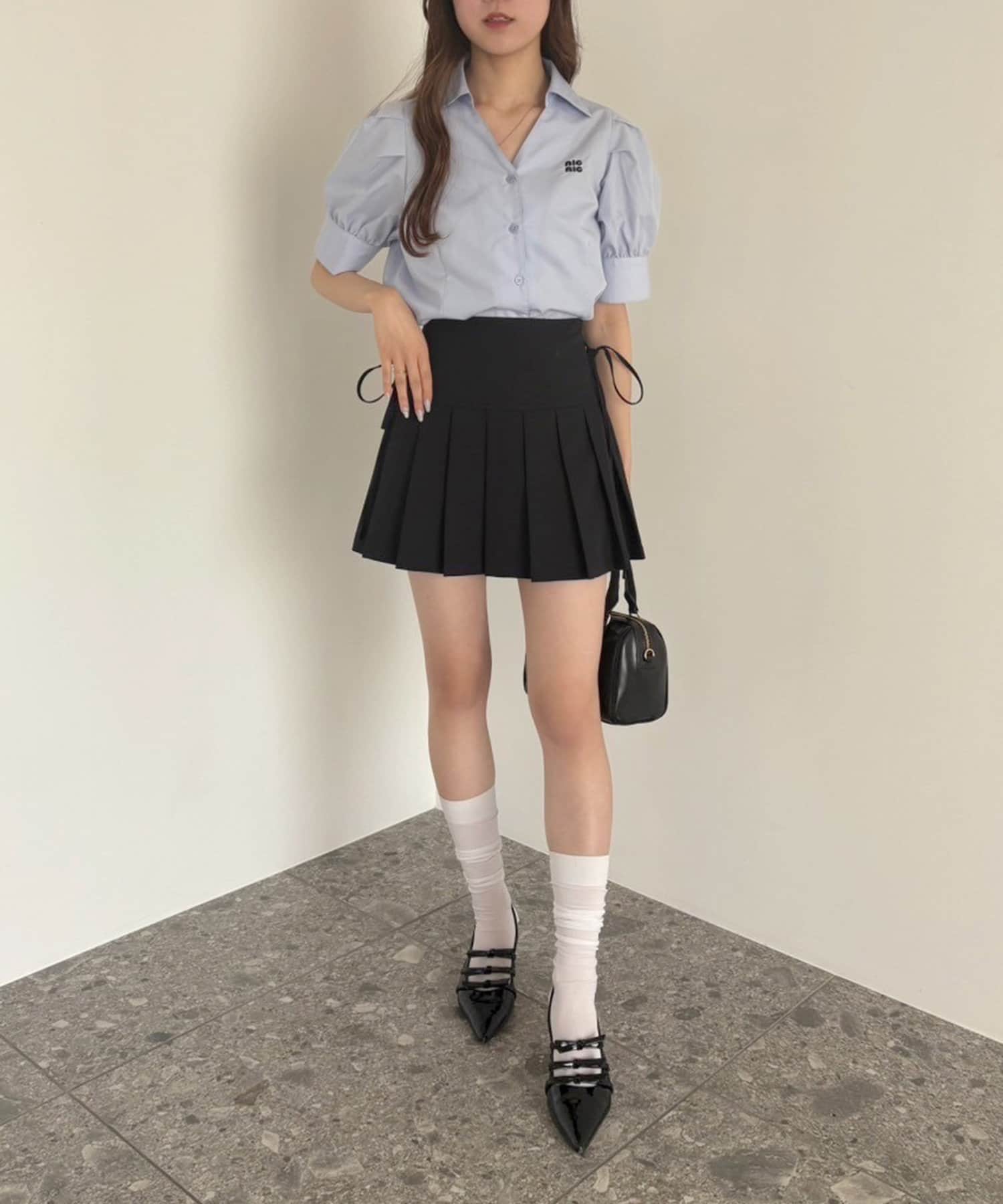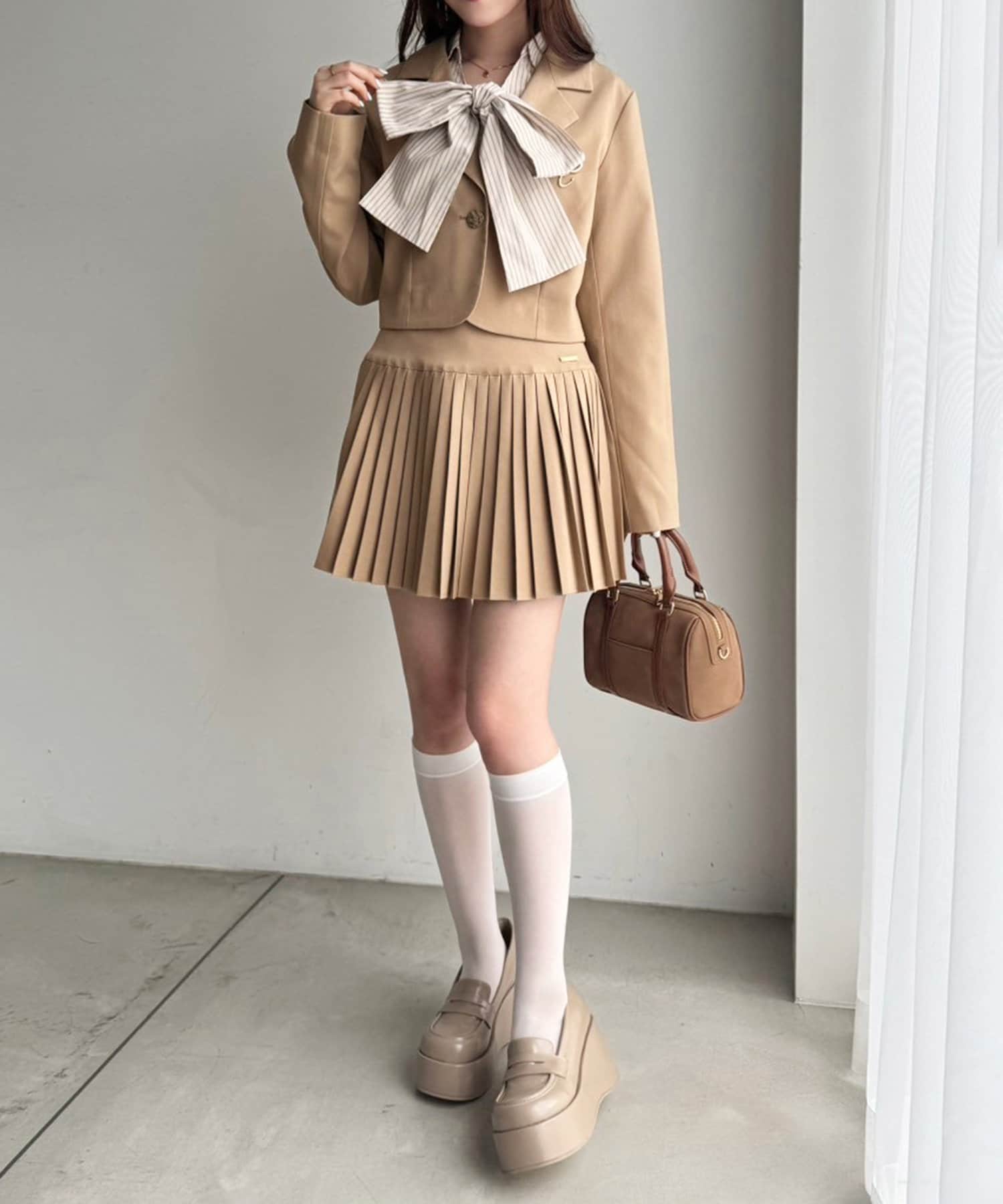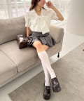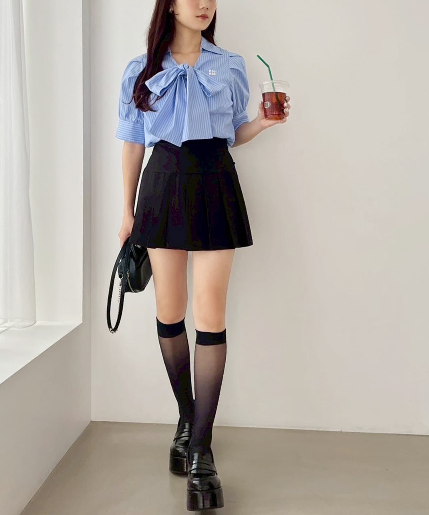 甘め好きな方はミニボトムにハイソックス合わせが今年らしい組み合わせでオススメです。