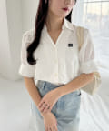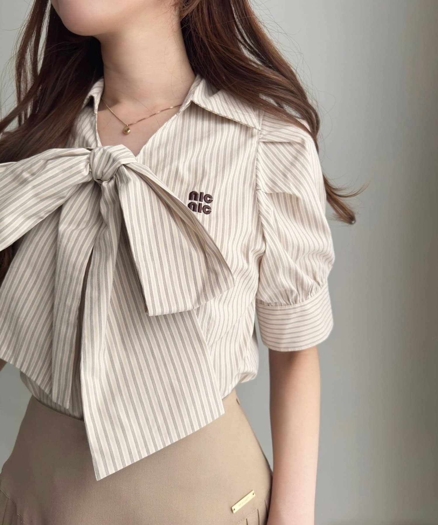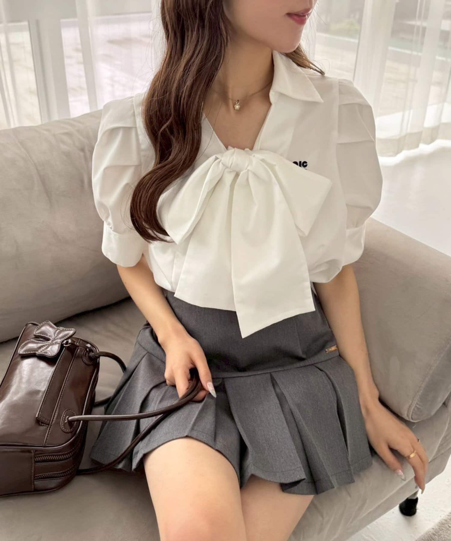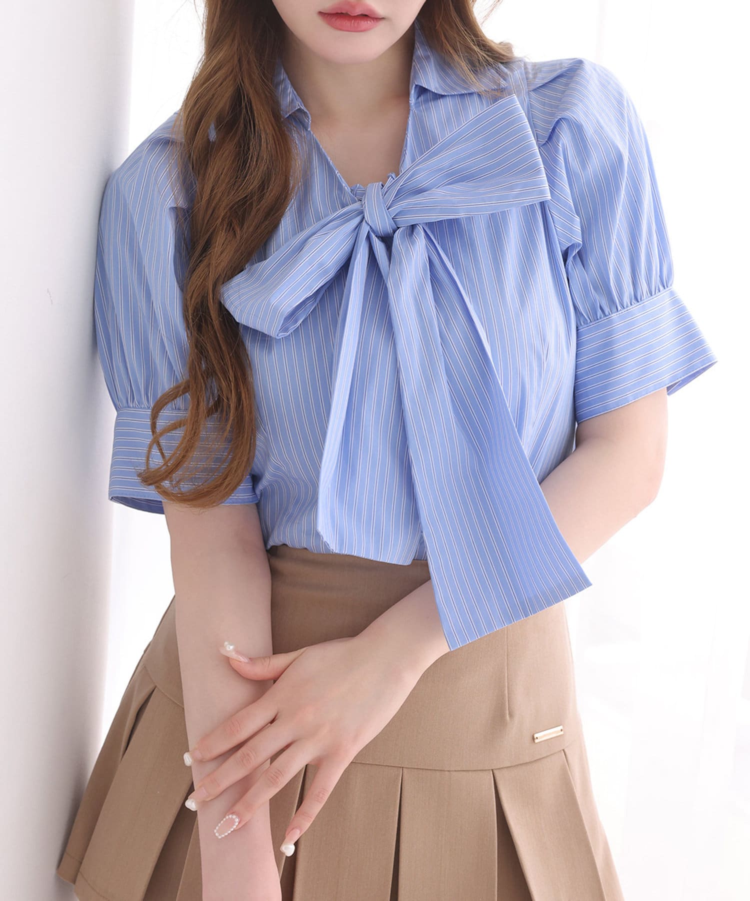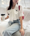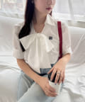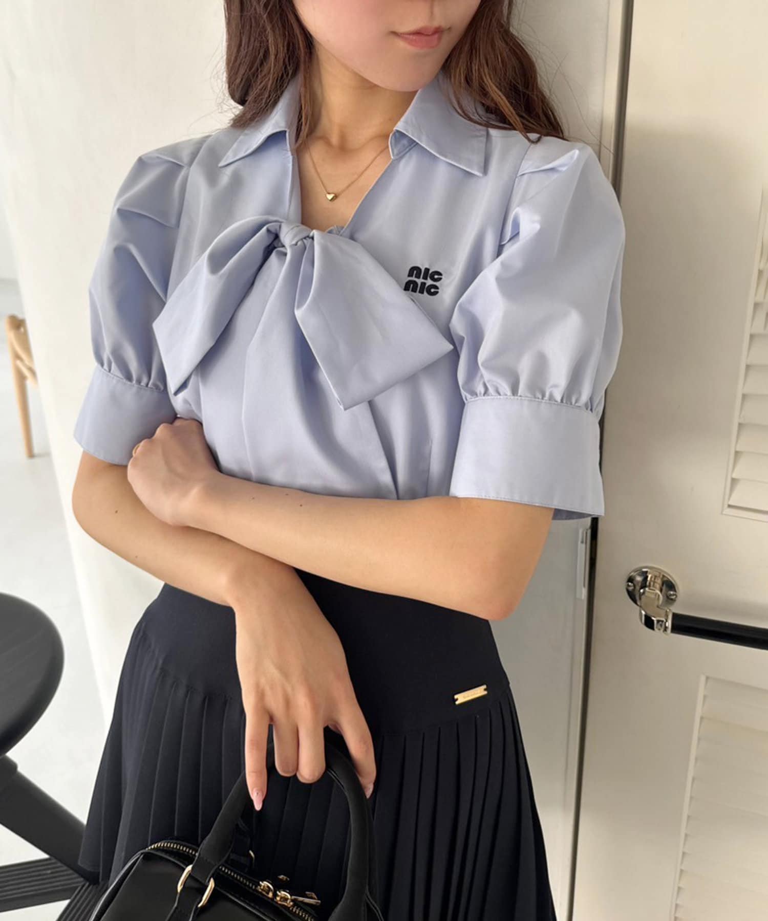 胸元の刺しゅうと大きなリボンがポイントのブラウス