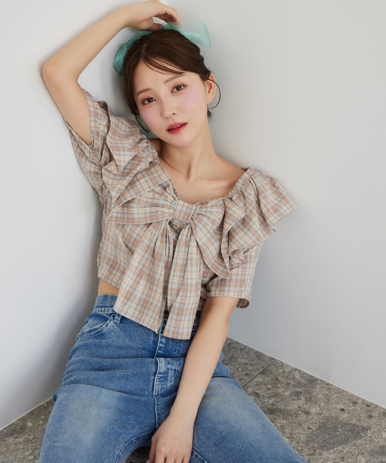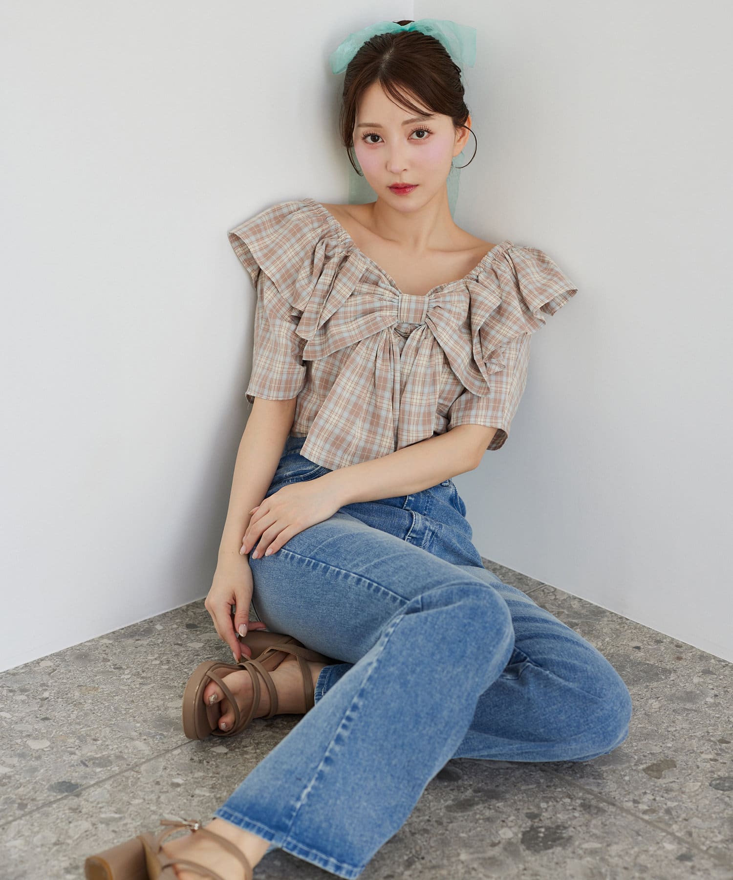 ガーリーなディテールとカジュアルなチェック柄が絶妙なバランスで、大人かわいい着こなしが叶います。
