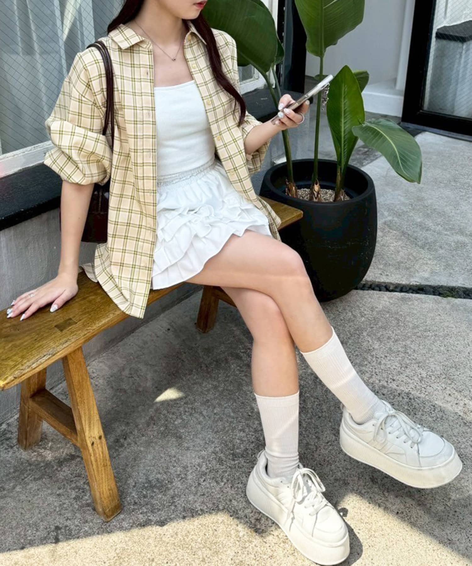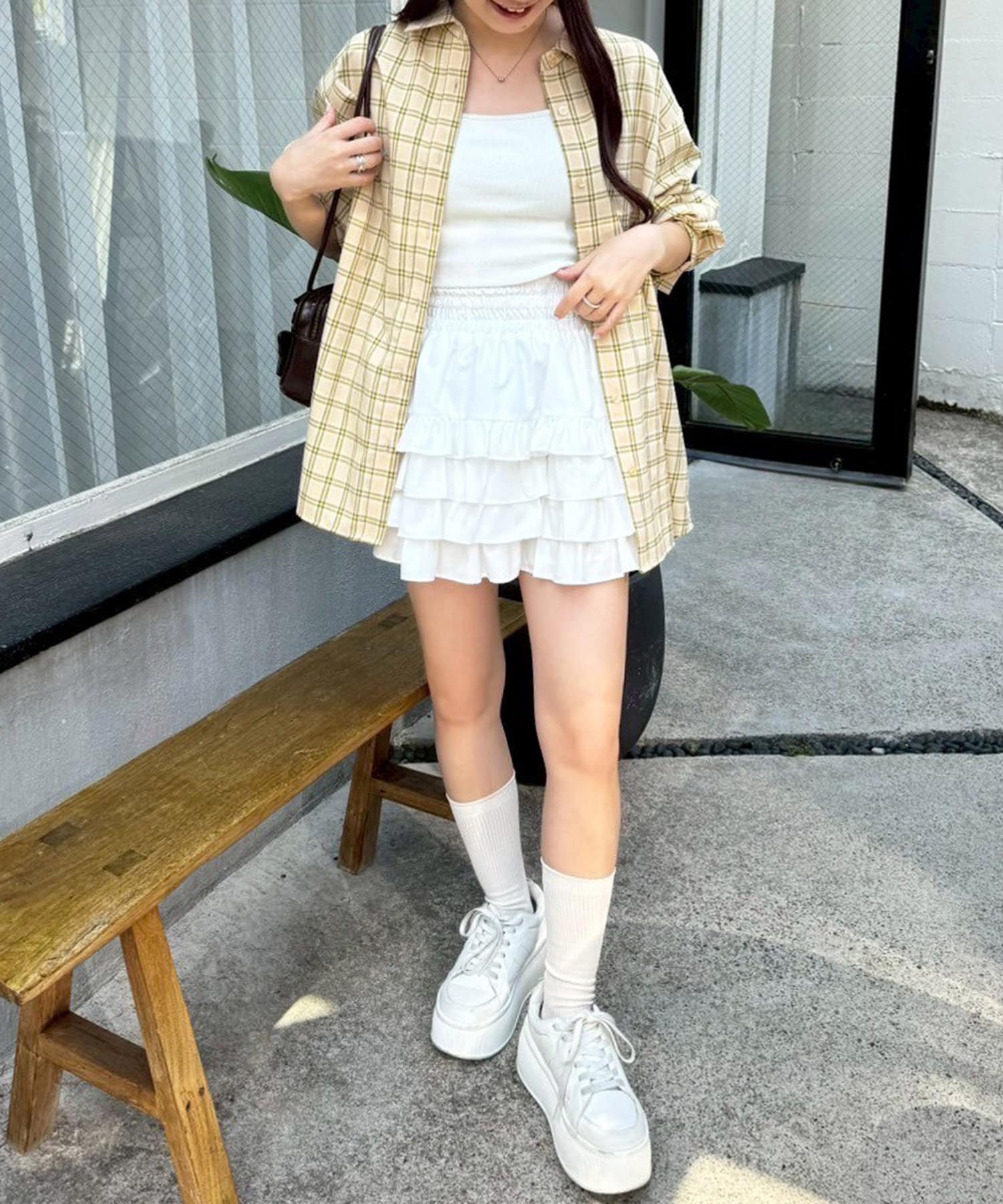 ミニボトムでカジュアルダウンさせても抜け感アップ!