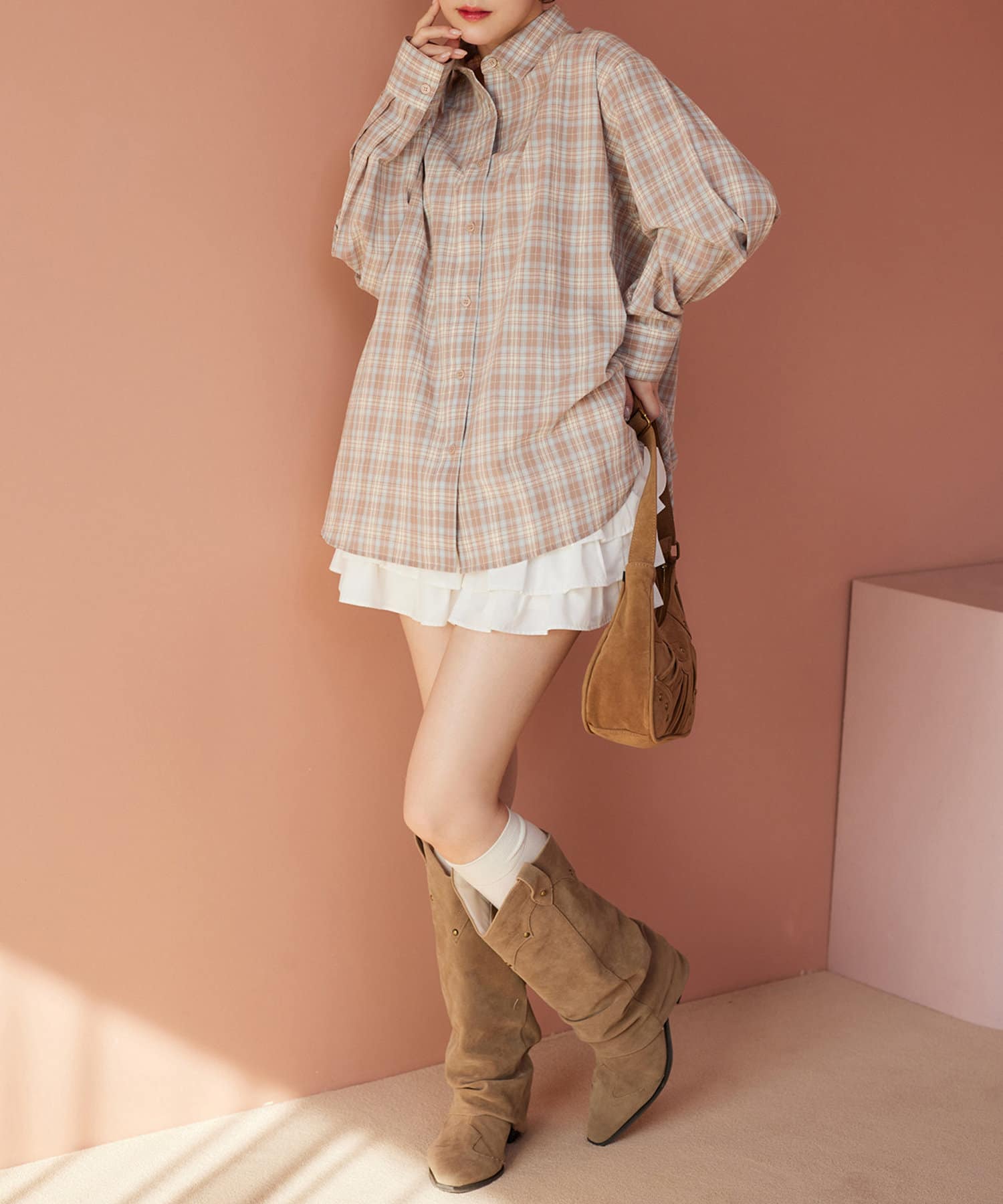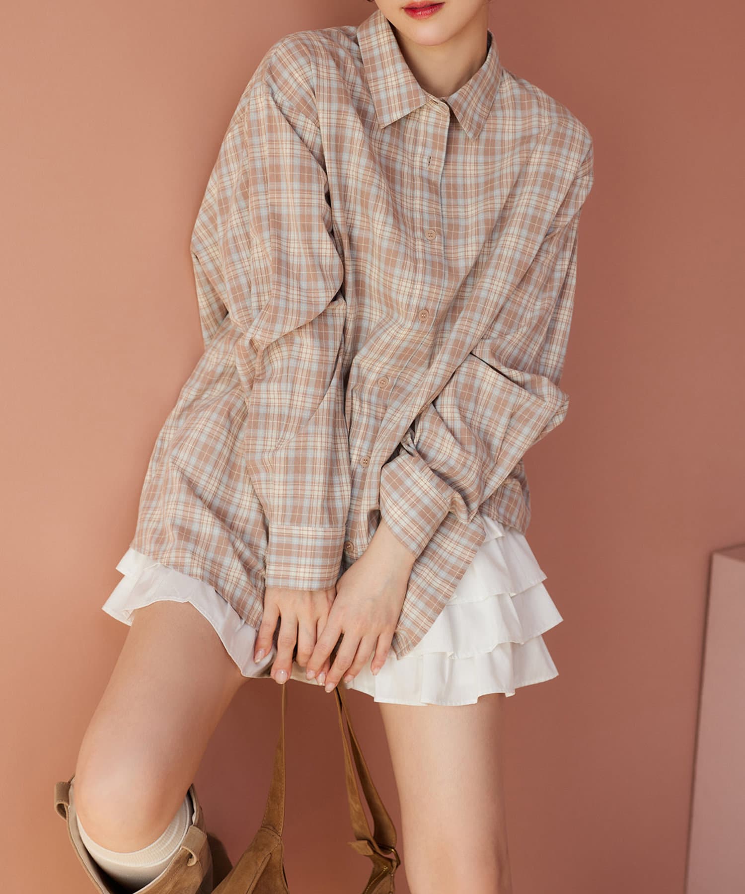 ゆるっとしたサイズ感でトレンドライクなシルエットのチェックシャツ。