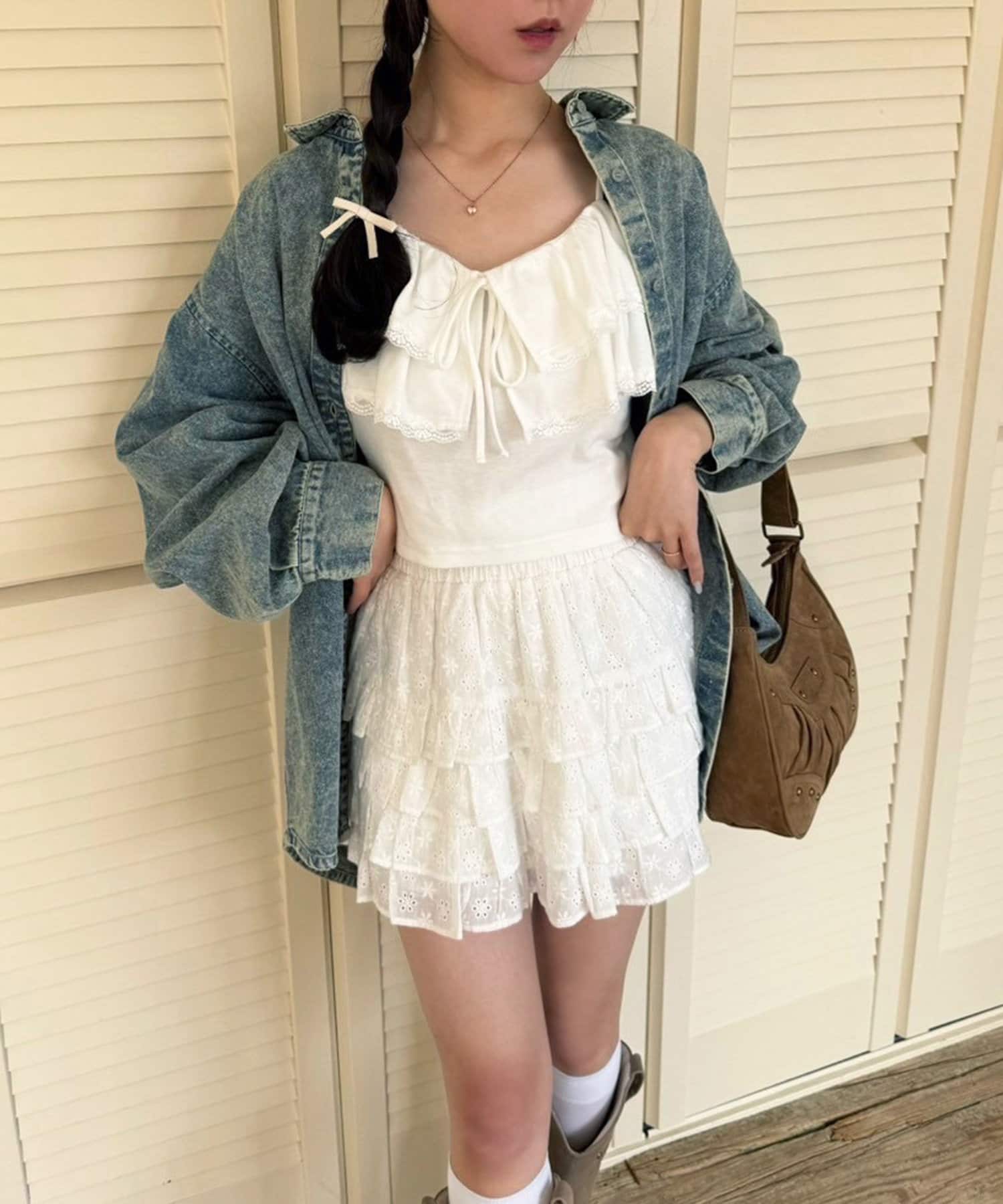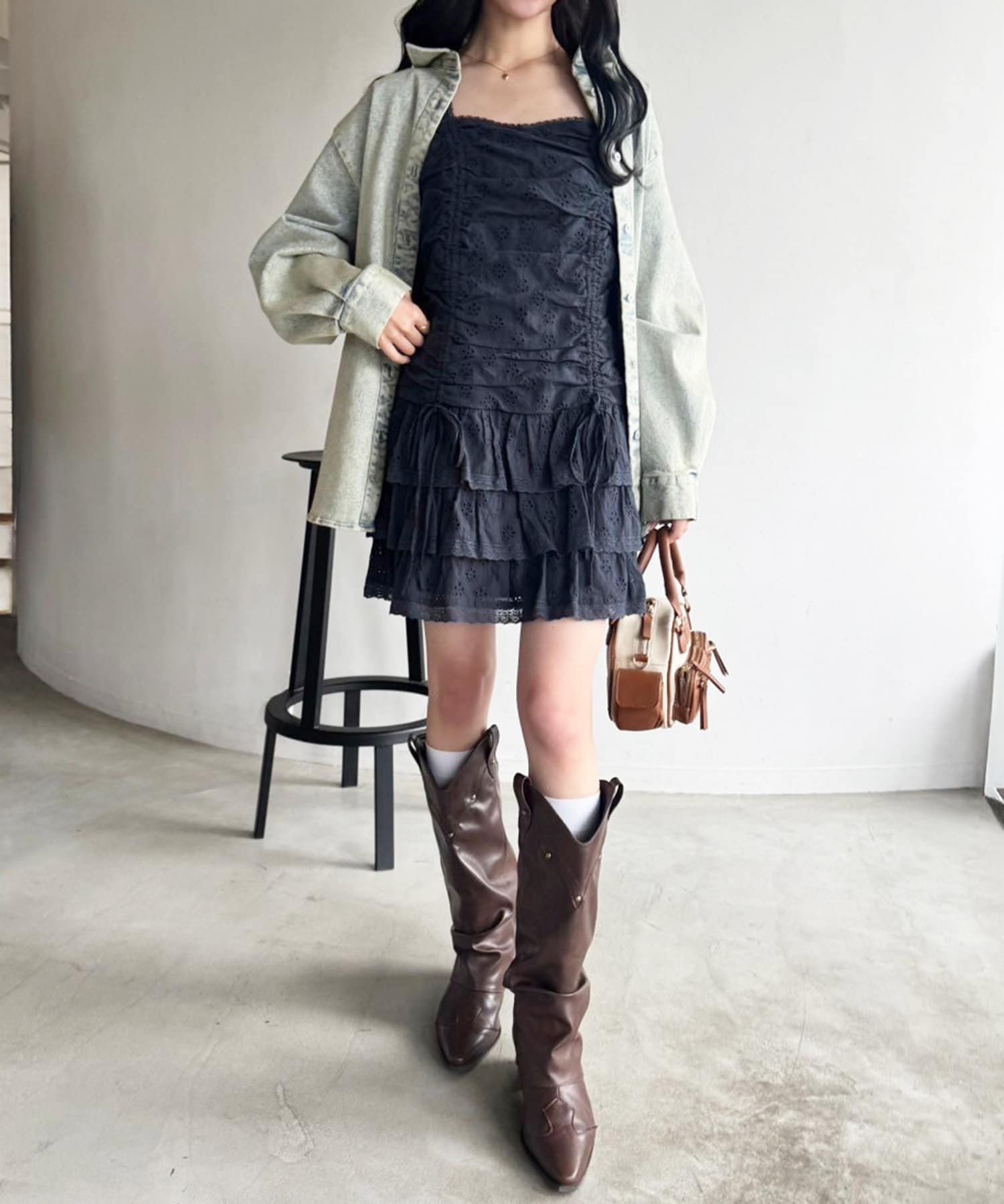 上から、アウターやジャケットを合わせたレイヤードコーデもオススメです。