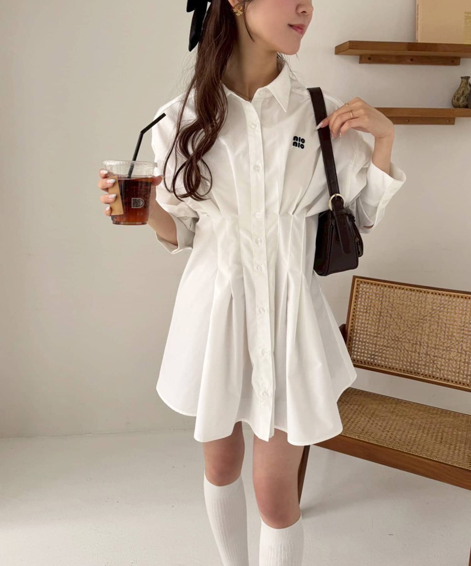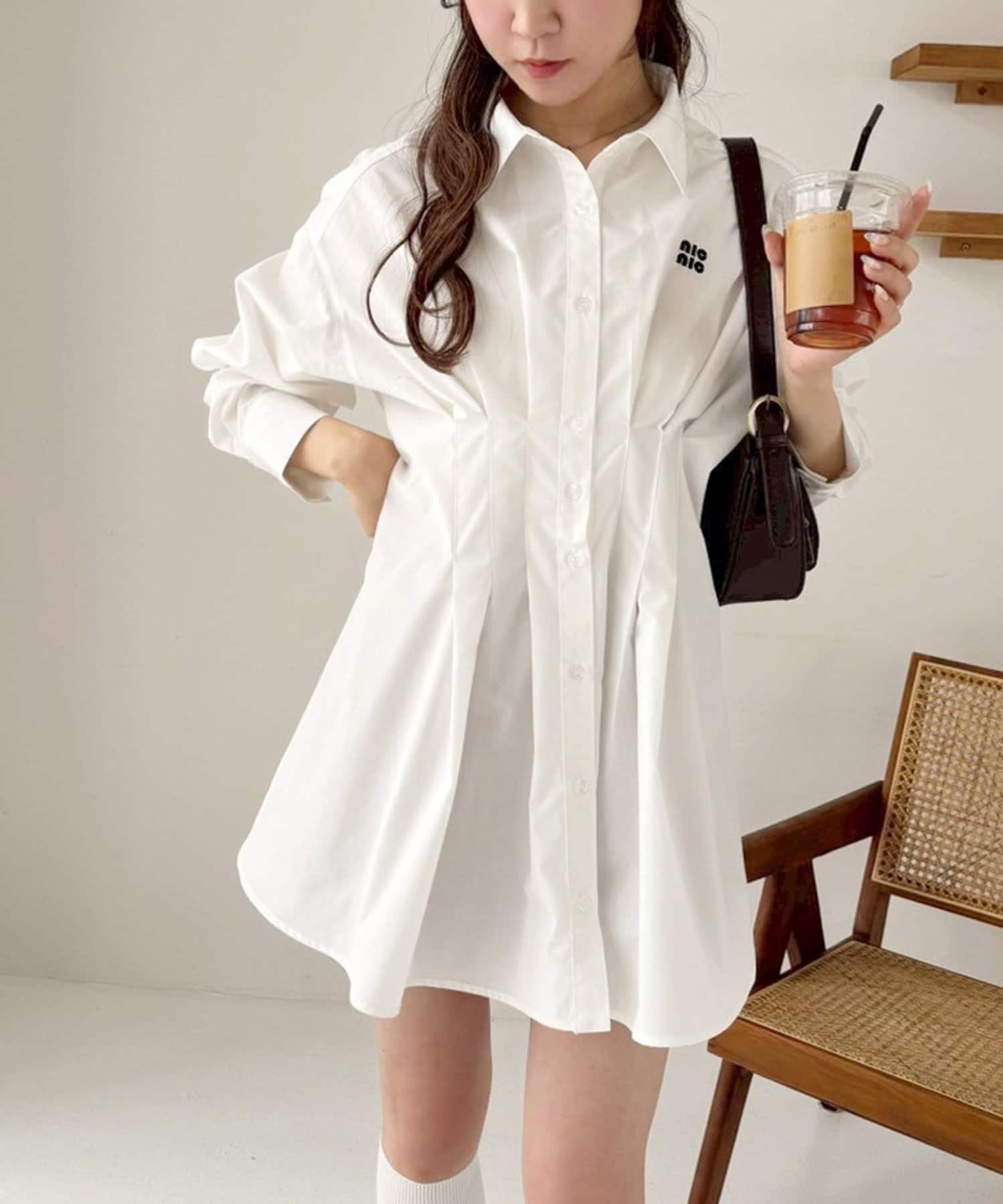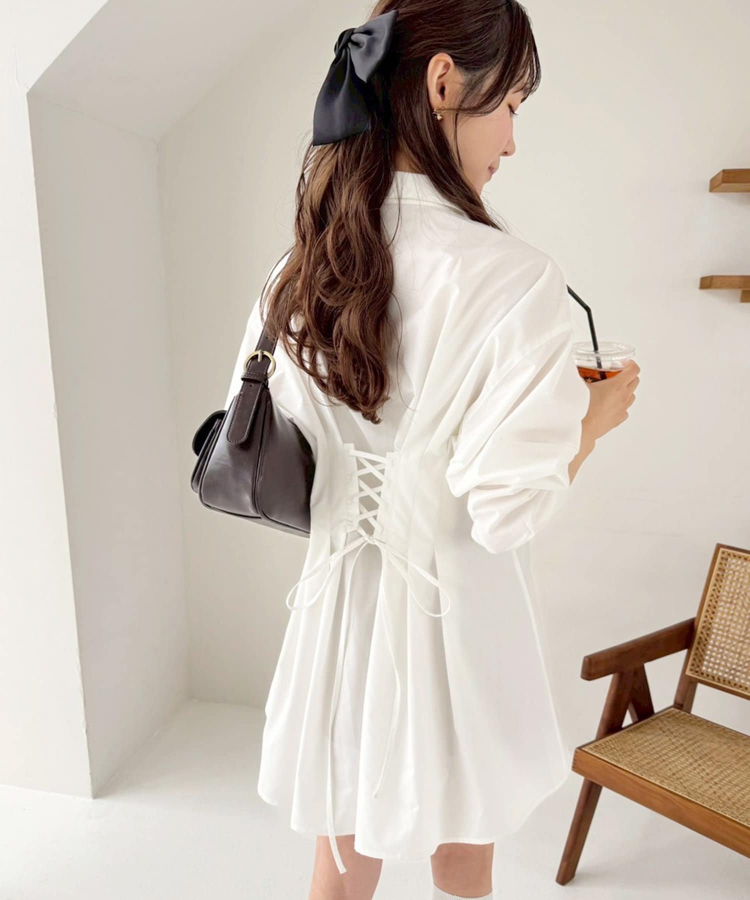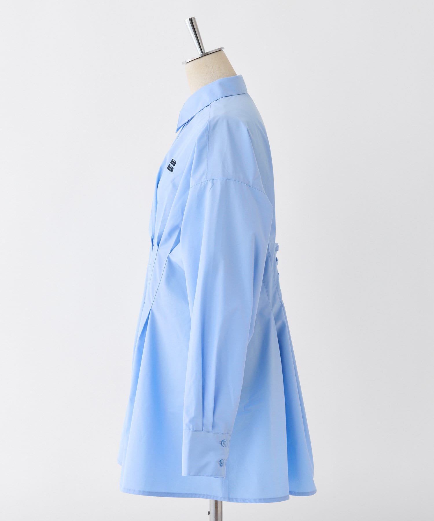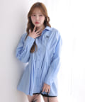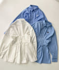 着るだけでスタイルアップができ、ウエスト細見え間違いなしのミドル丈のシャツ。
