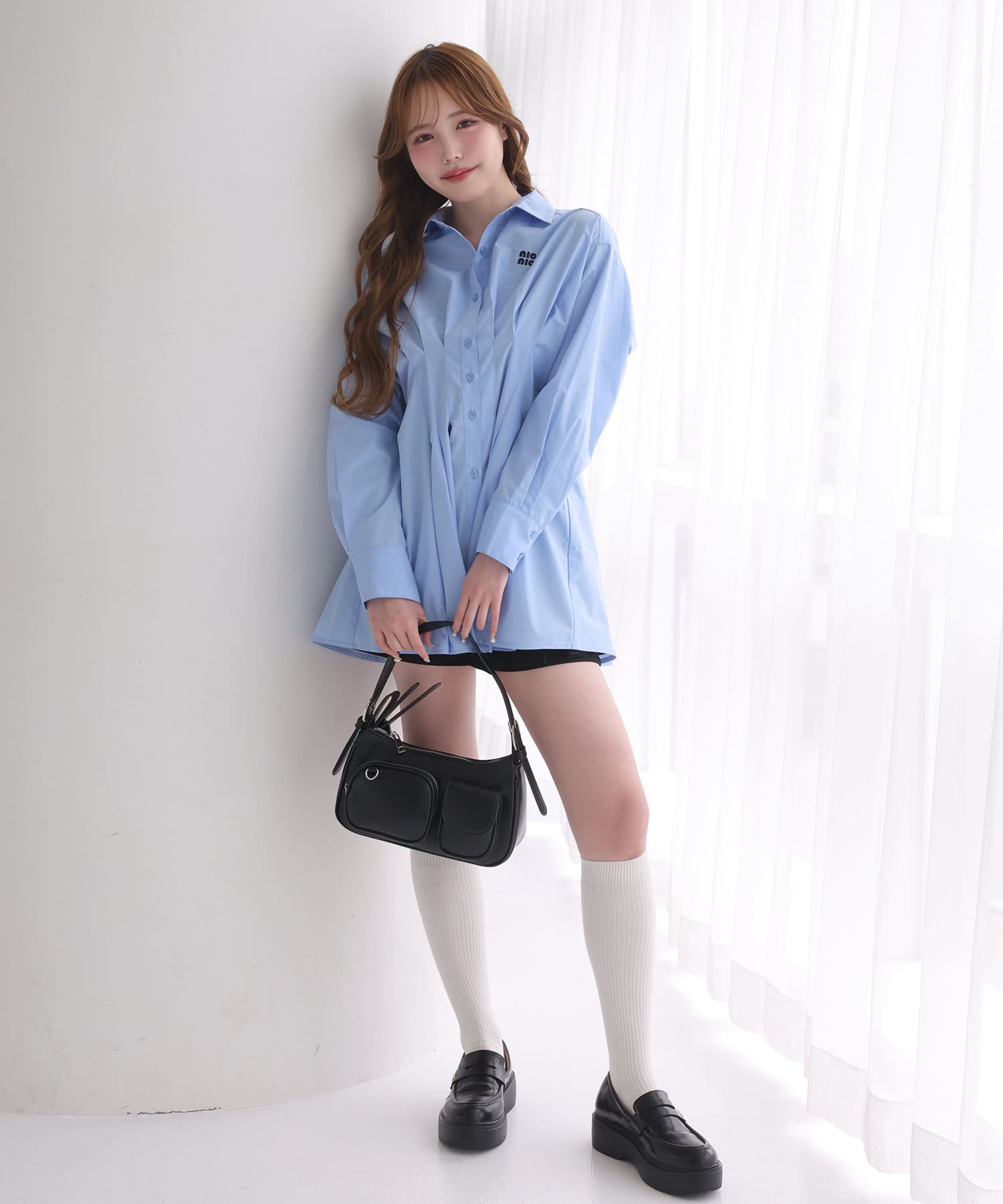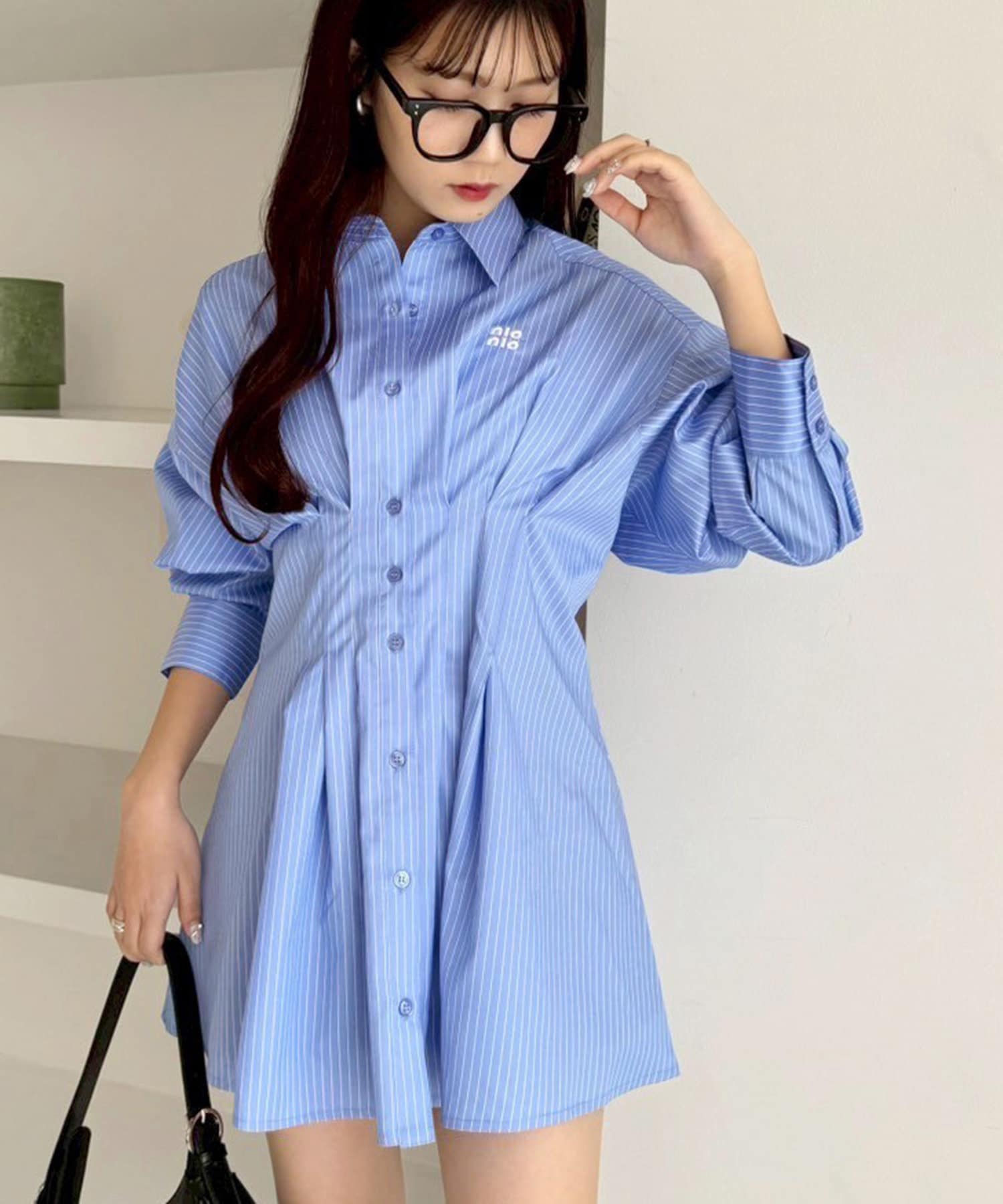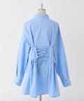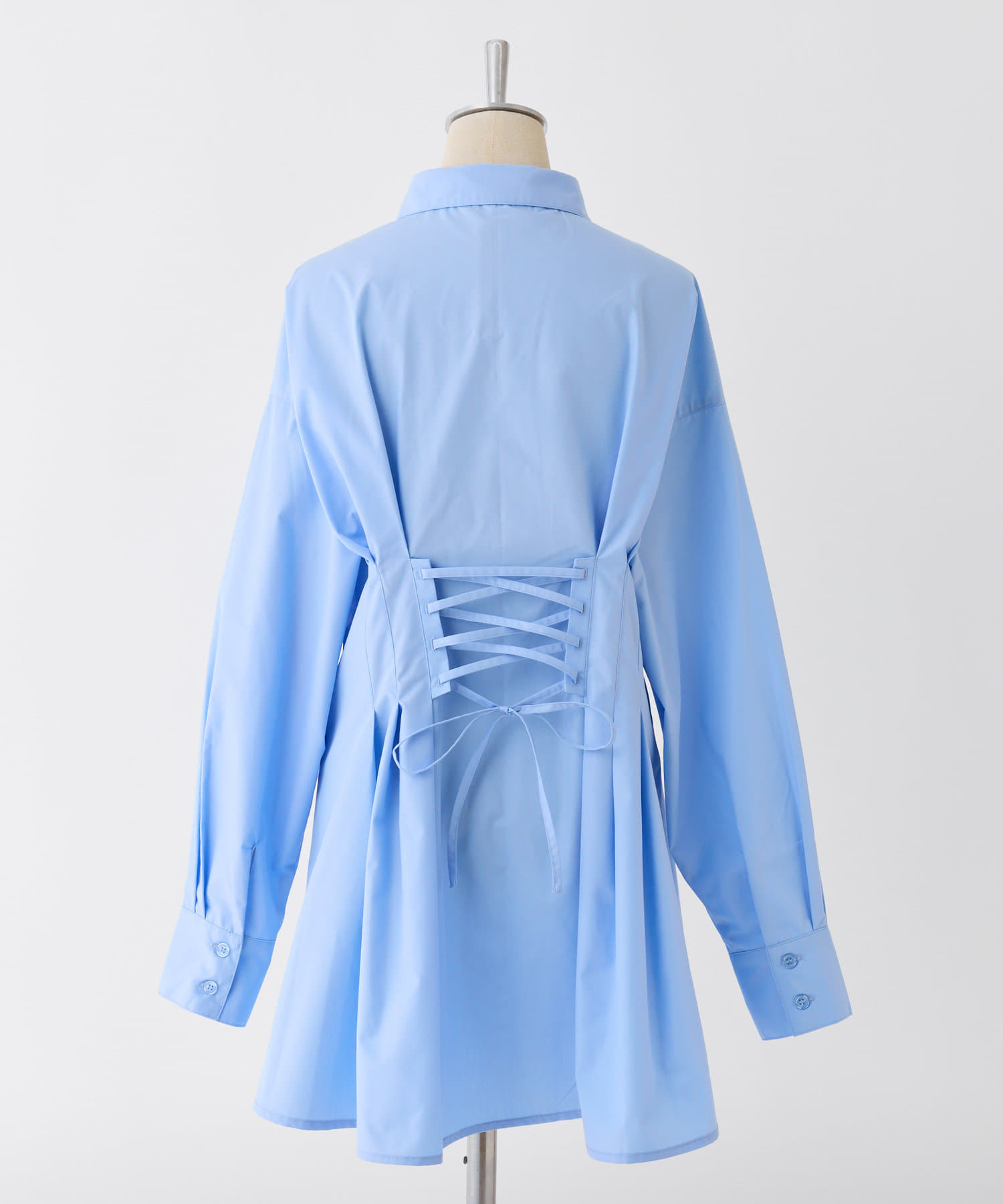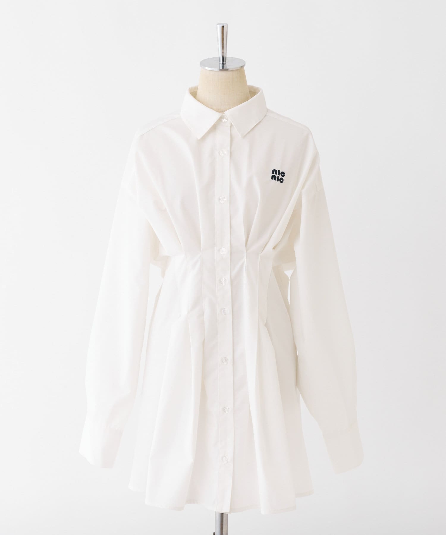 着るだけでスタイルアップができ、ウエスト細見え間違いなしのミドル丈のシャツ。