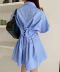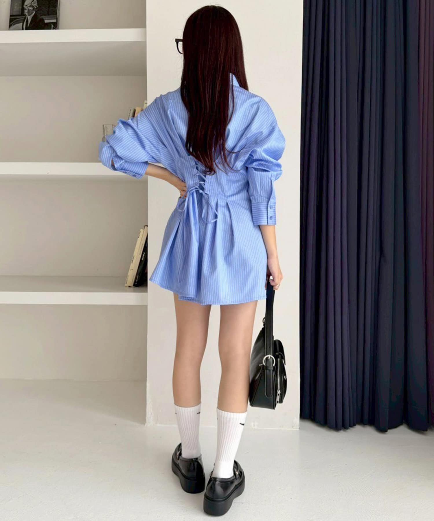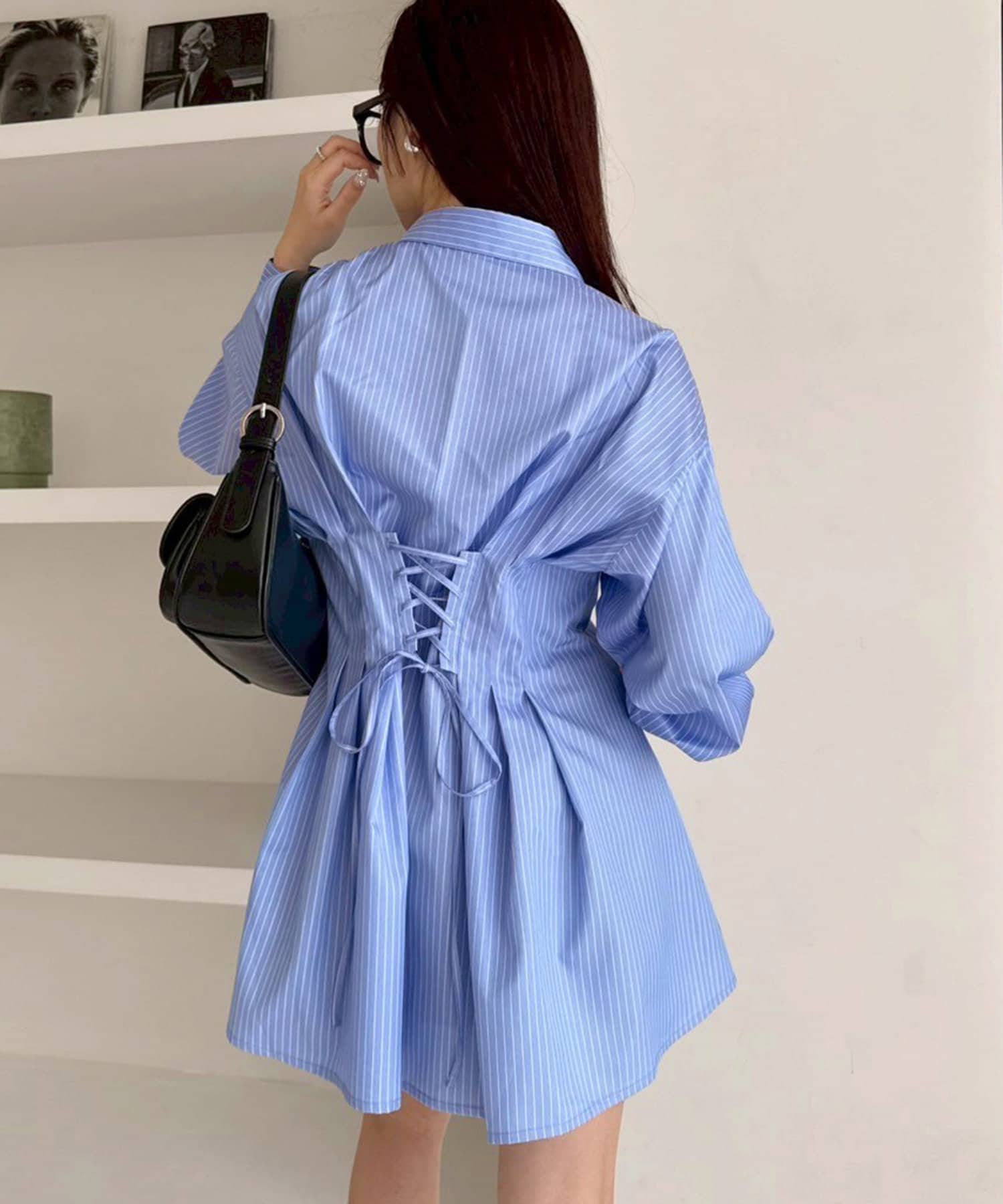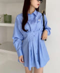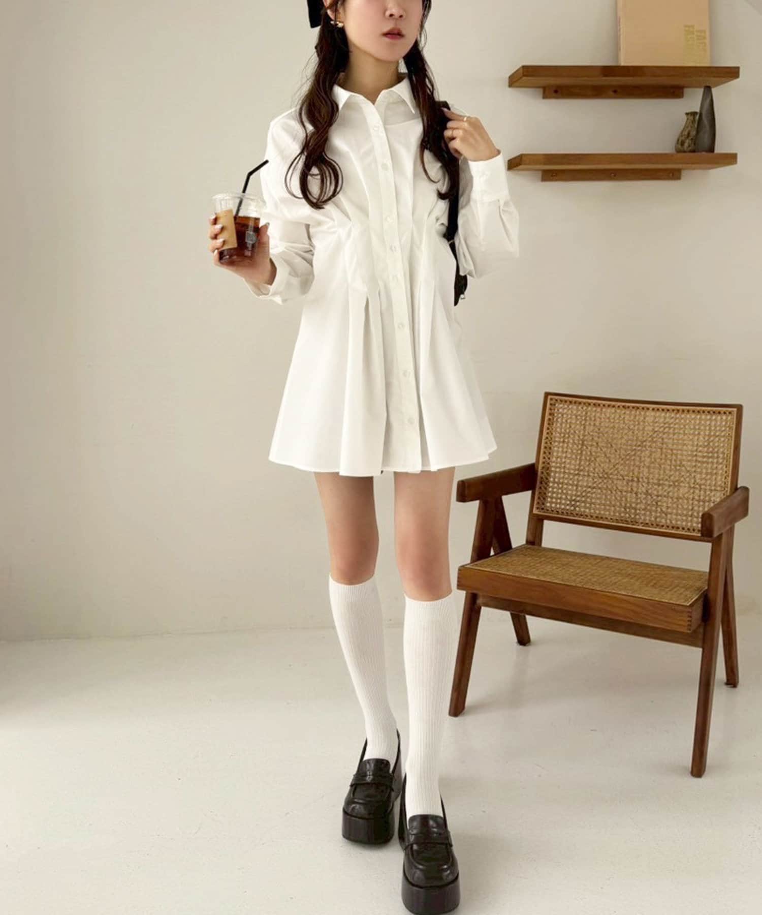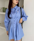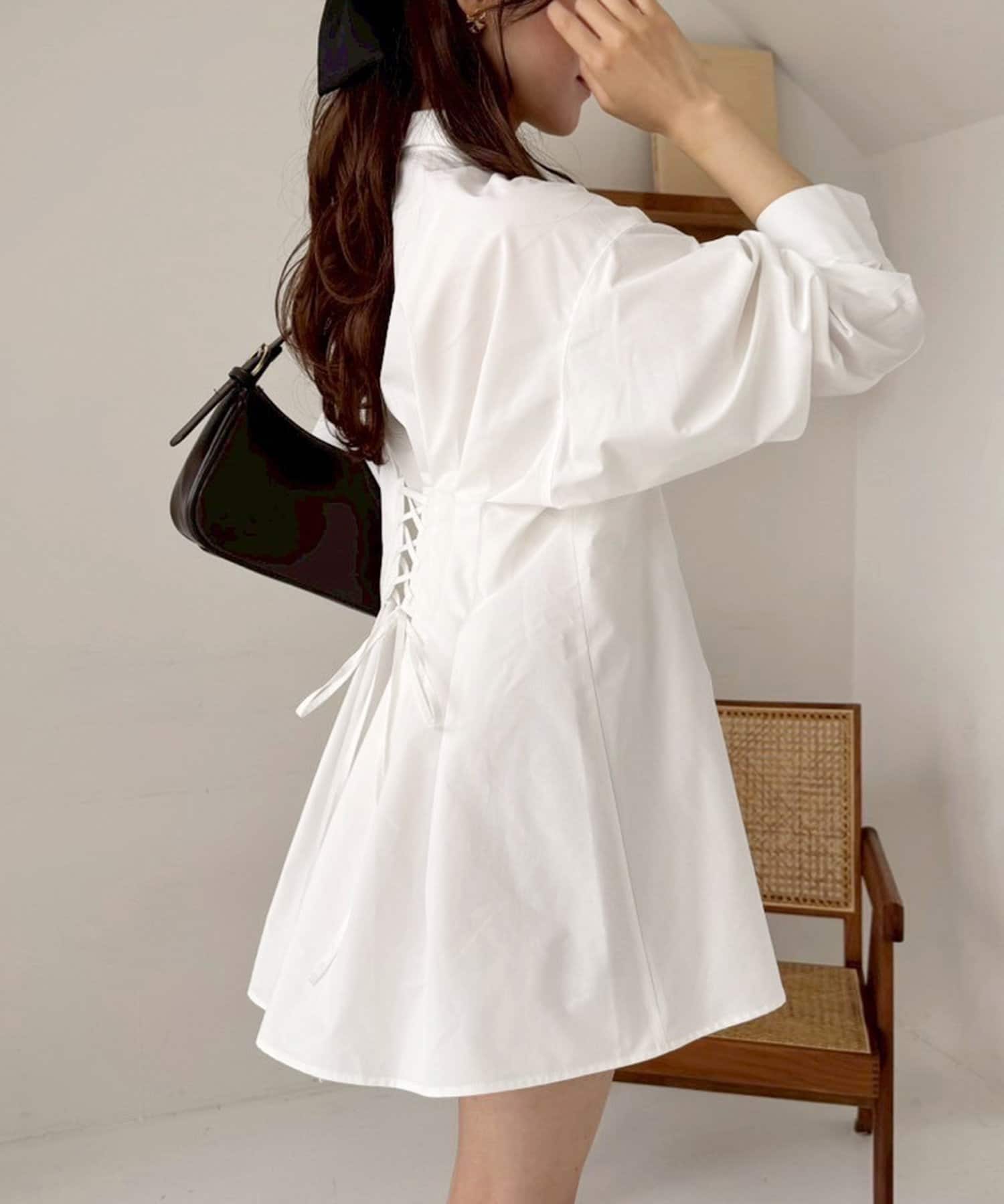 着るだけでスタイルアップができ、ウエスト細見え間違いなしのミドル丈のシャツ。