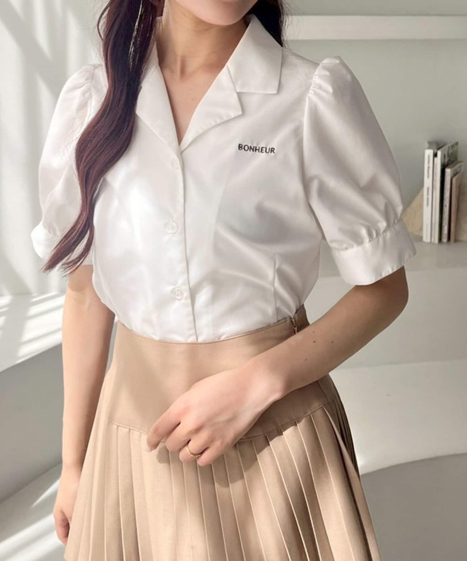 袖の丸みがフェミニンなパフスリーブデザインのブラウス