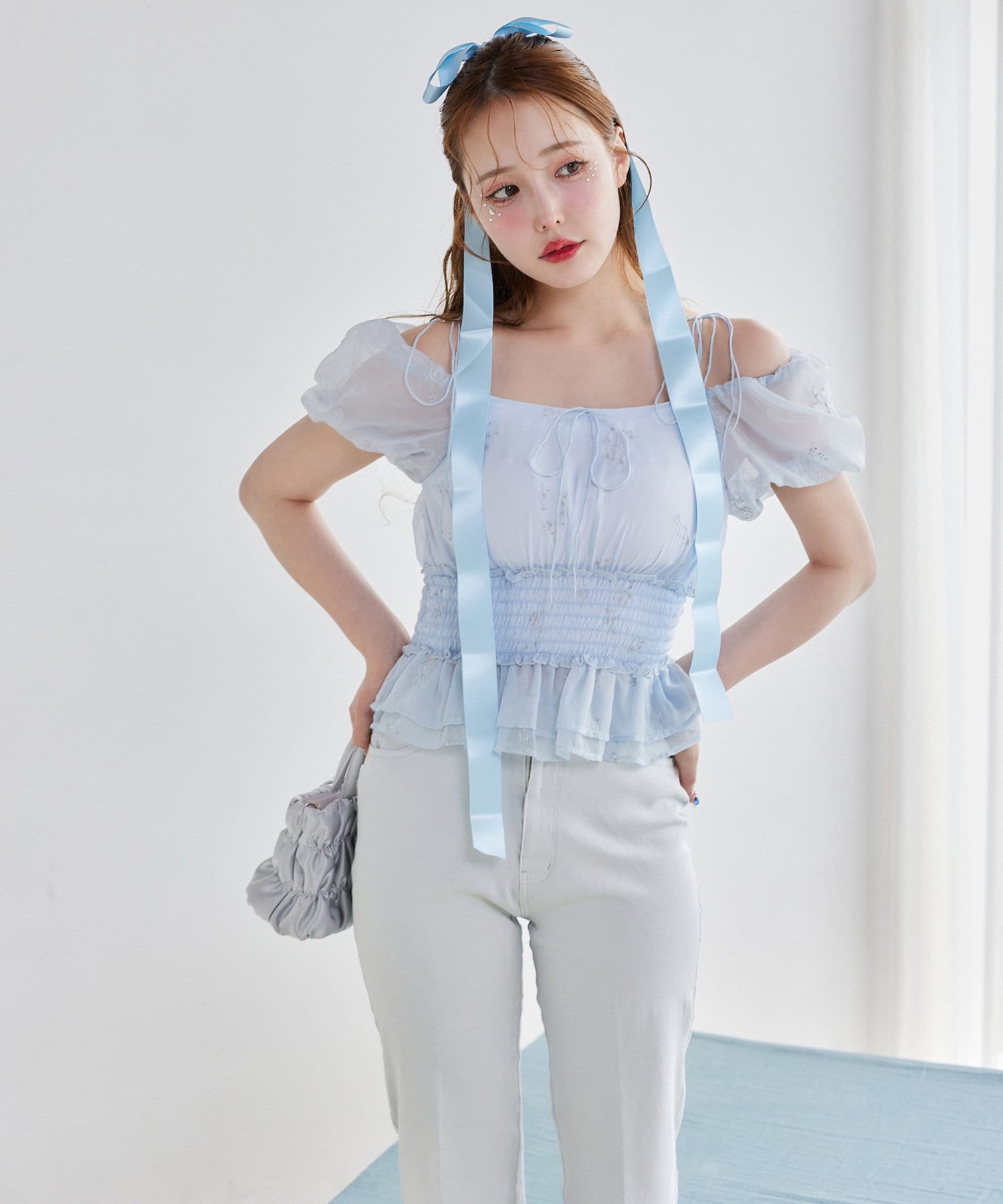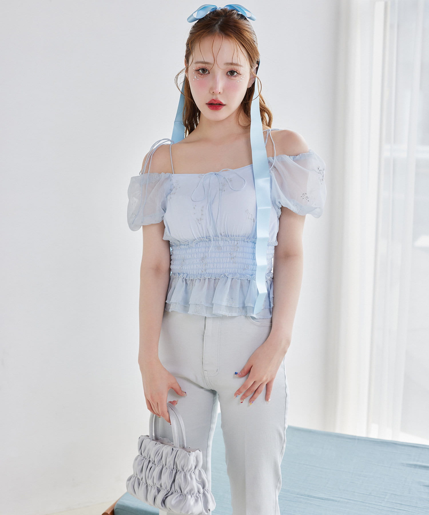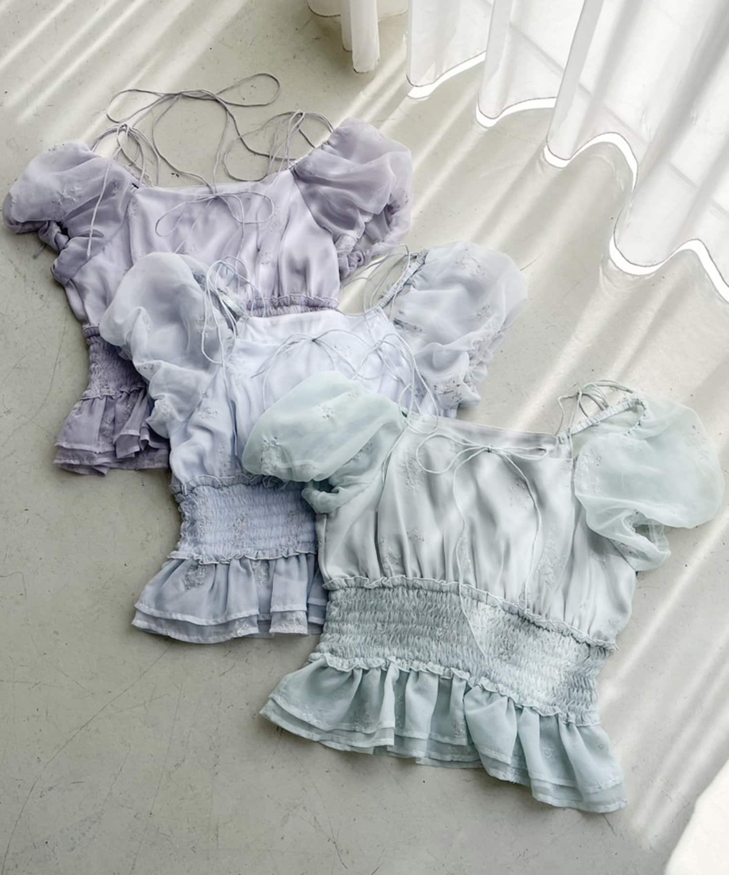 繊細な透け感が女性らしさを引き立てるシアーブラウス。