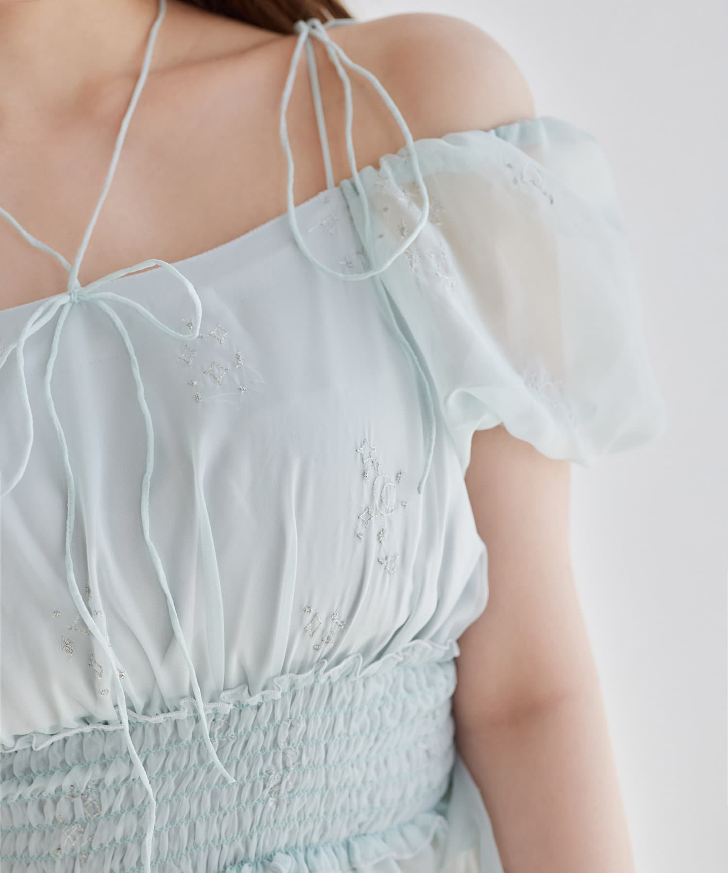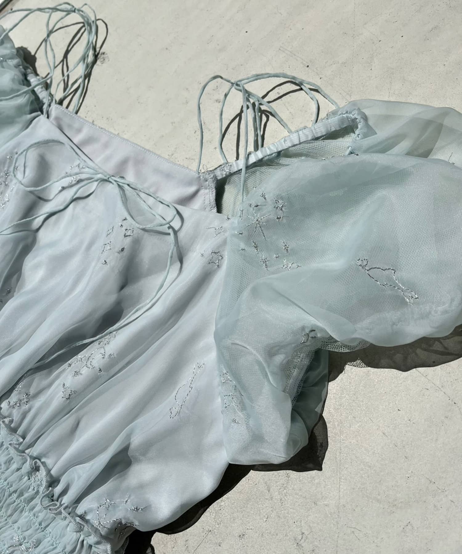 全体にちりばめられたオリジナルの星座刺繍がロマンティックなムードを演出してくれます。