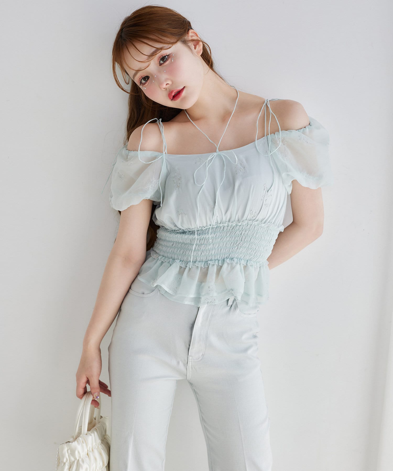 肩部分はゴム仕様になっていて、オフショルダーとしても着られる2WAY仕様。