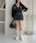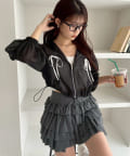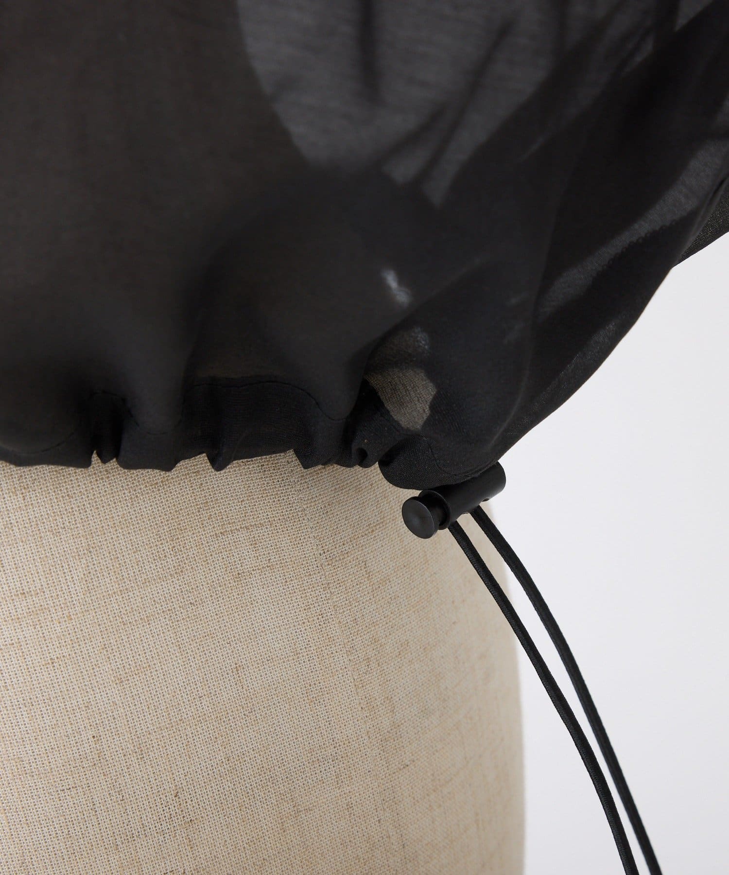 着丈が短いデザインで、さらに絞りがあるのでシルエットが調節できスタイルアップ効果も◎。