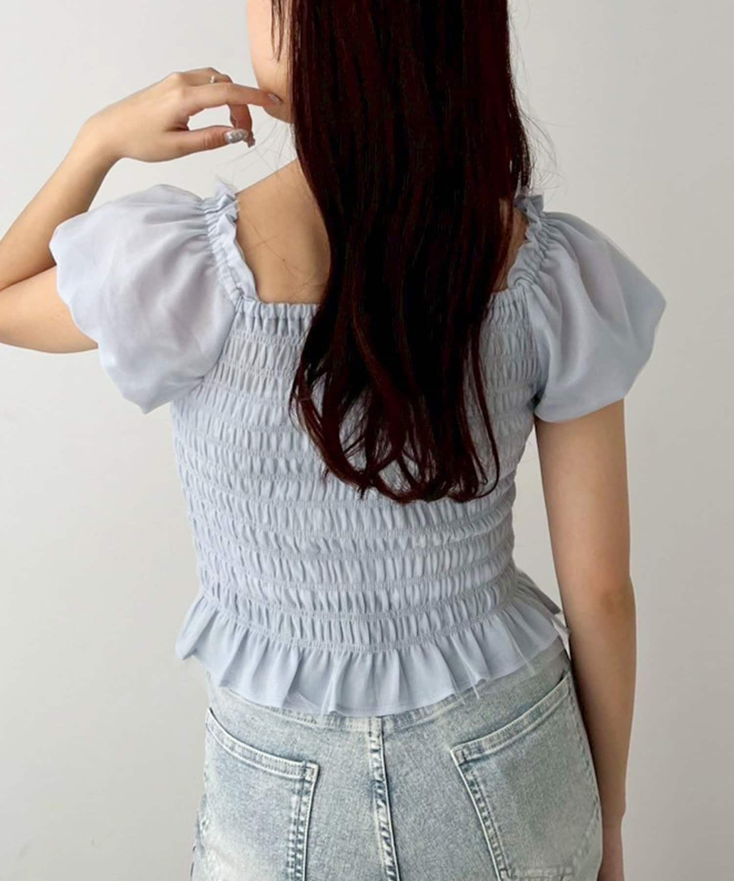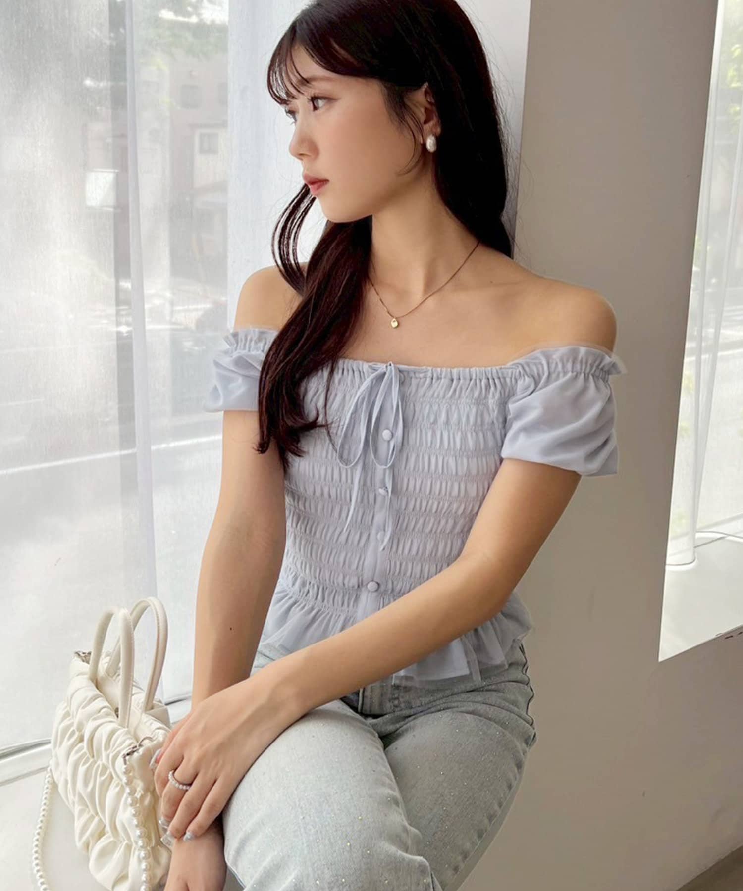 柔らかいシャーリングゴムなので簡単にオフショルで着ることができ、