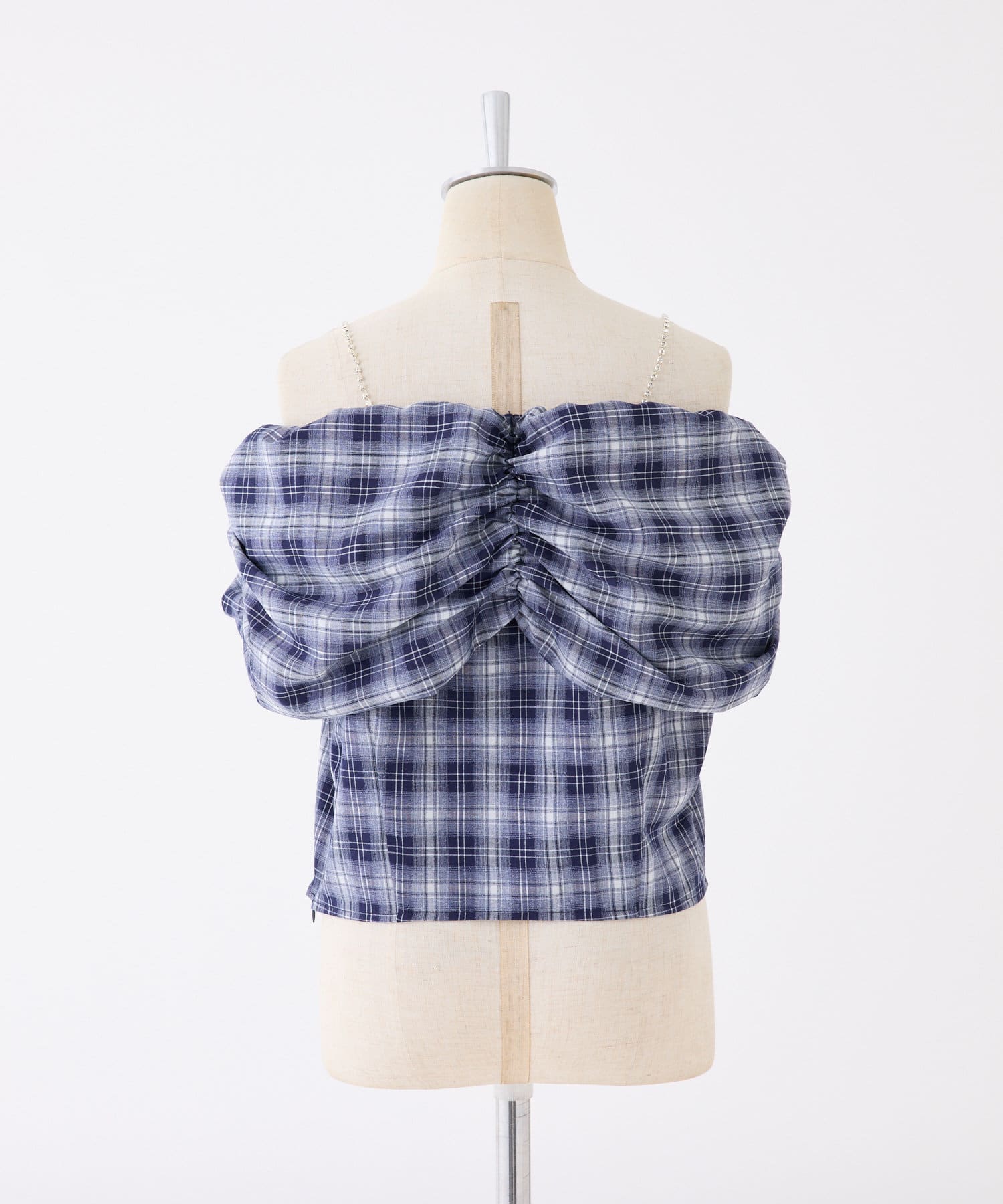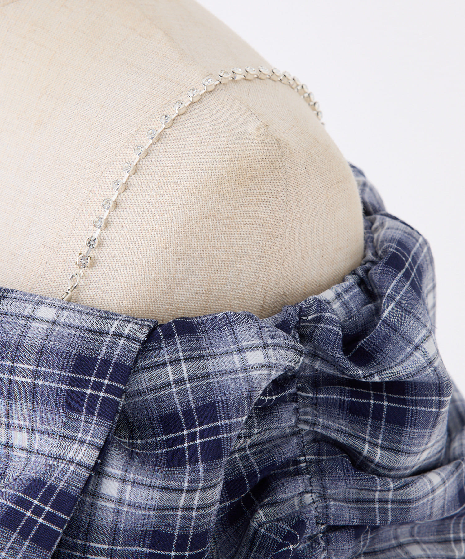 肩まわりを華奢に見せてくれるデザインで、デコルテがきれいに映えるのも嬉しいポイント。