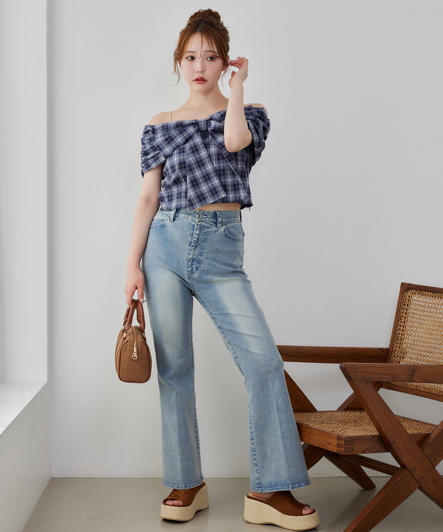 デニムと合わせて甘さ控えめなカジュアルガーリーコーデも◎
