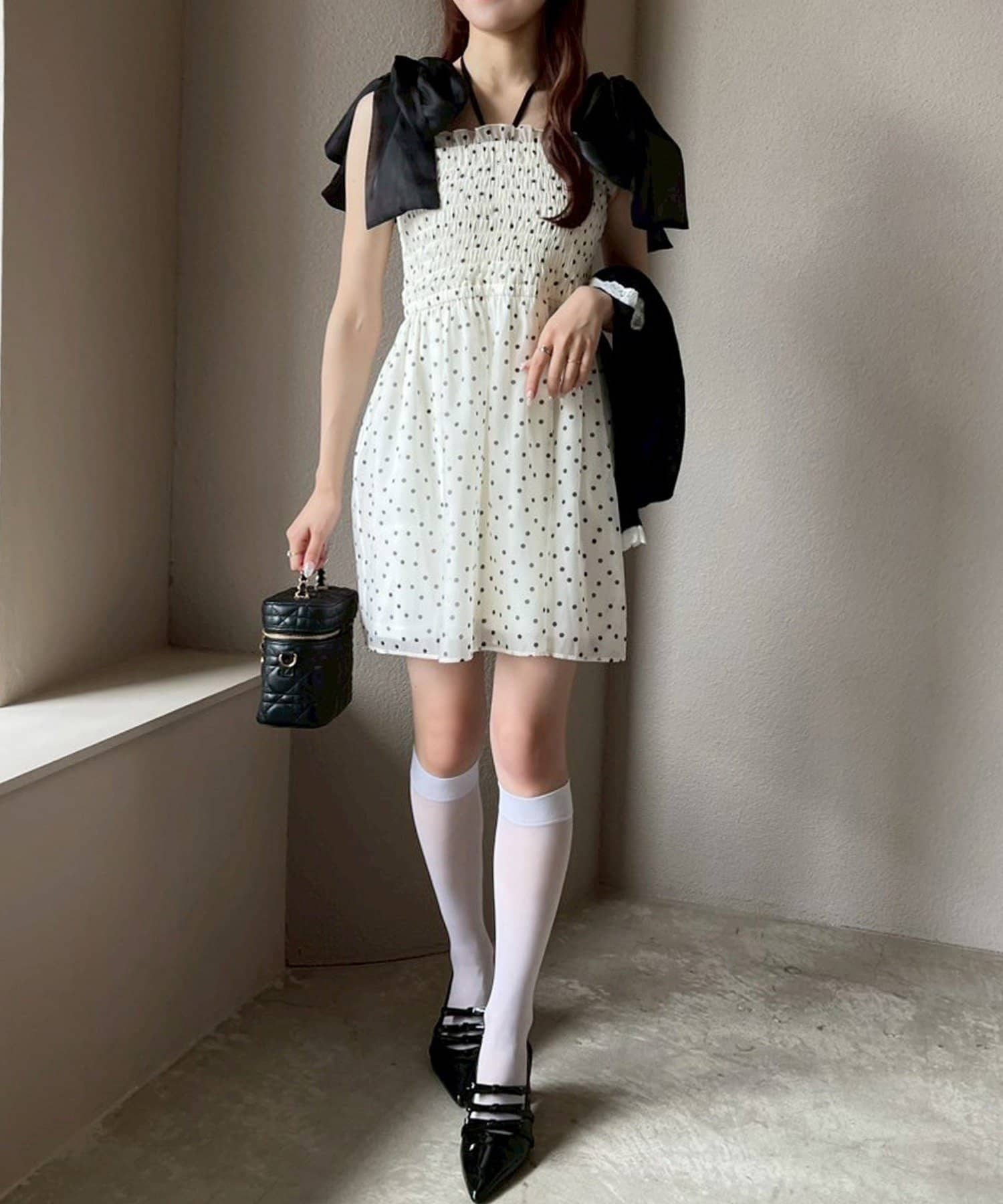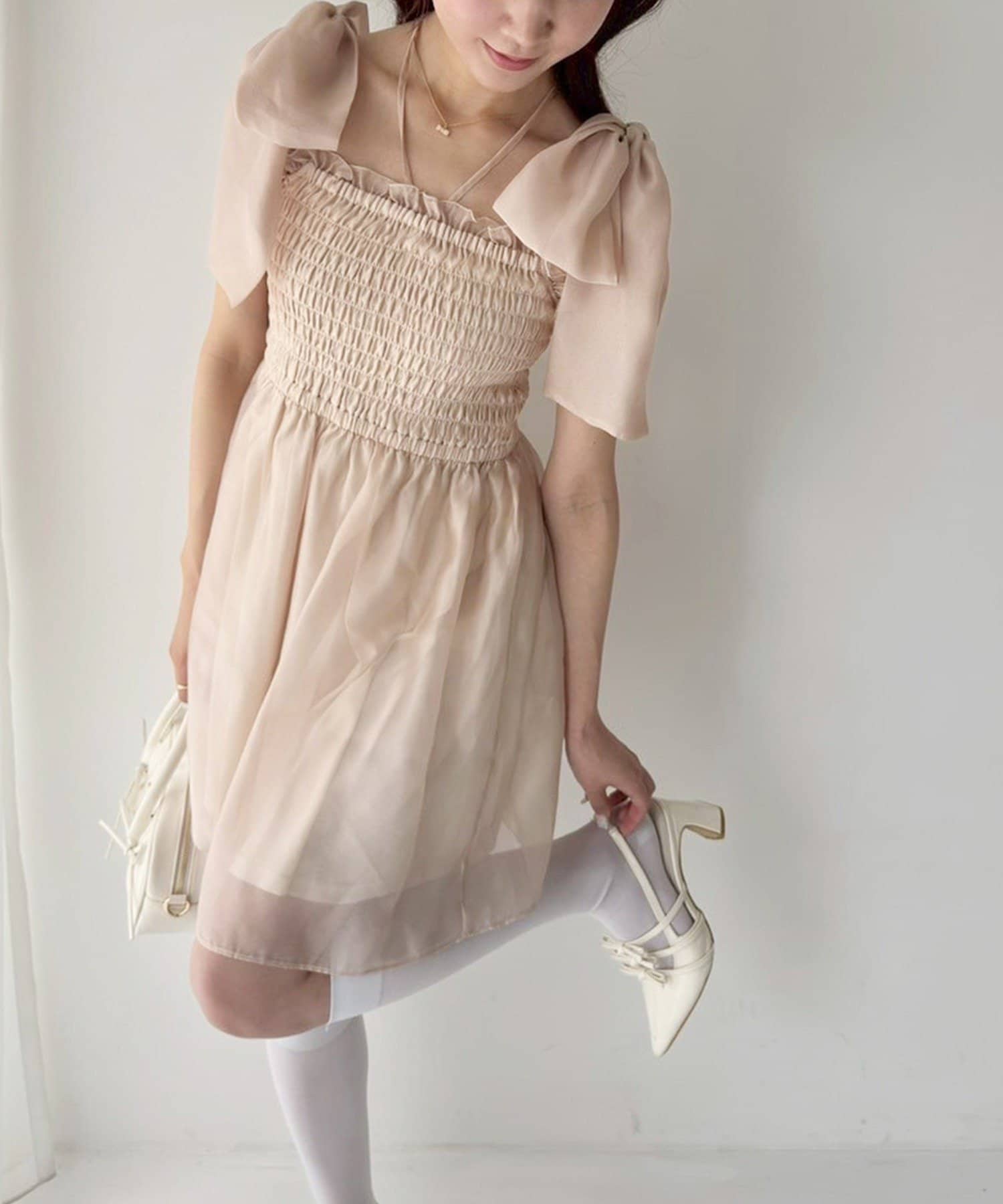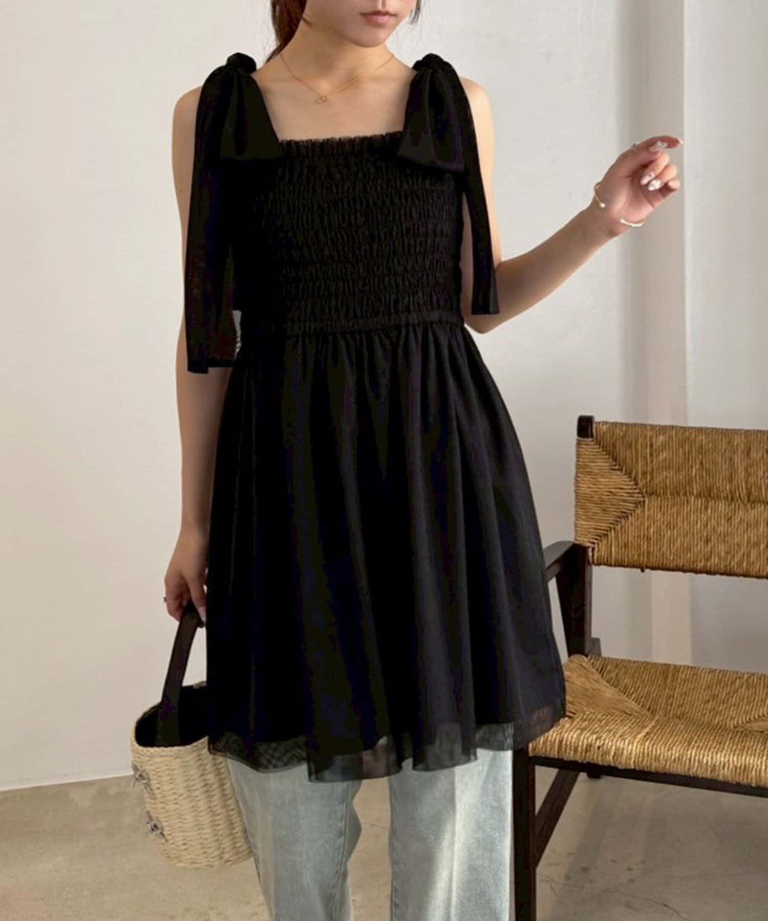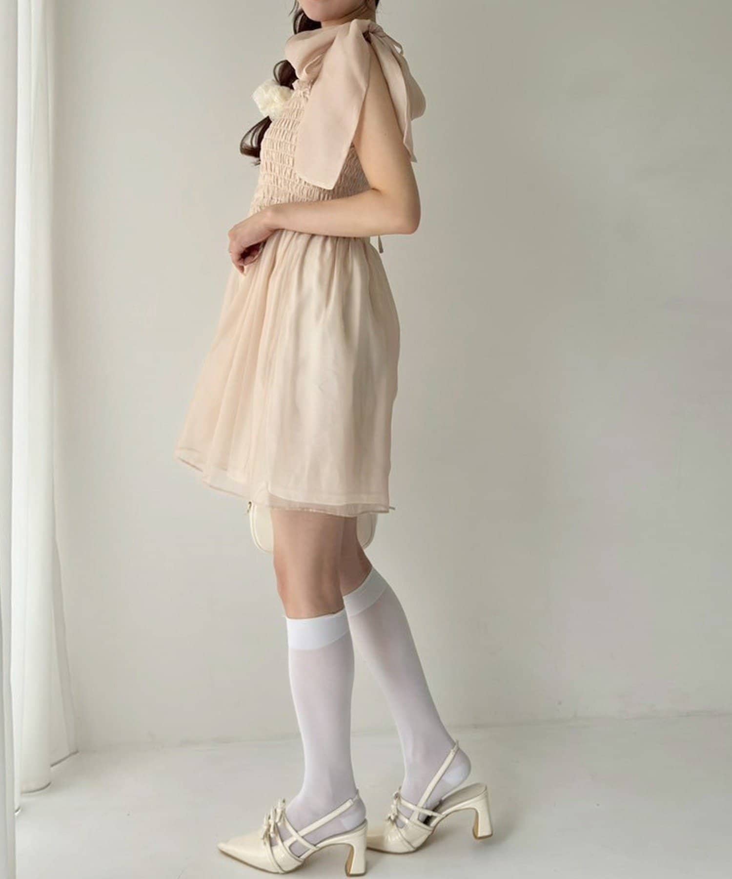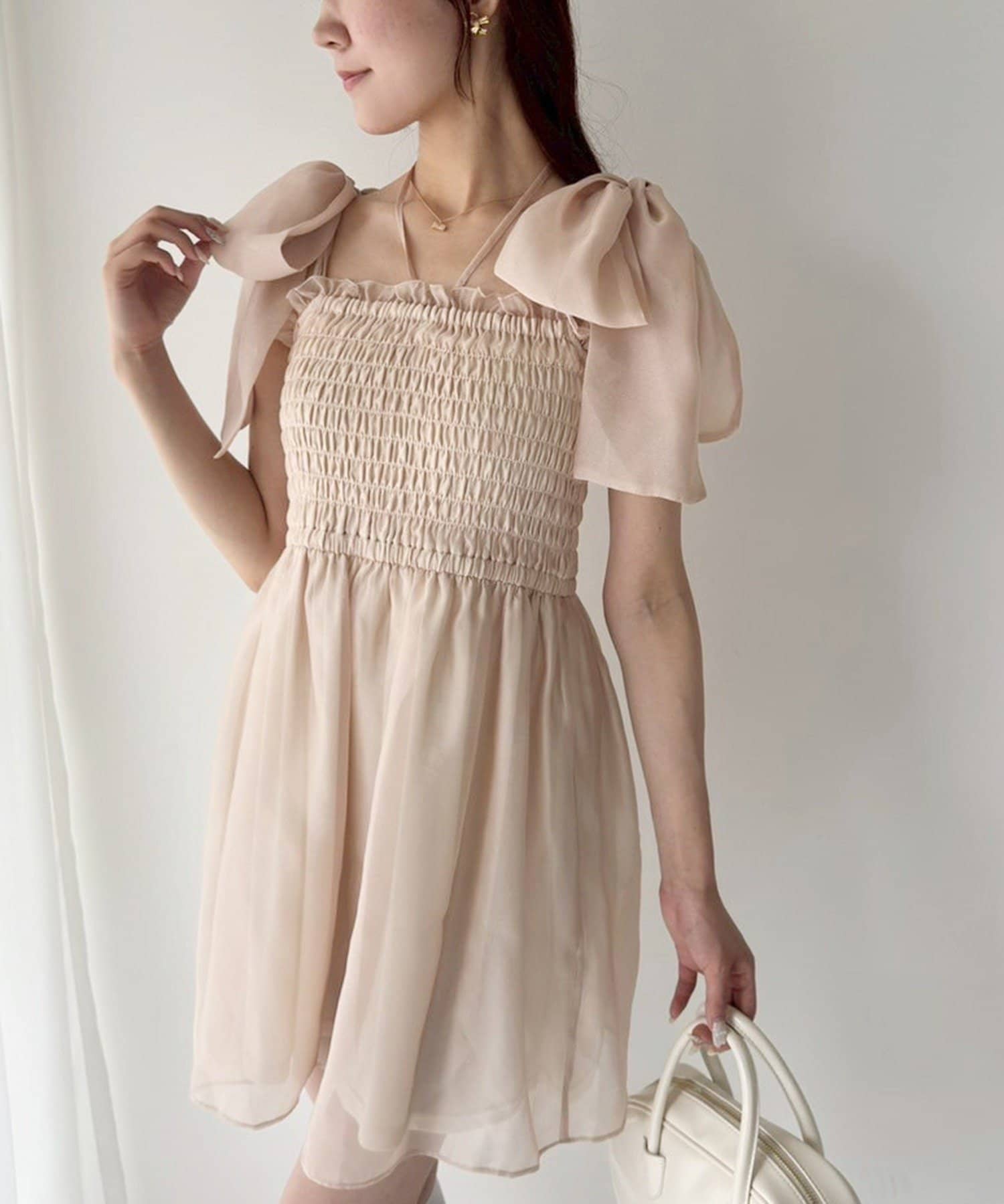 肩のリボンは取り外し可能なのでチューブトップのようにも着用ができます。