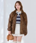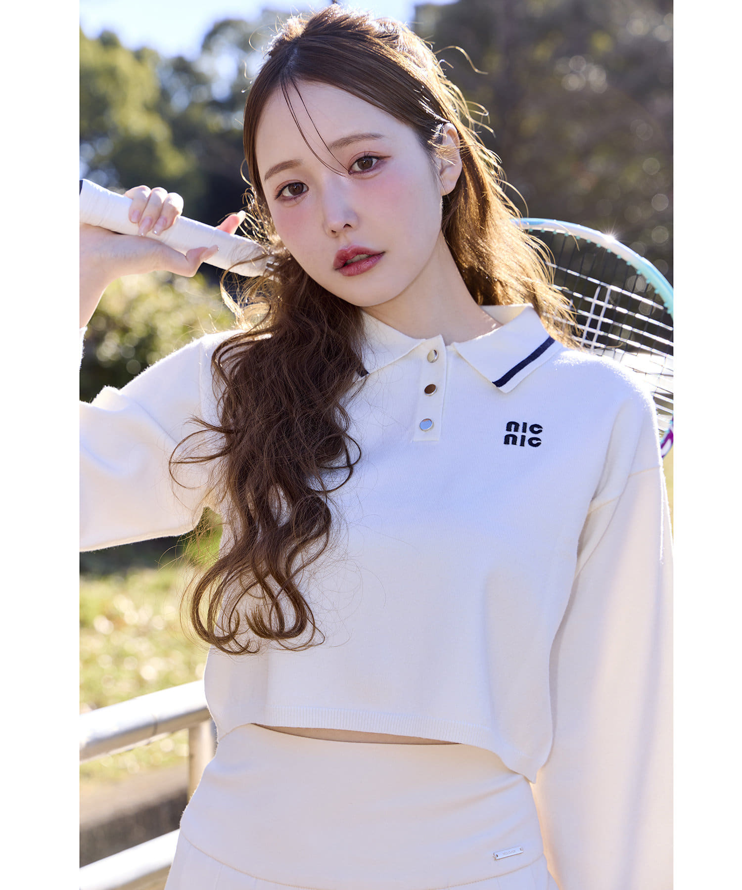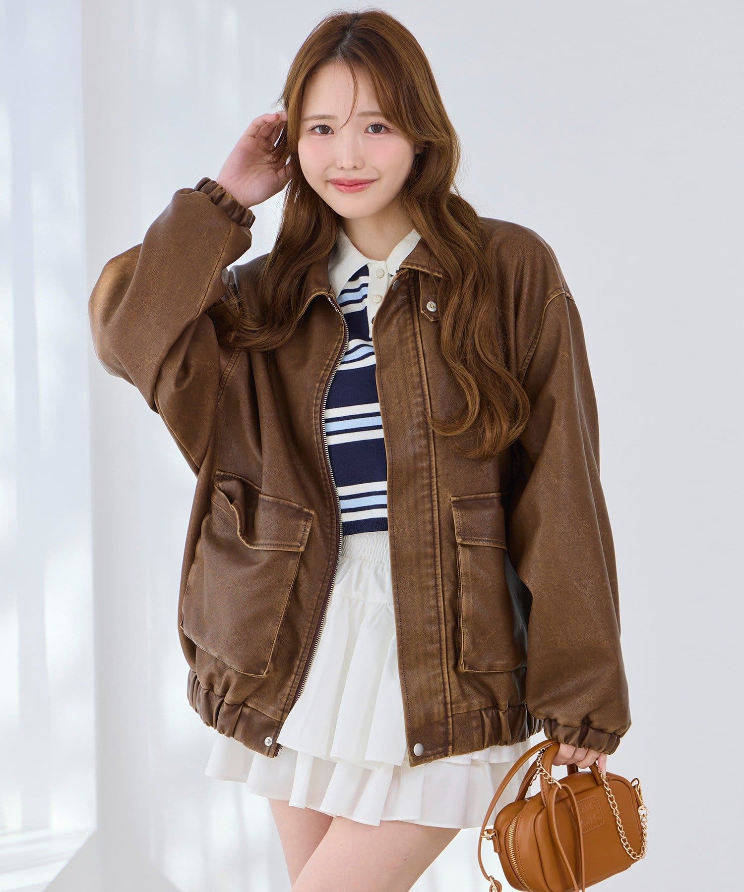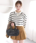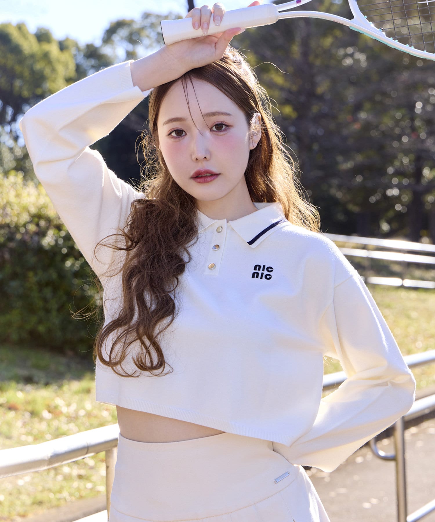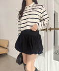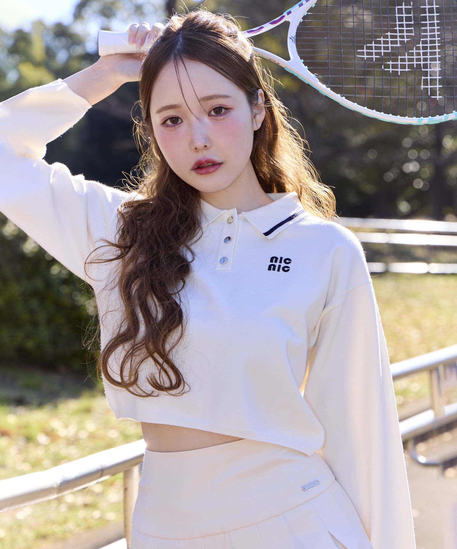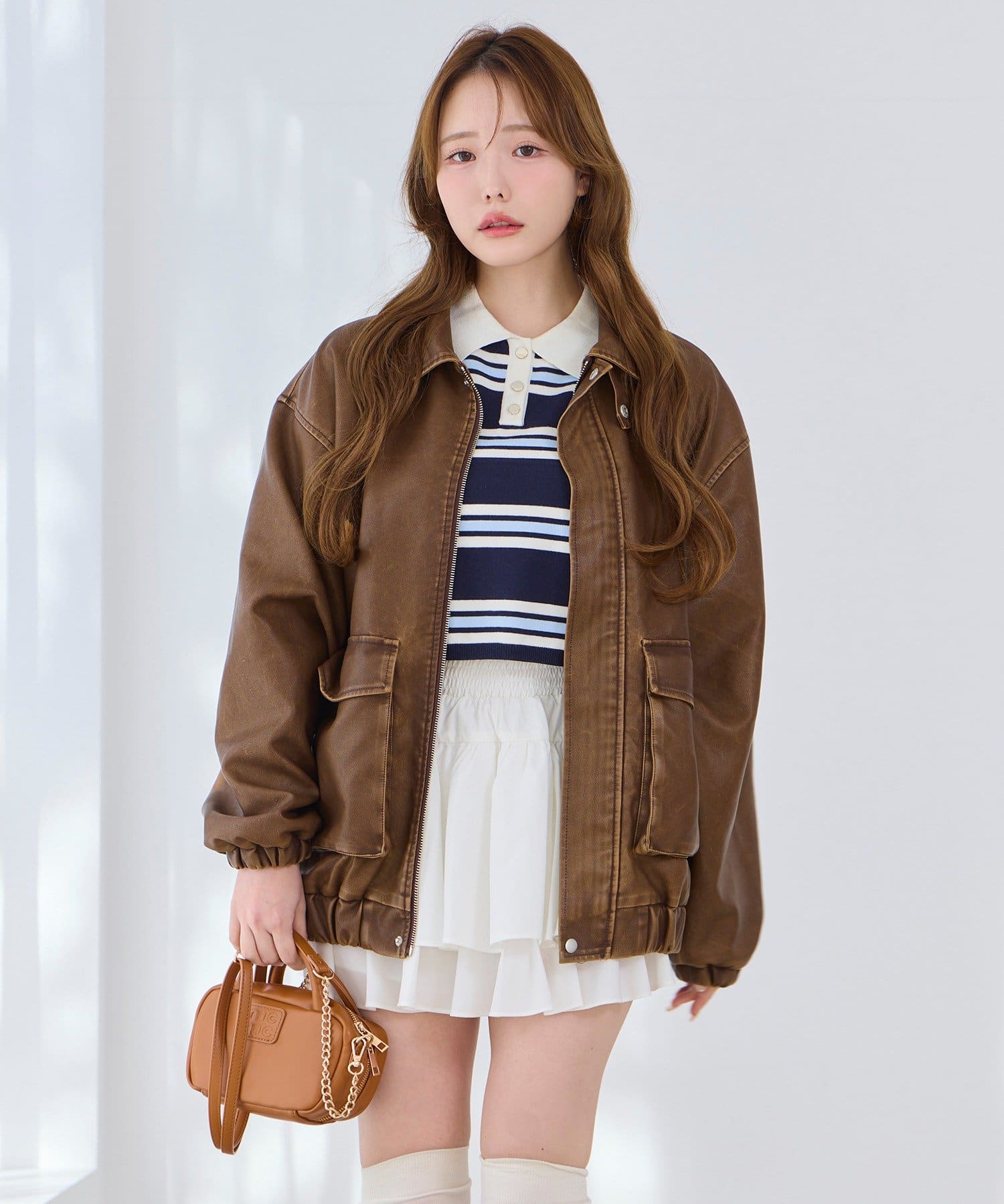 プリーツスカートなどのミニボトムでの合わせがオススメ。