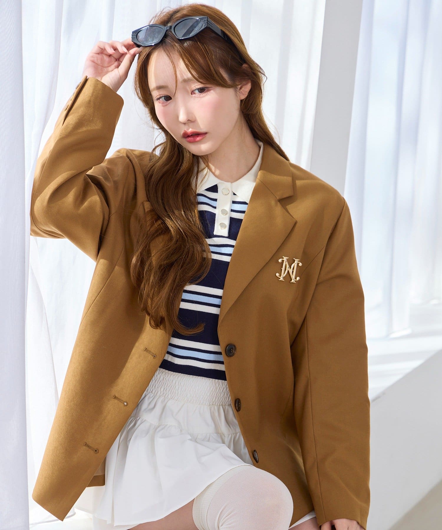 胸元には、イニシャル刺しゅうを施しアクセントに。