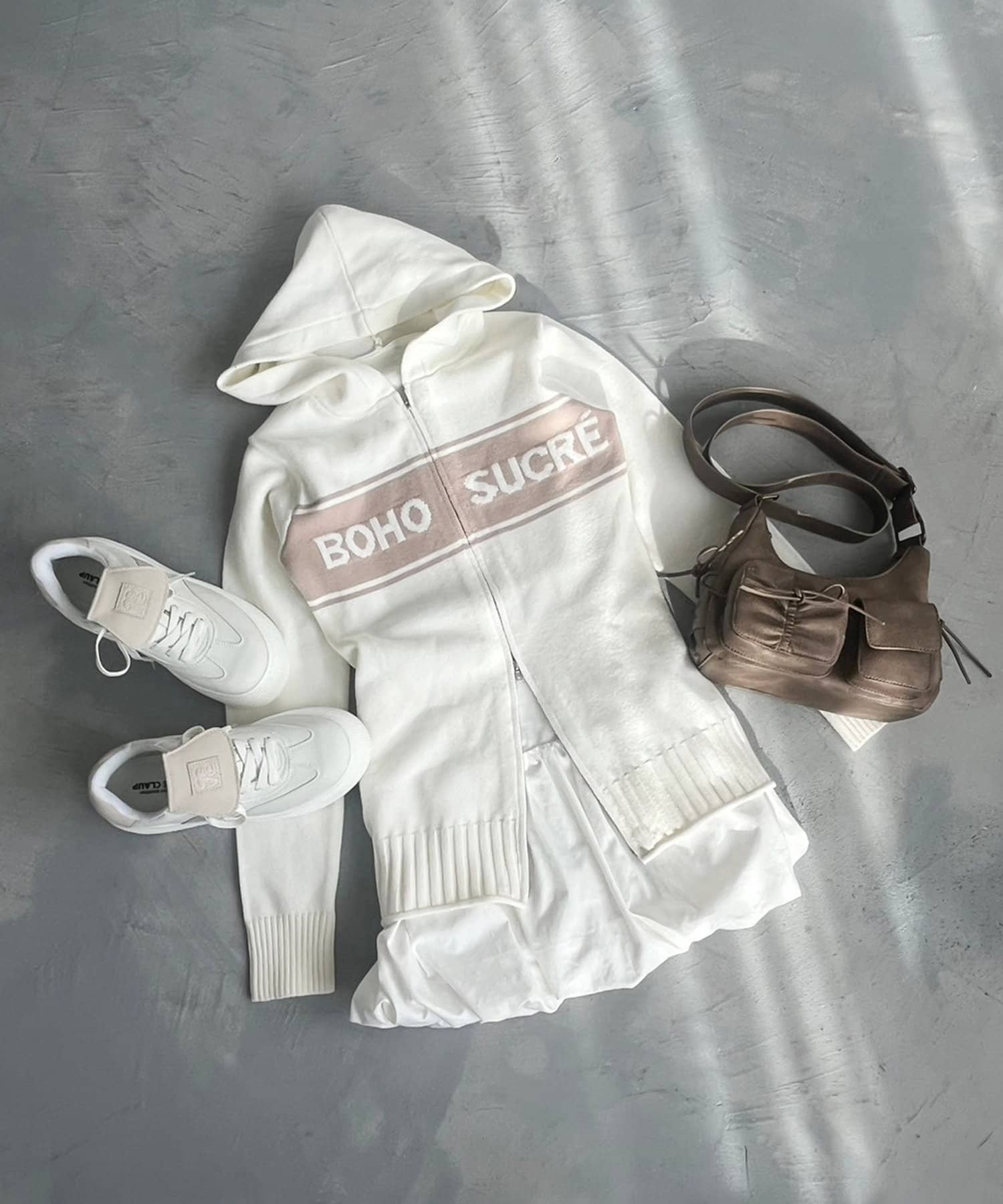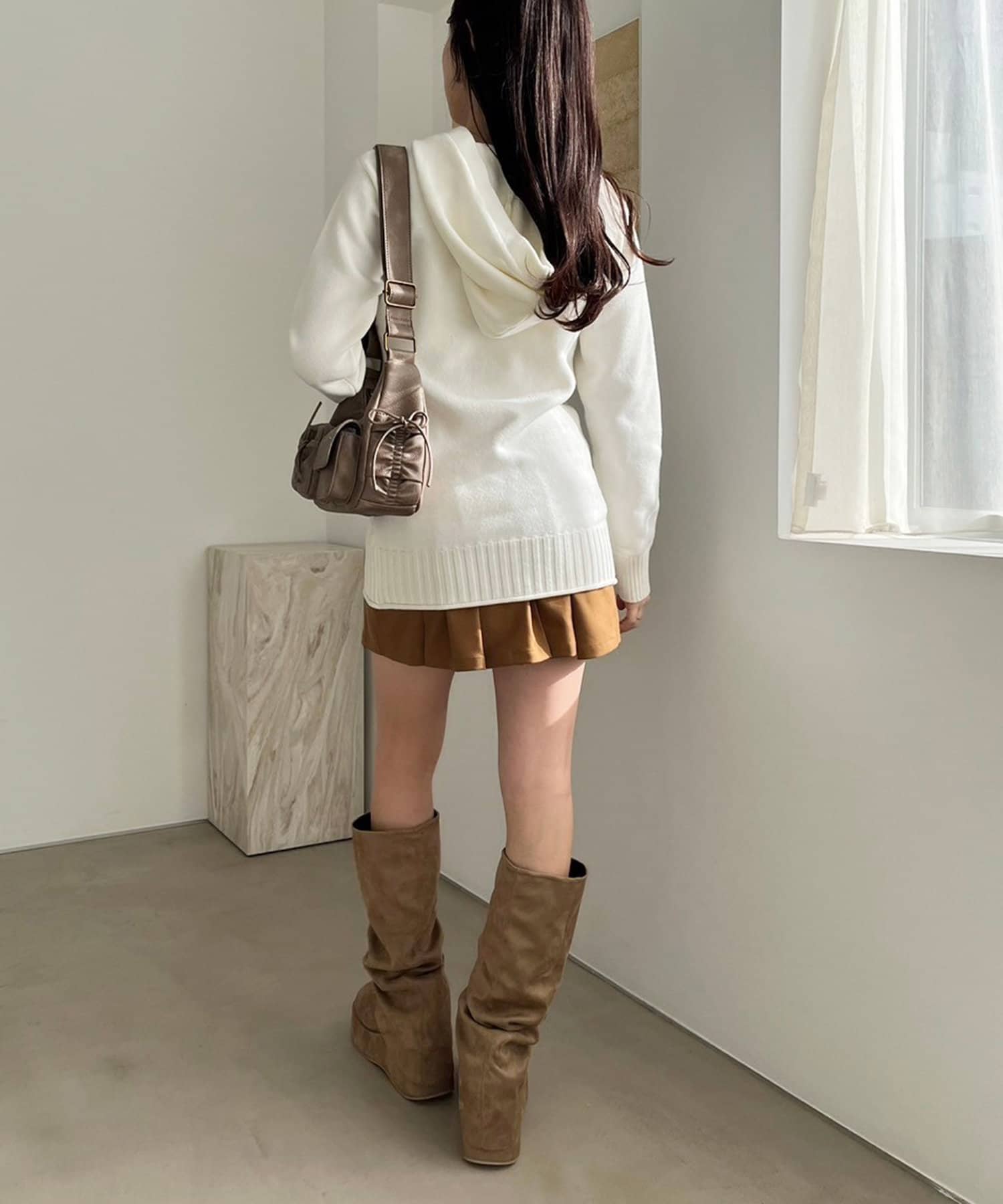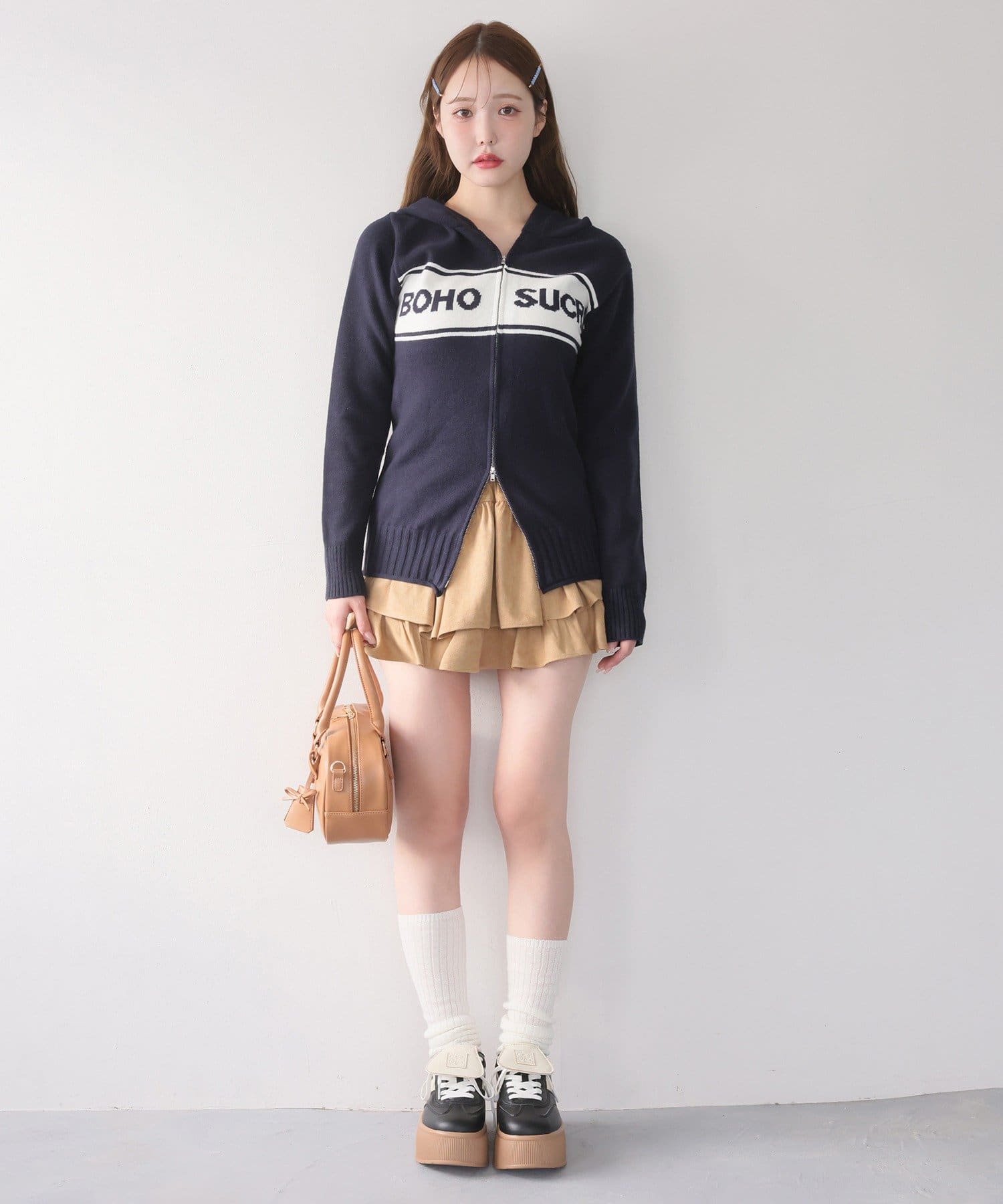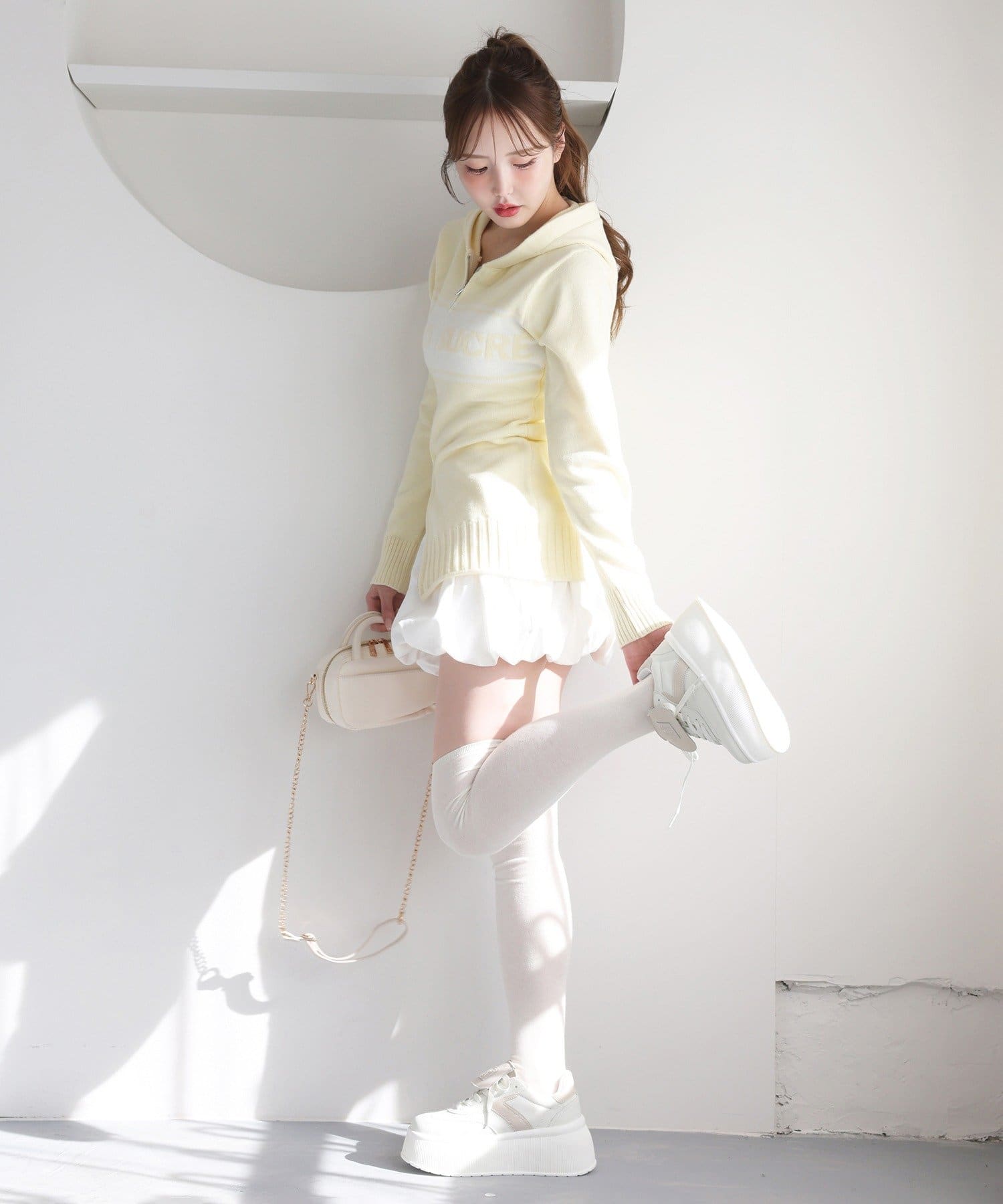 ミニ丈のボトムスと合わせると、韓国風カジュアルコーデにも◎