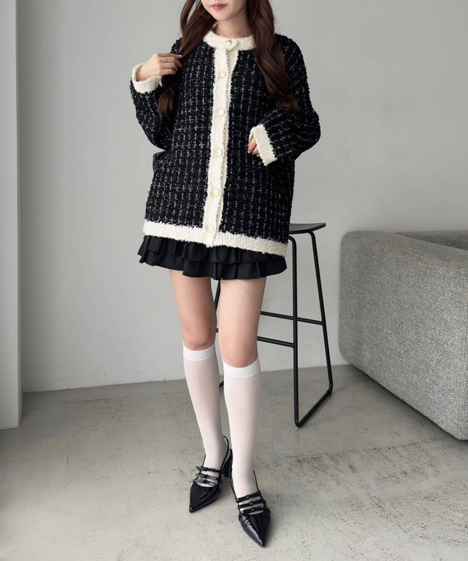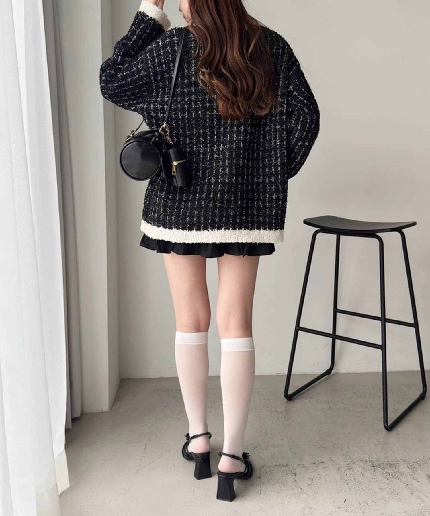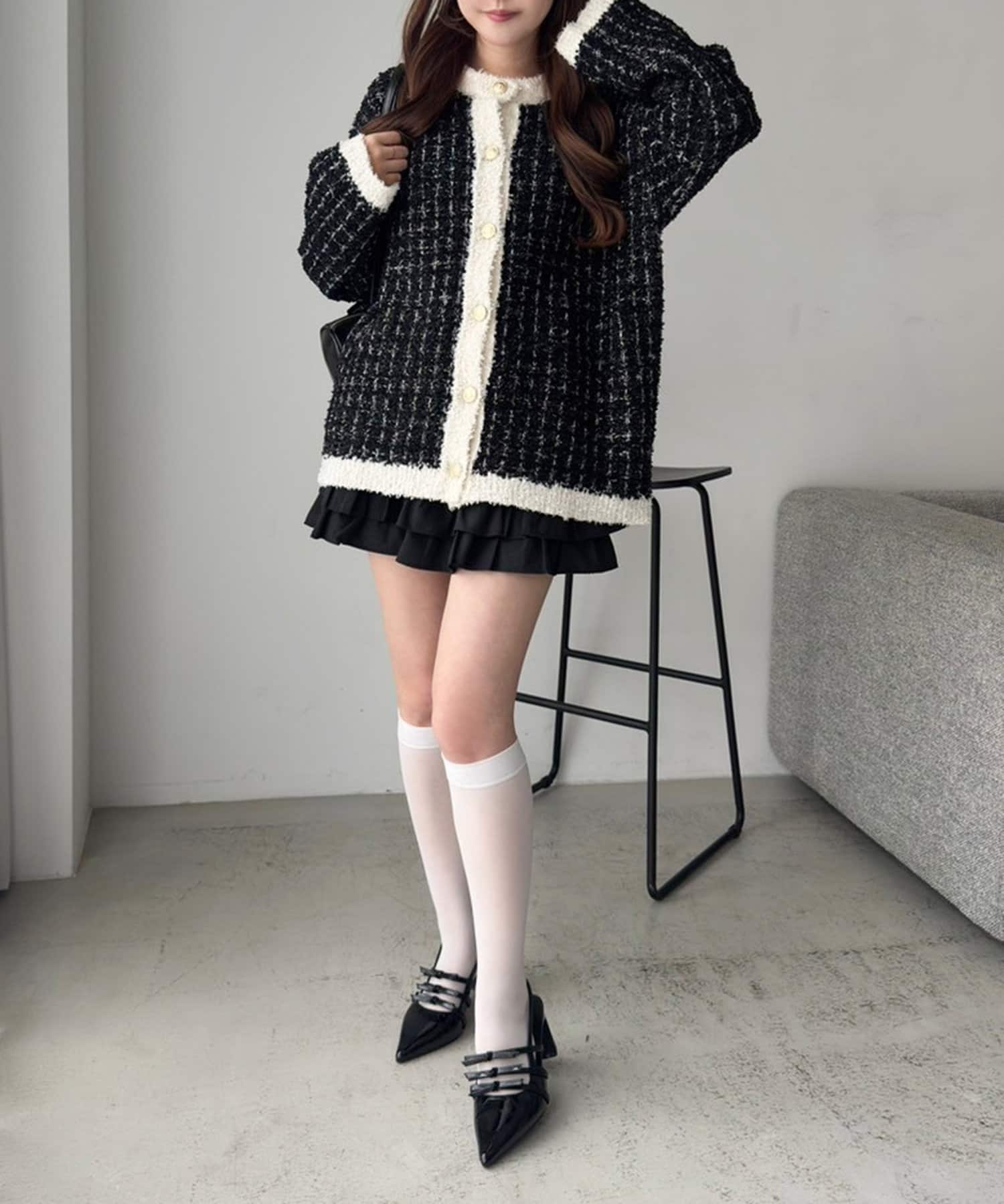 フェミニンな雰囲気がお好きな方はミニスカートとの合わせがオススメ。