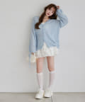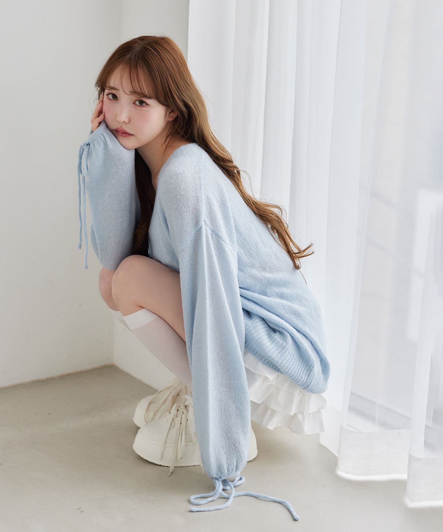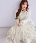 シアー感がかわいい透かし編みのニット。