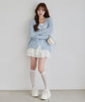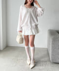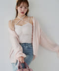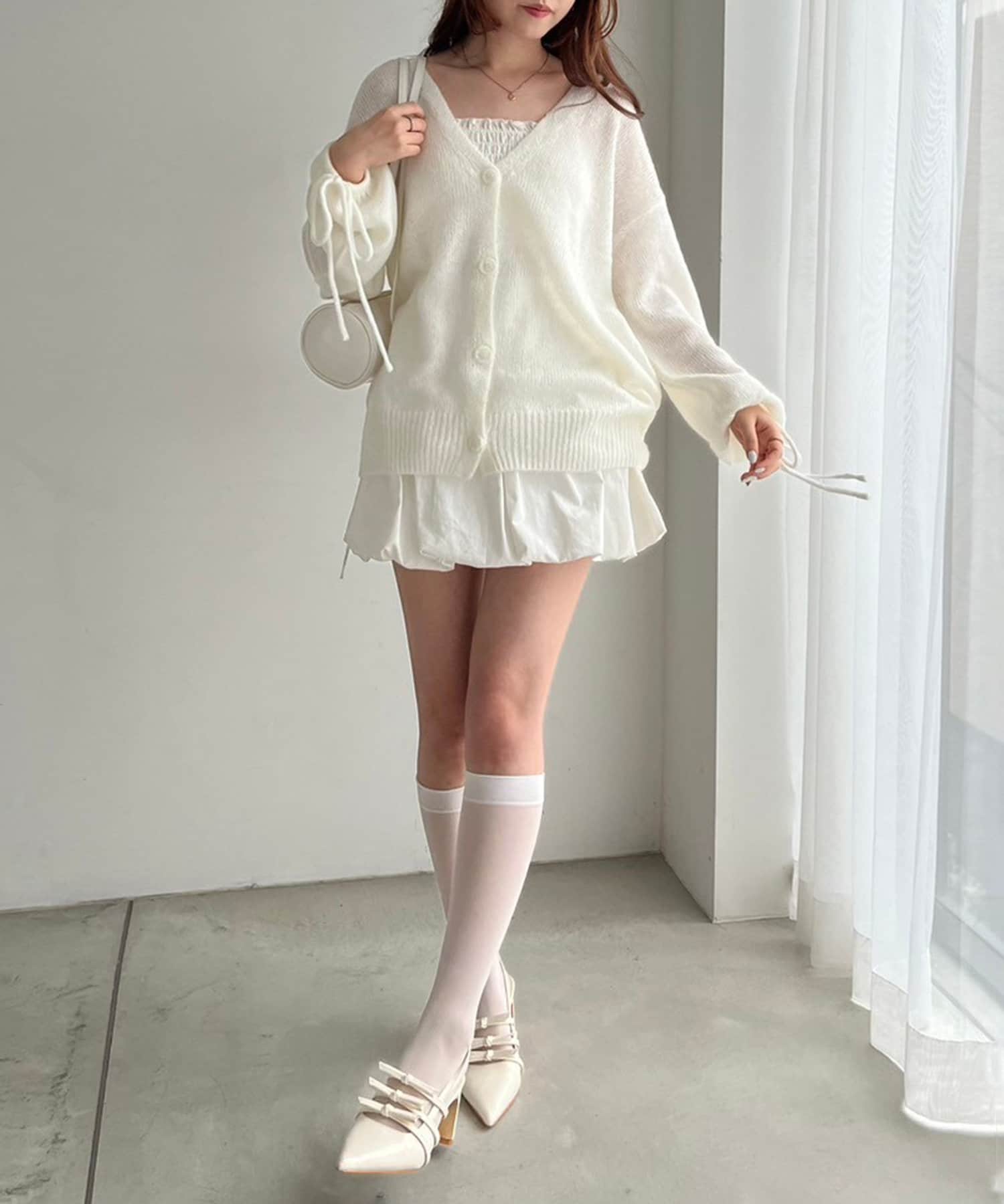 キャミソールを合わせて、ミニボトムで着こなすコーデがオススメ。