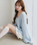 首元はV開きなのでデコルテがスッキリ見えるデザイン。