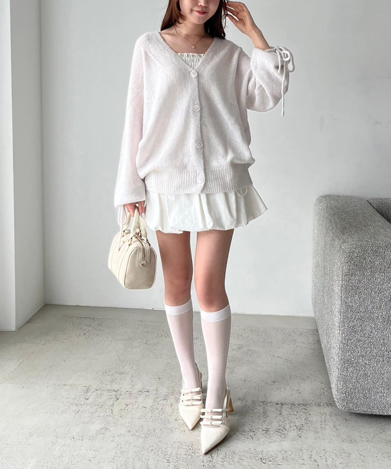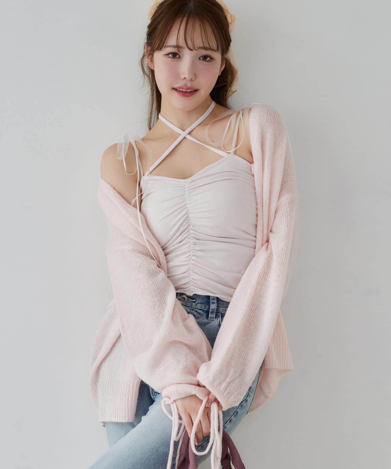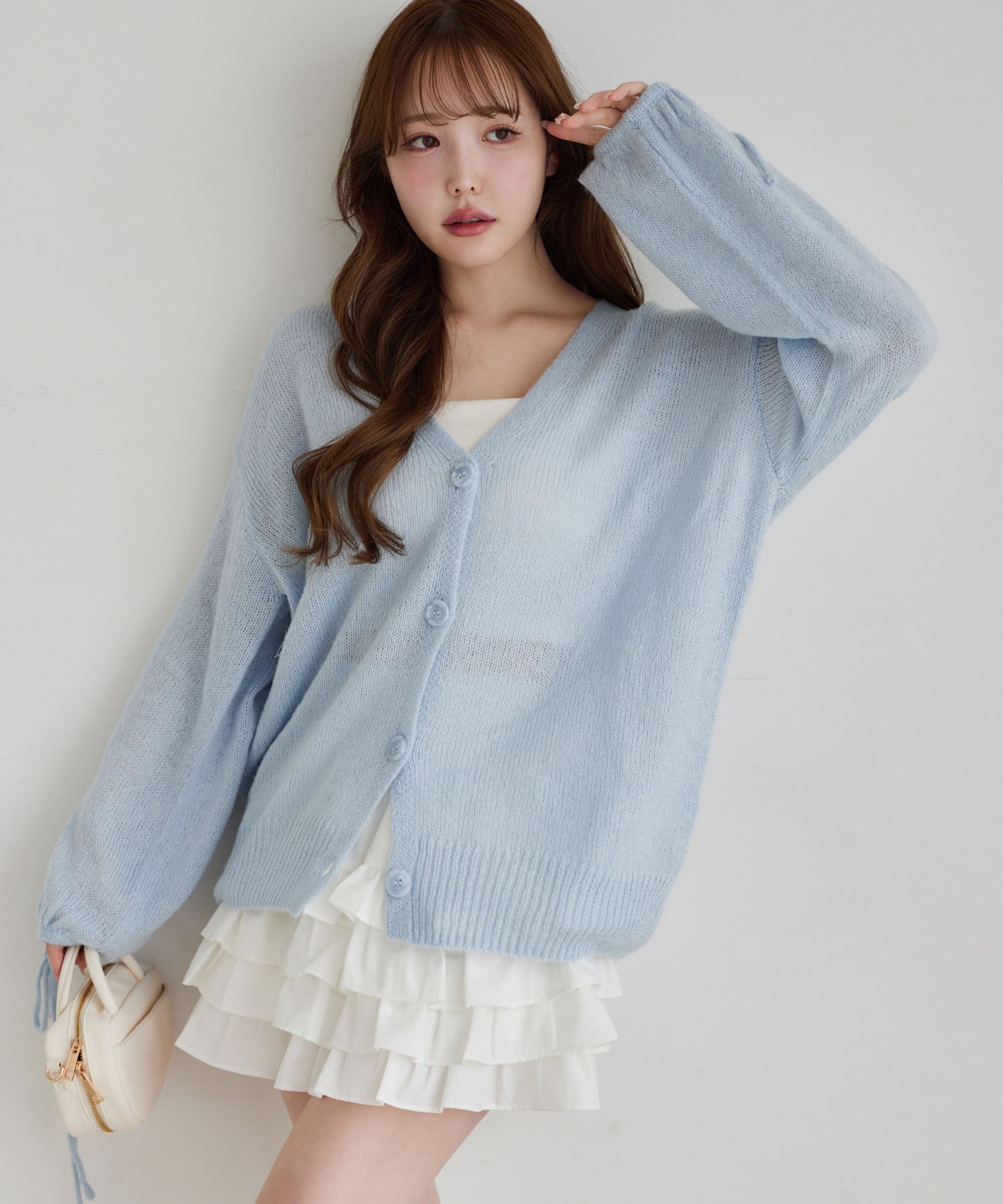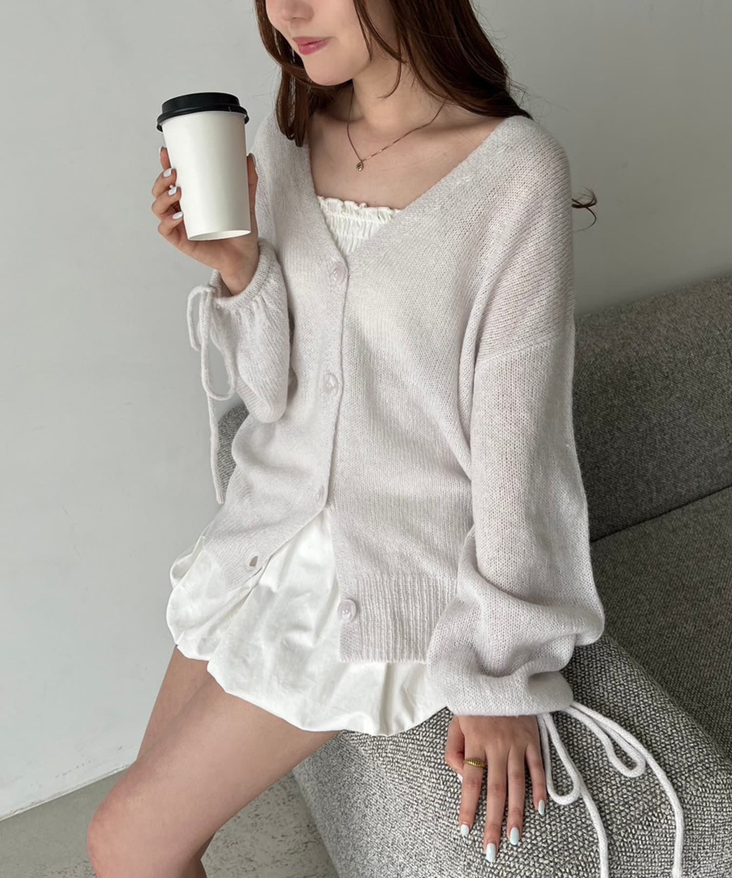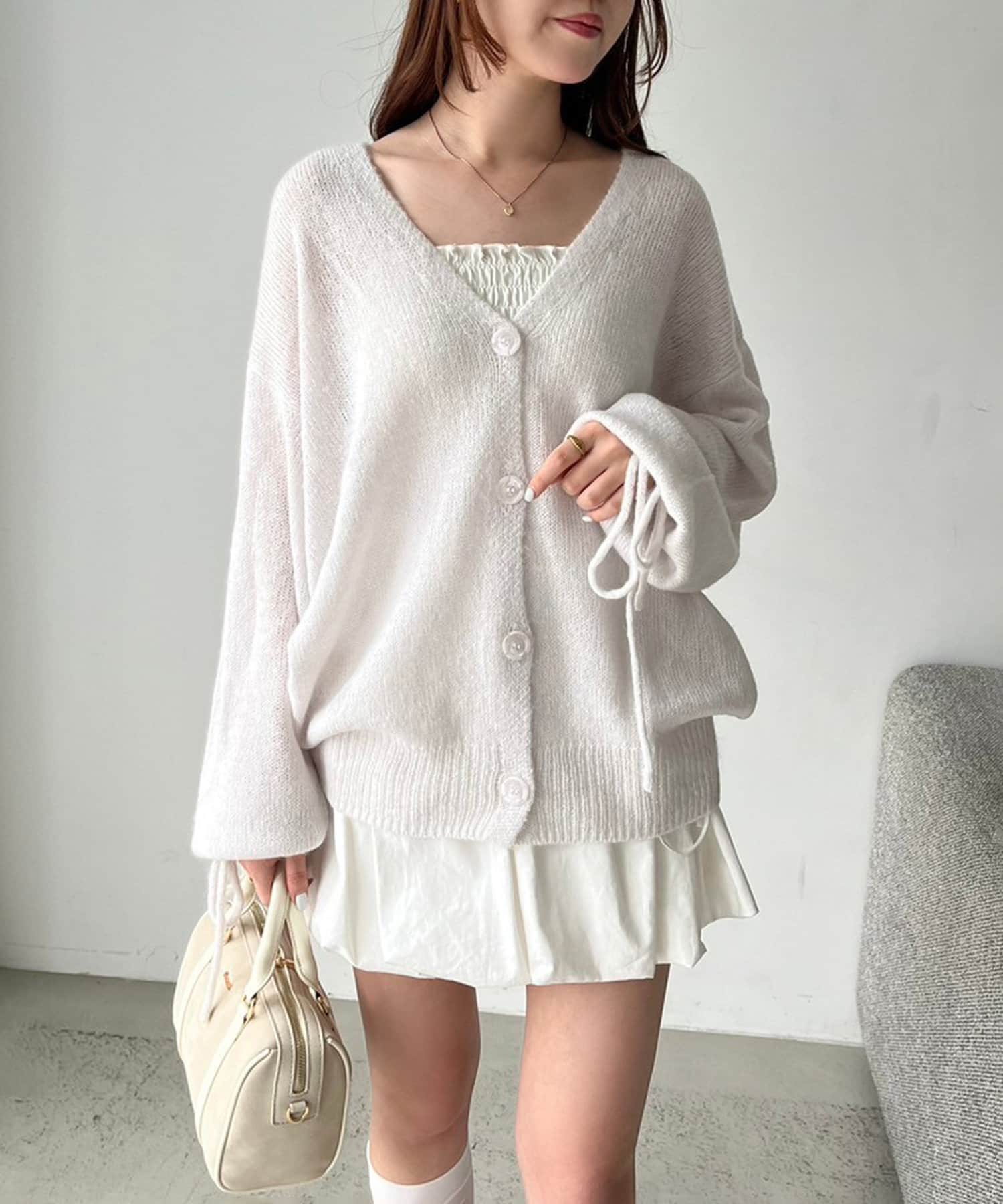 袖リボンロングカーディガン