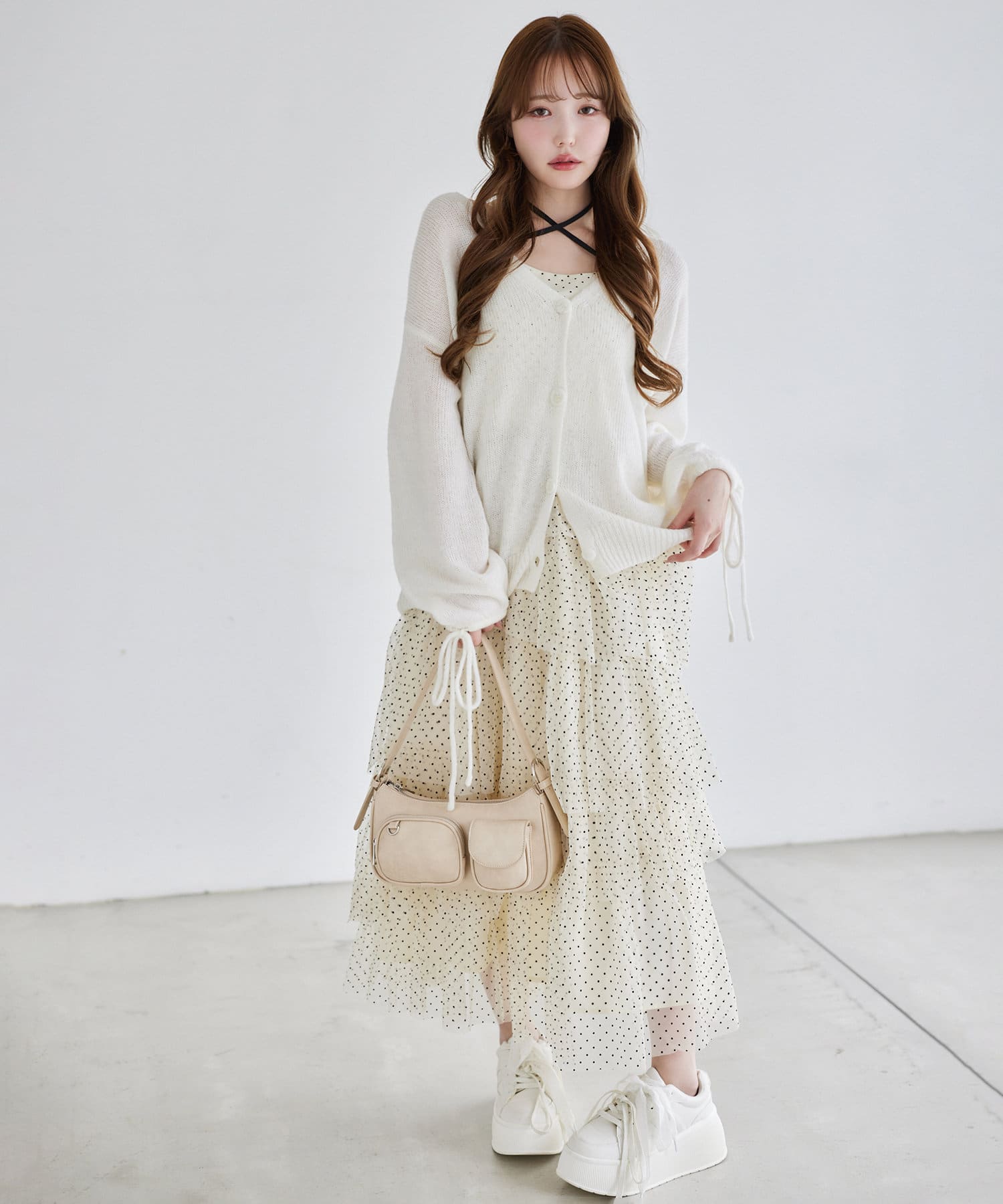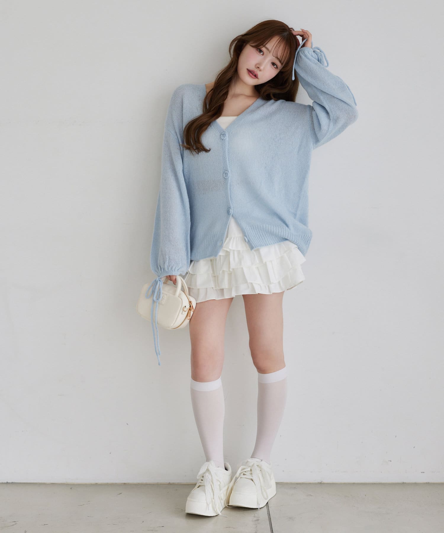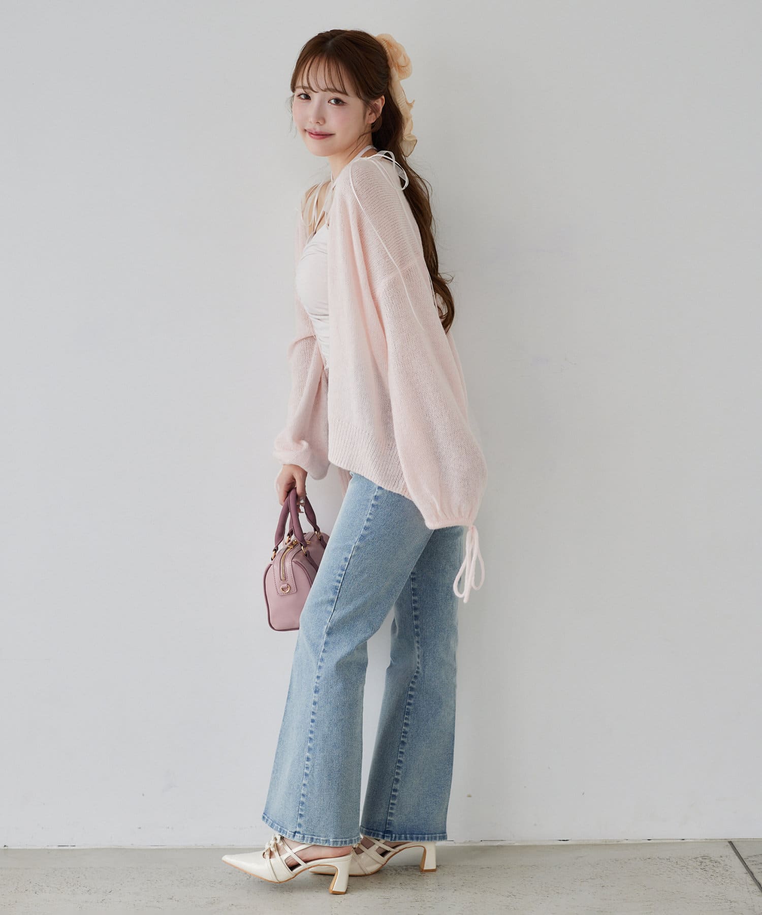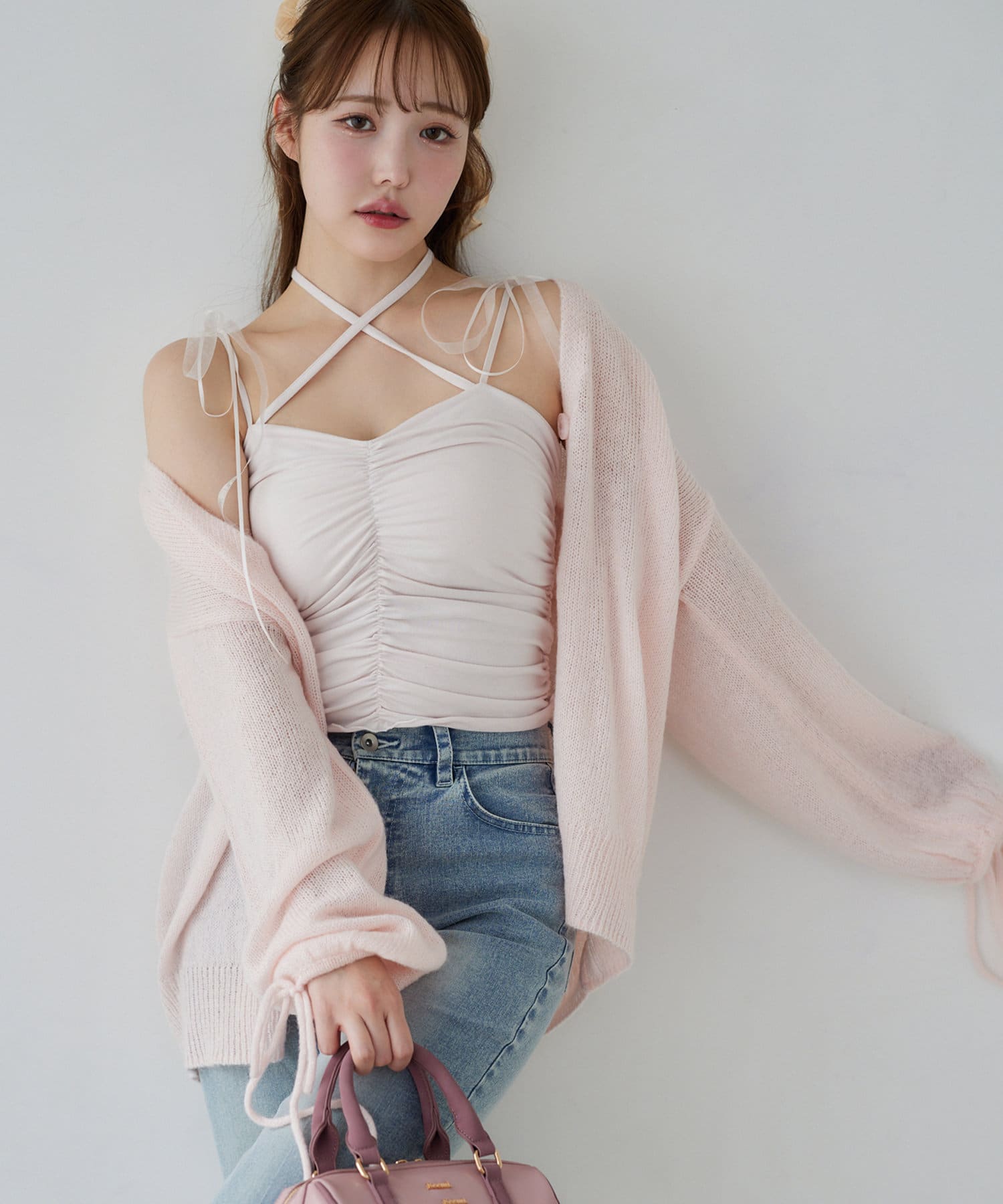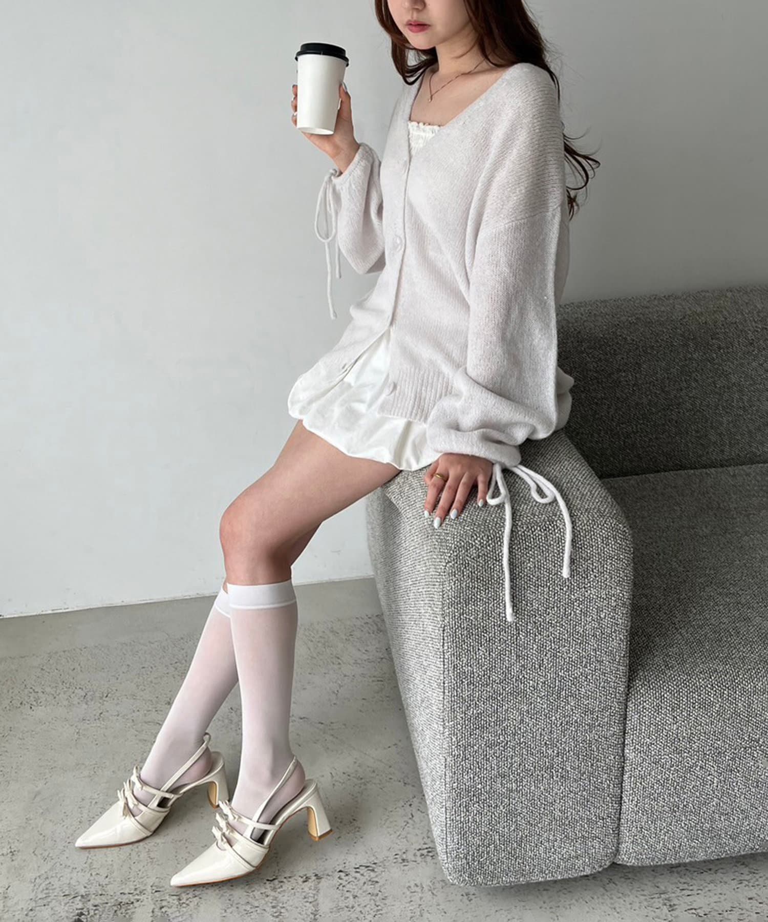 袖リボンロングカーディガン