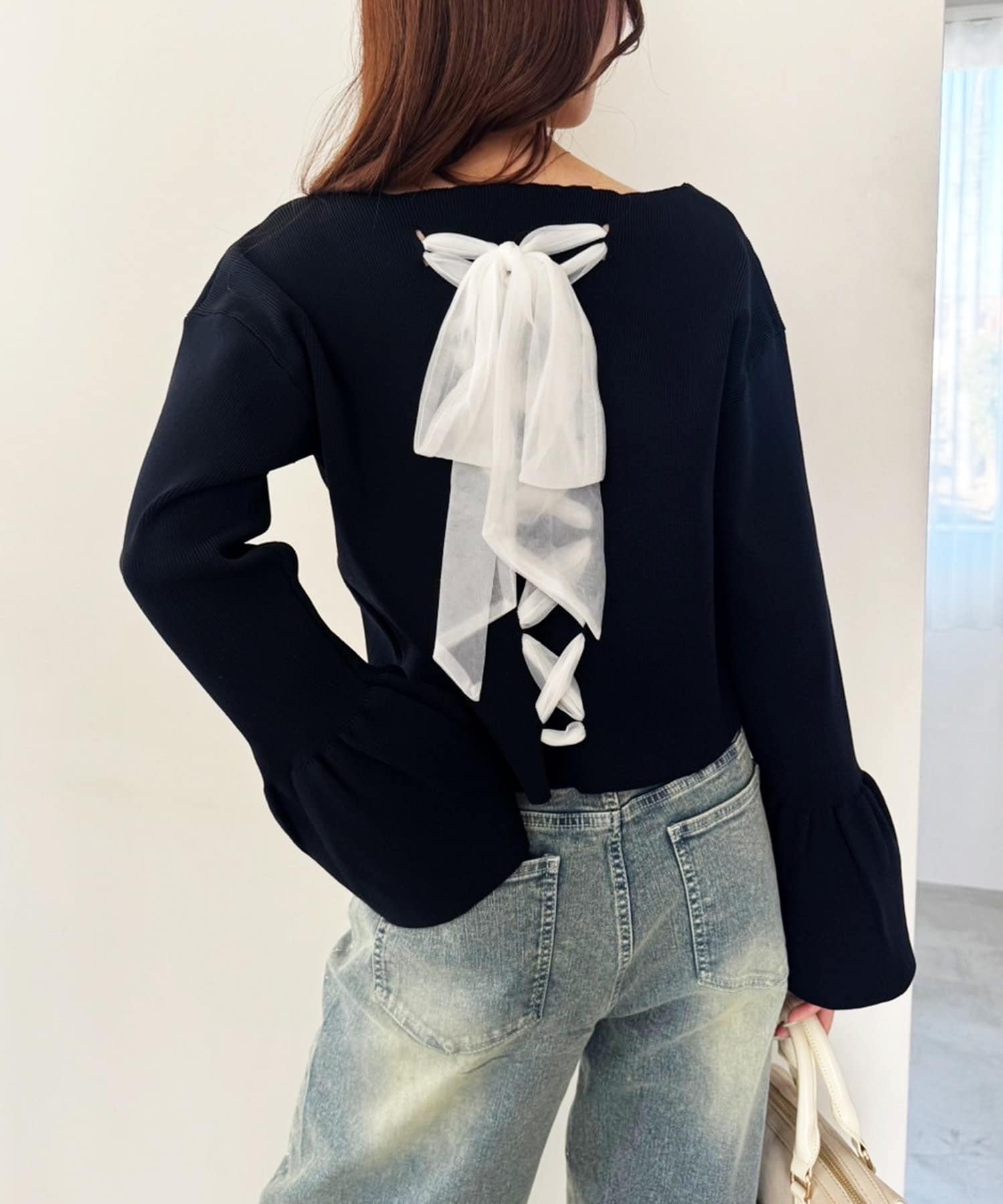 シンプルながらも、バックレースアップがアクセントになるトップスで、