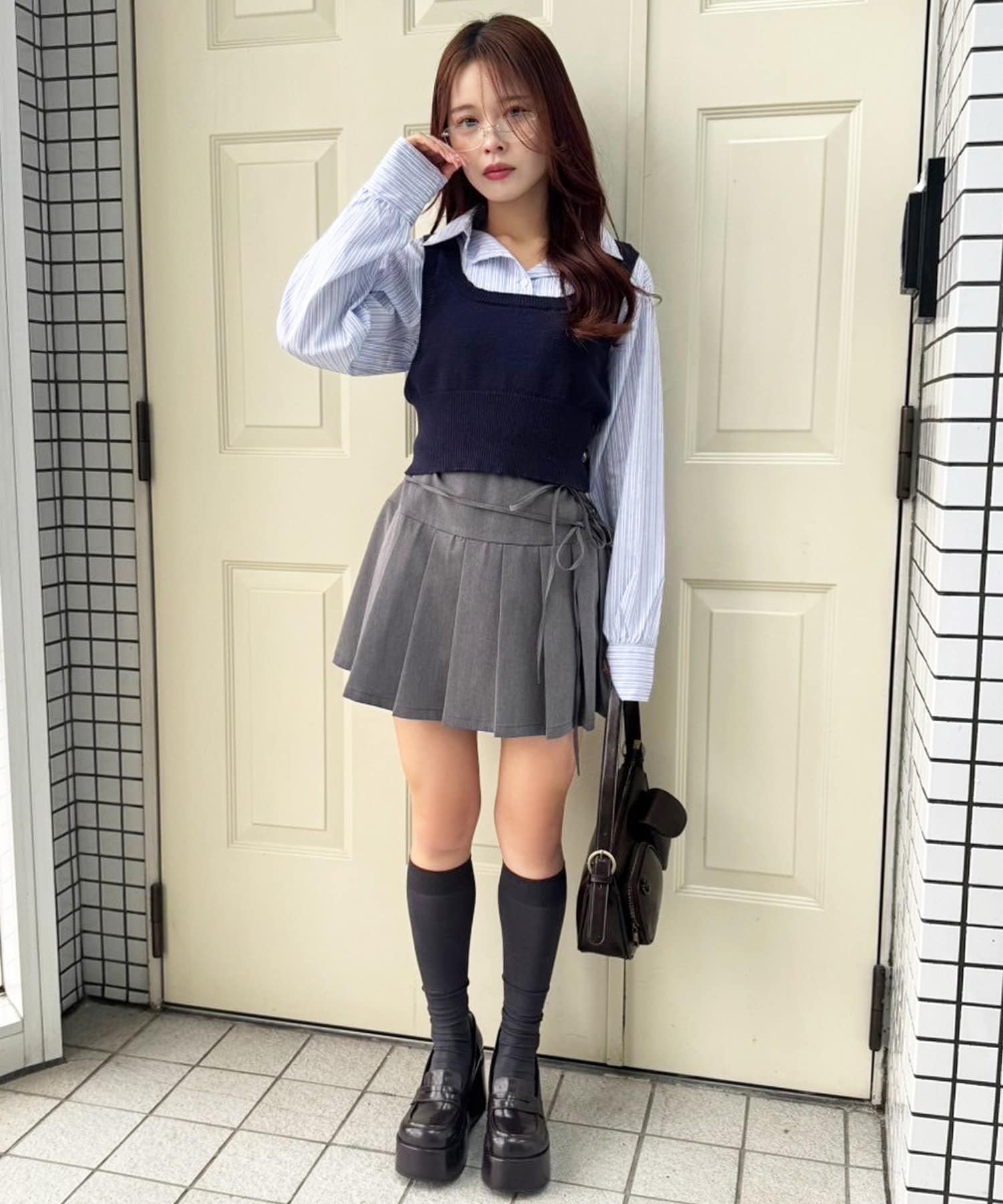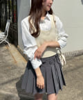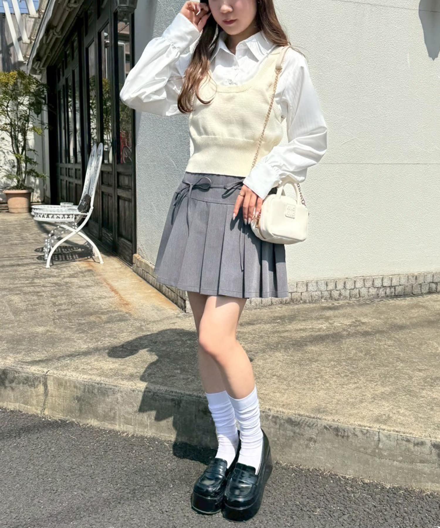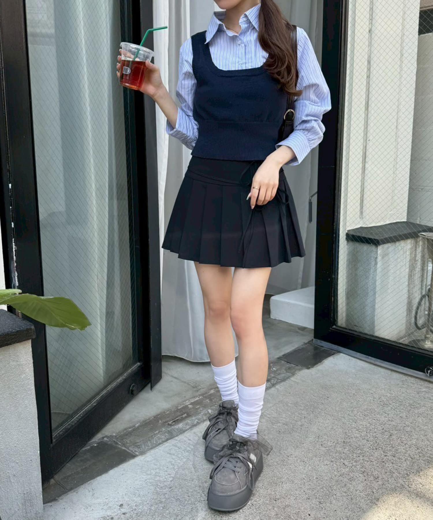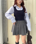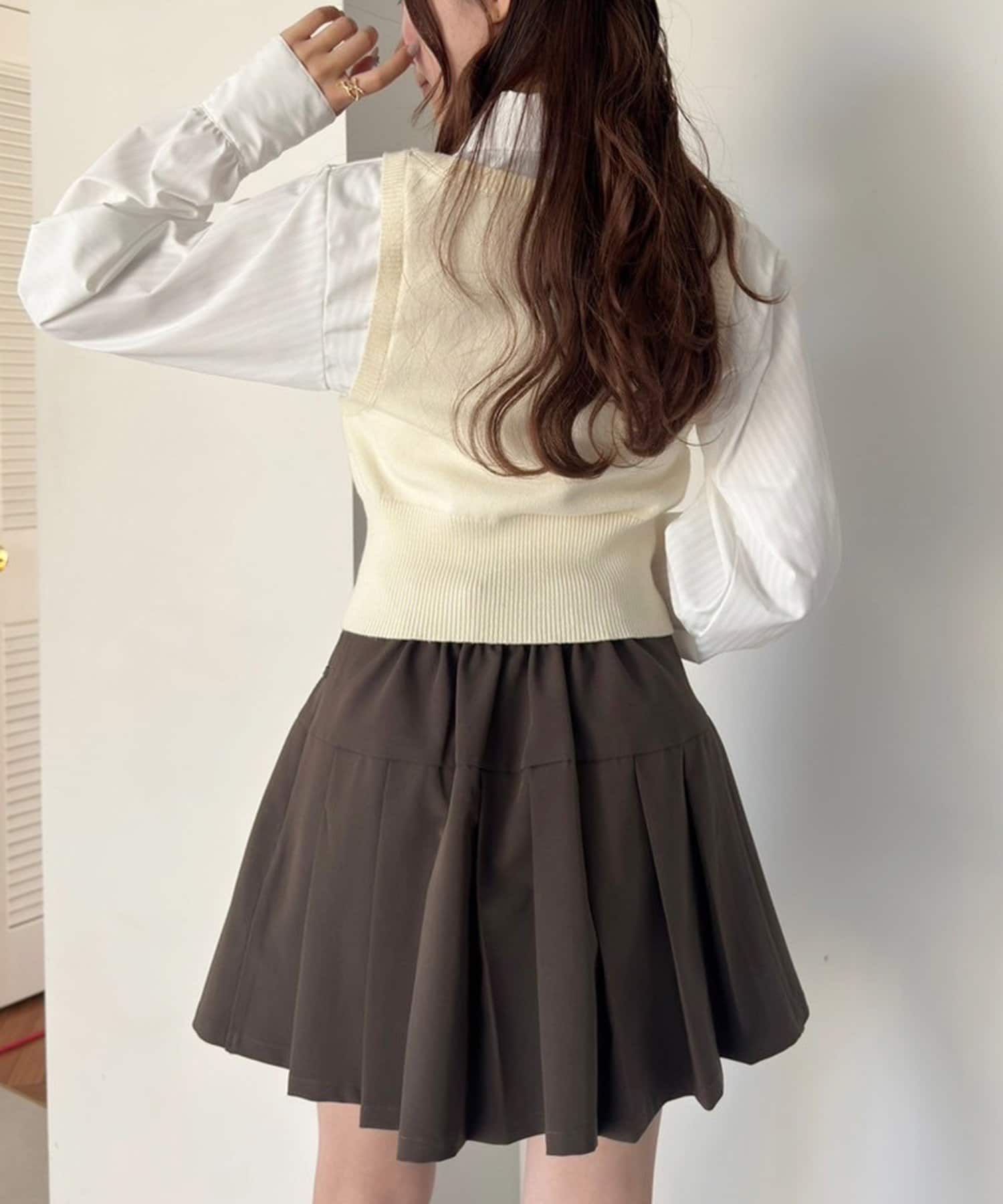 プリーツスカートやタイトスカートと組み合わせると、プレッピーファッションのような印象に。