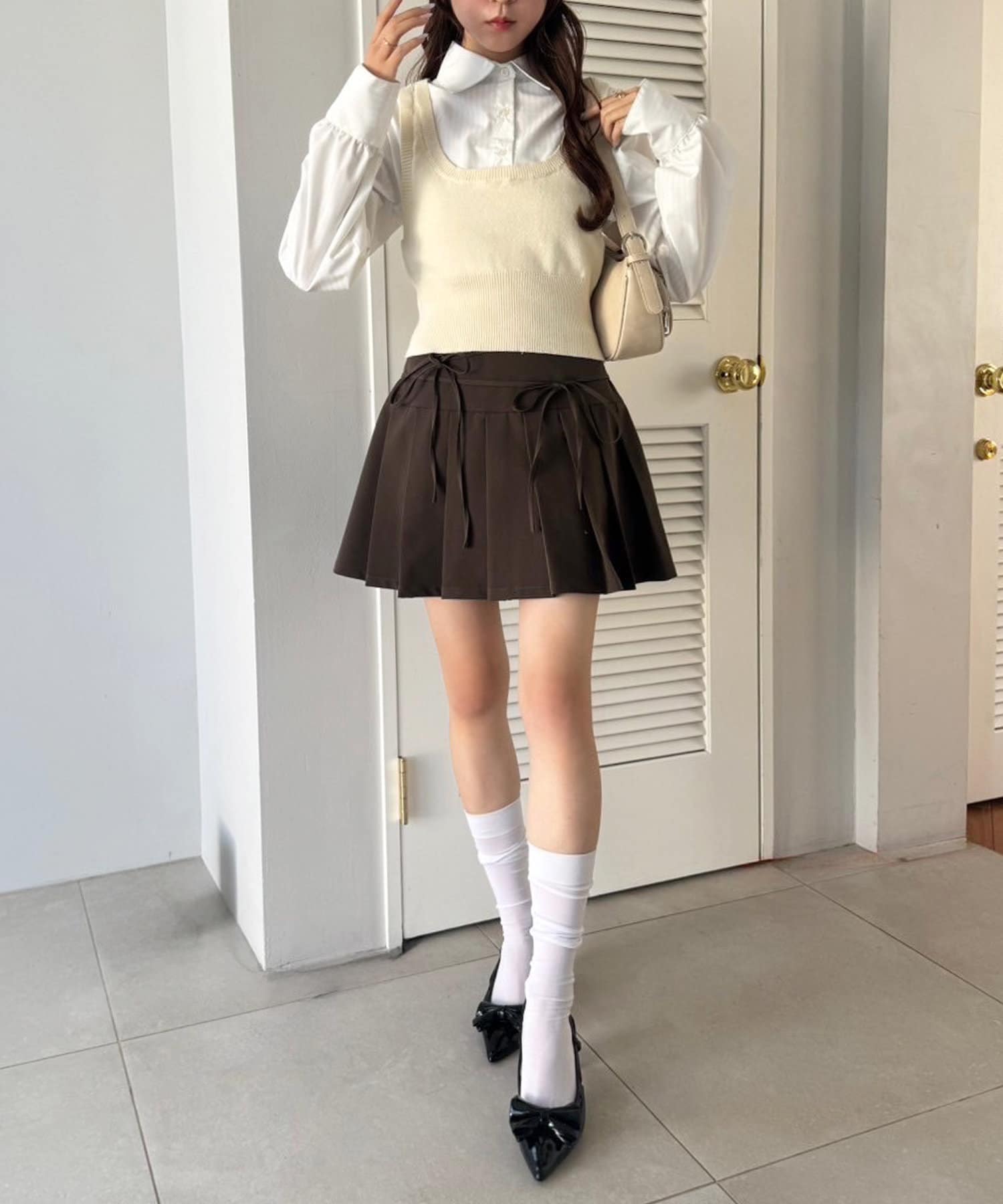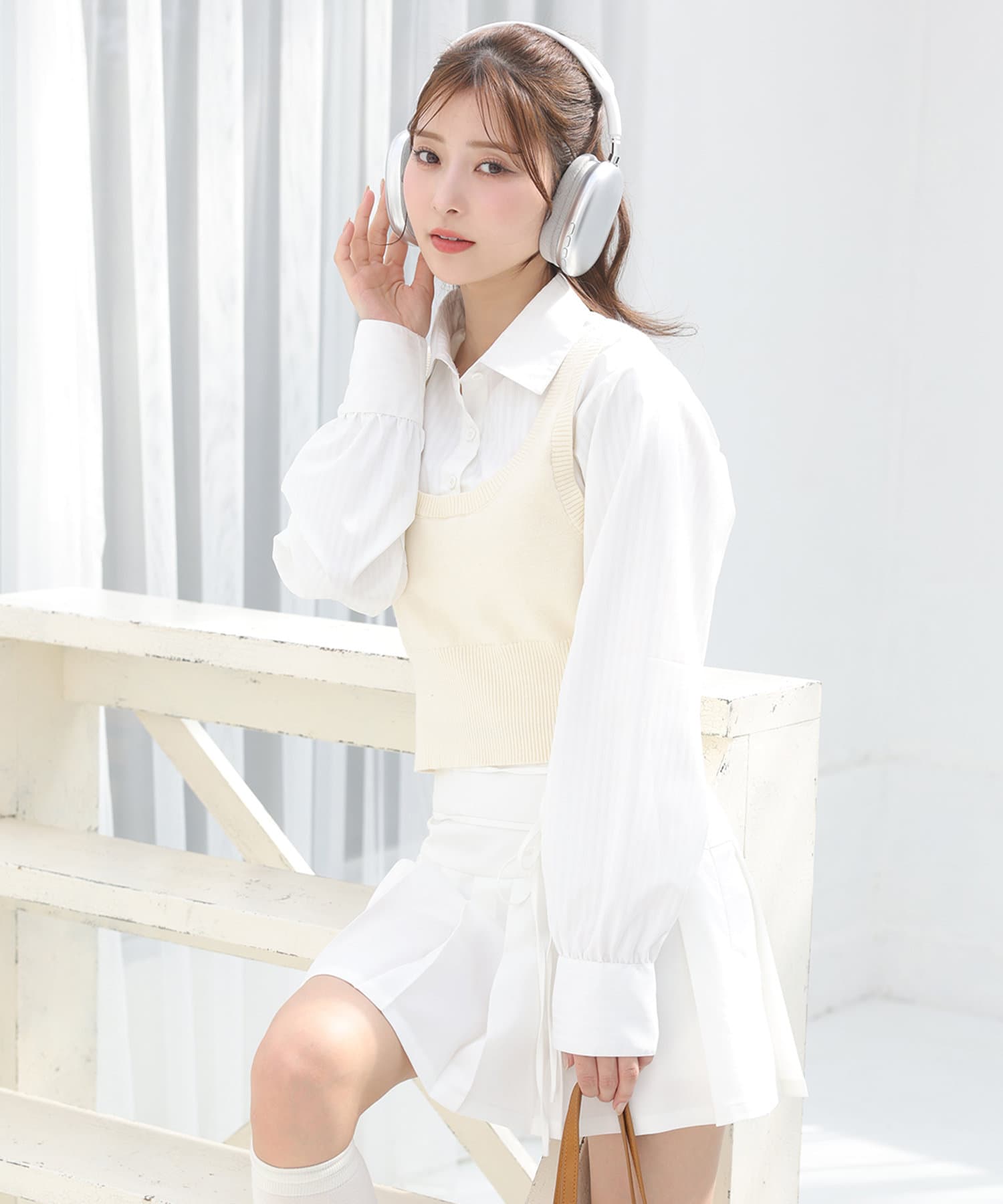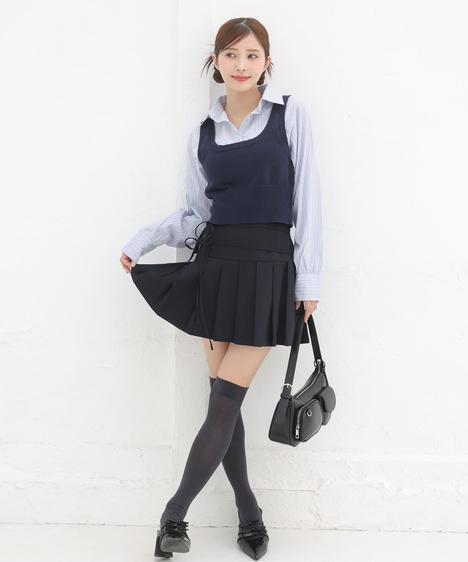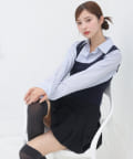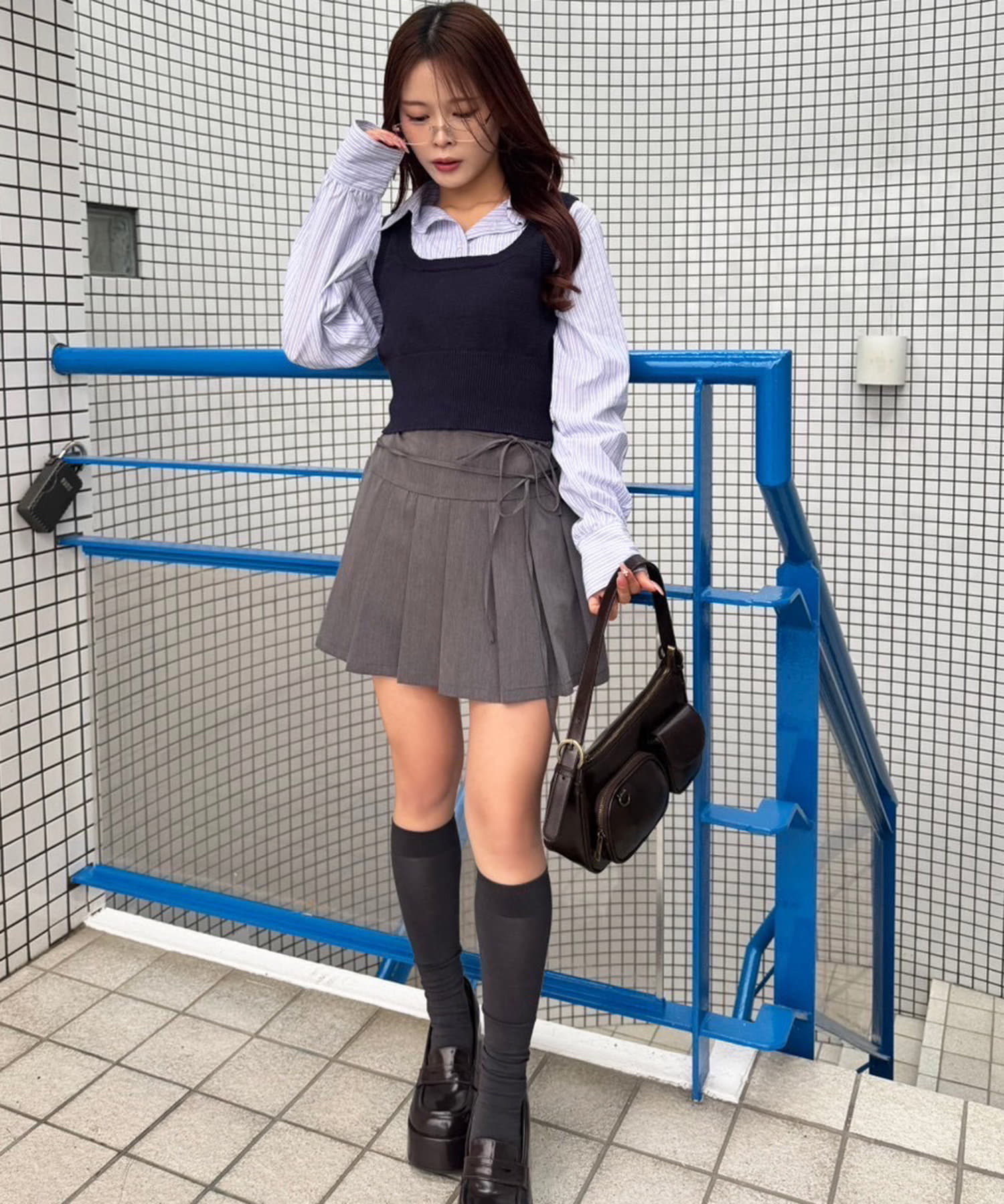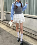 プリーツスカートやタイトスカートと組み合わせると、プレッピーファッションのような印象に。