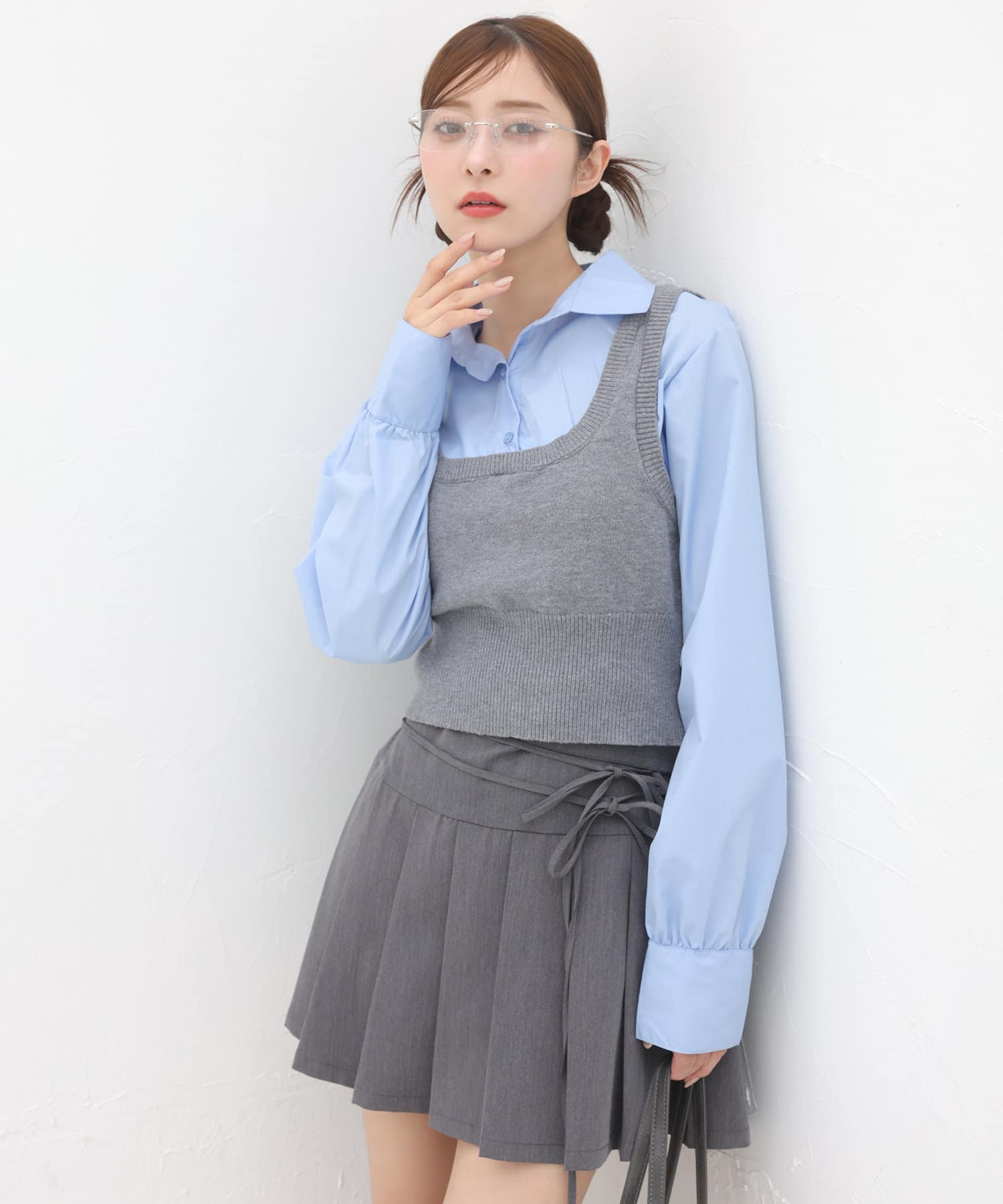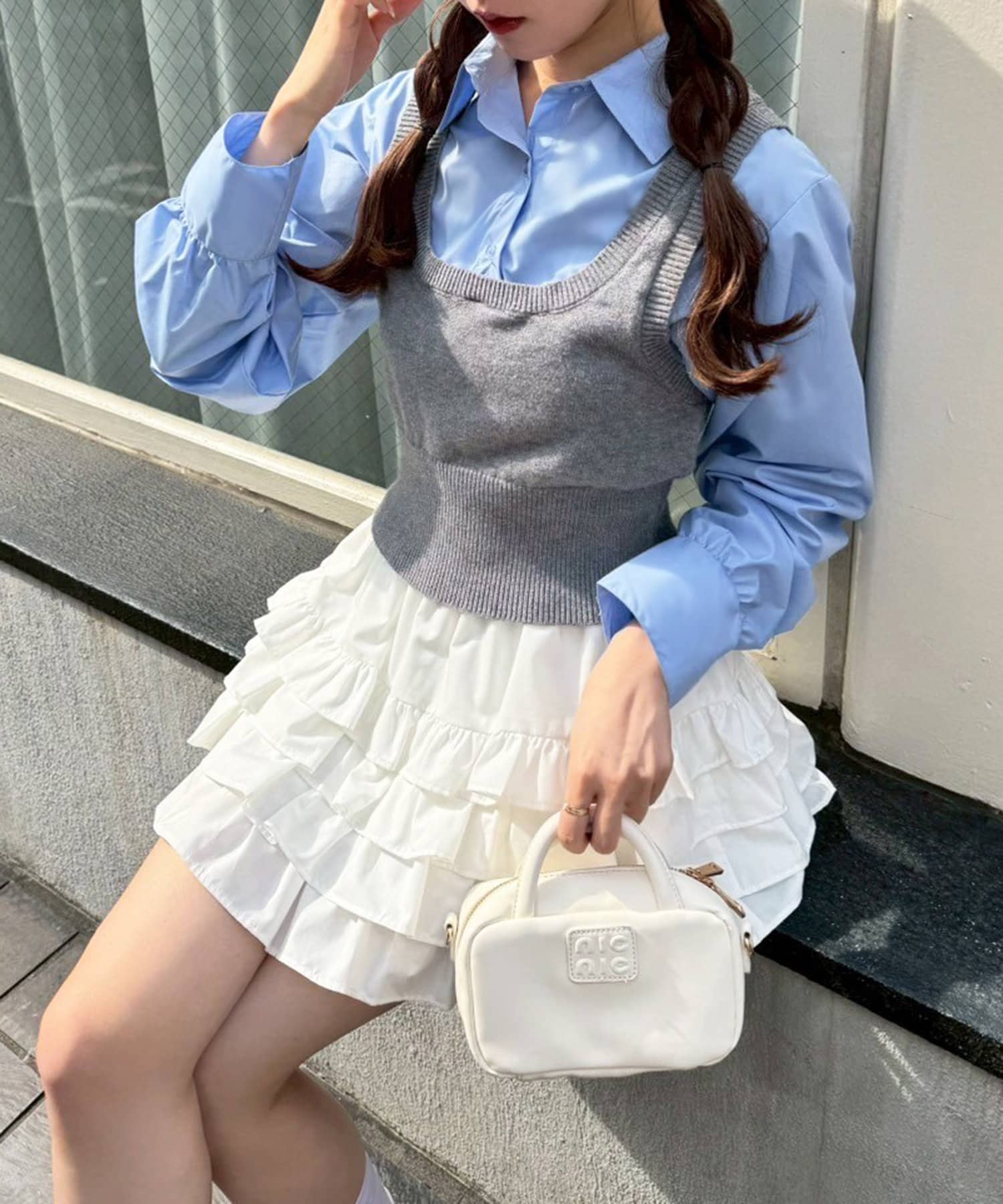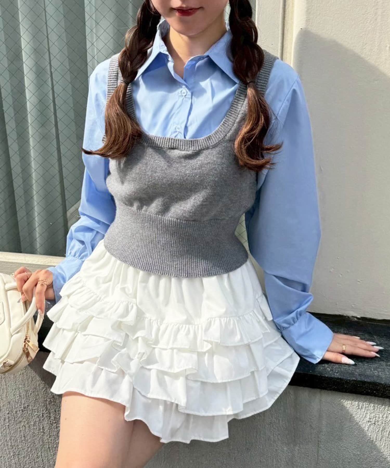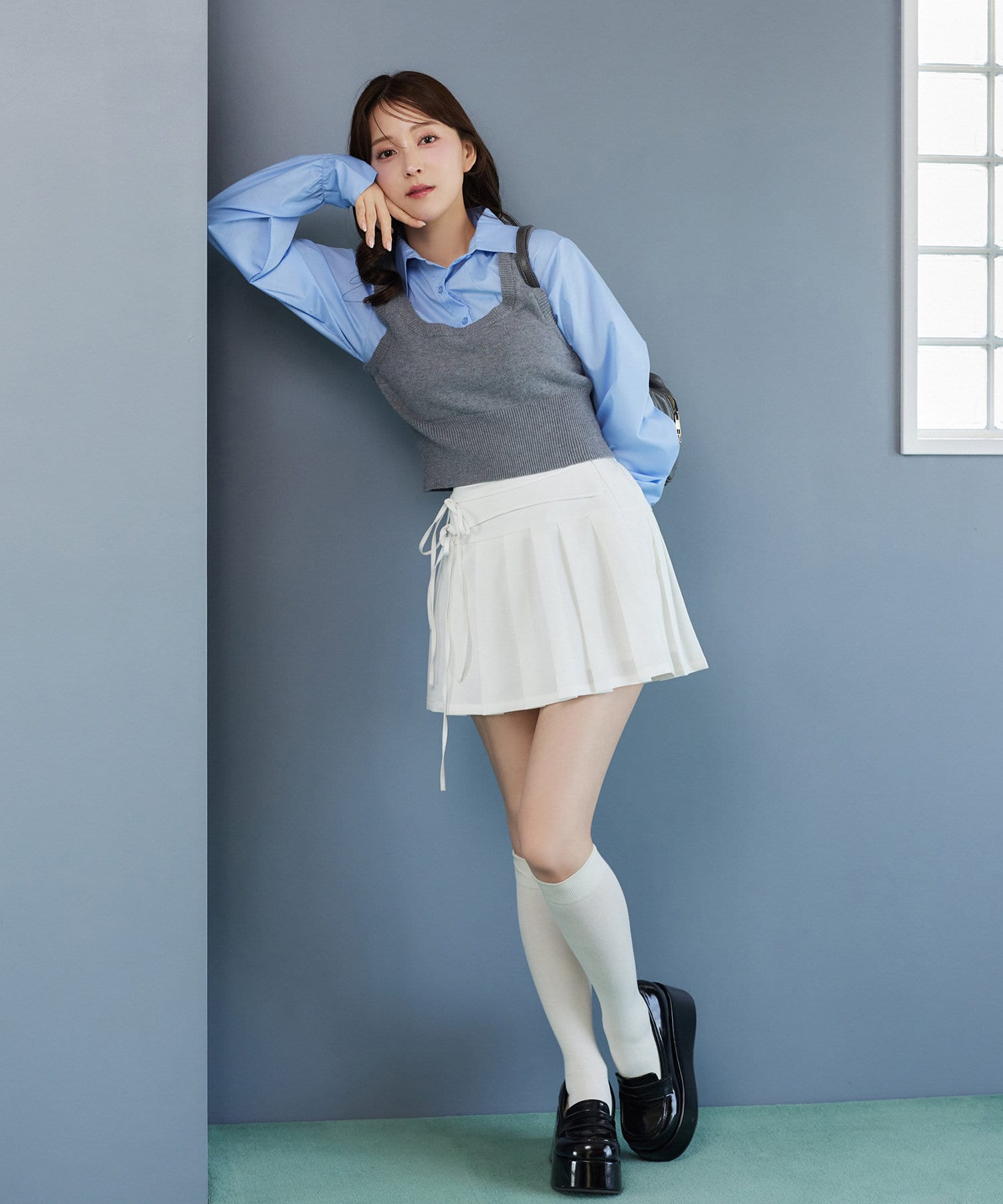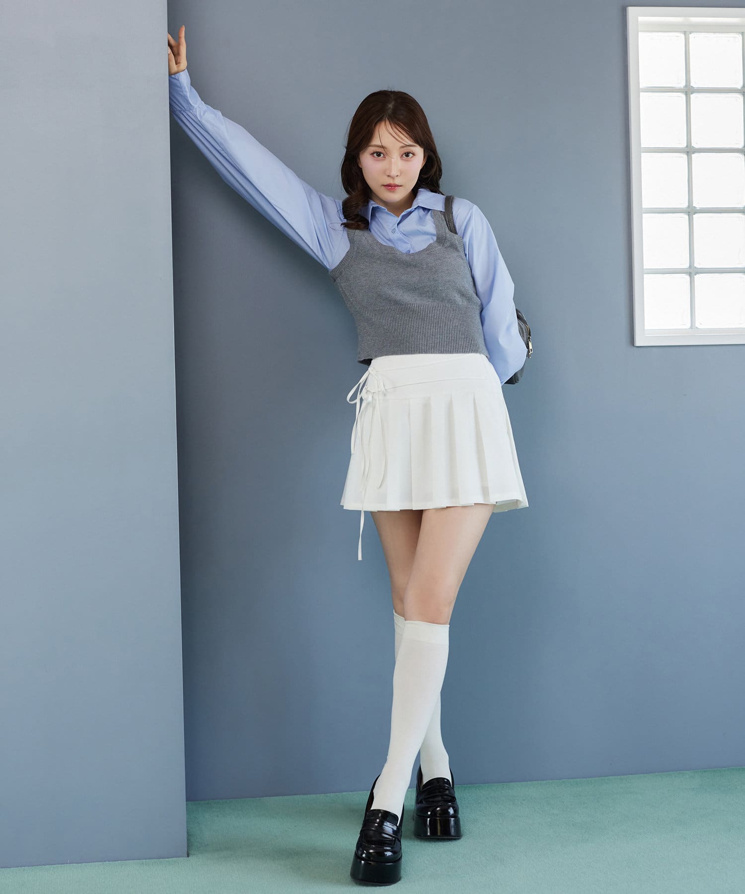 プリーツスカートやタイトスカートと組み合わせると、プレッピーファッションのような印象に。