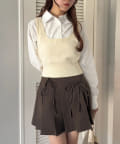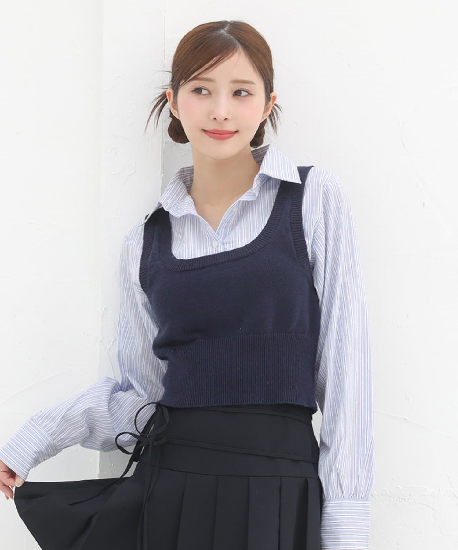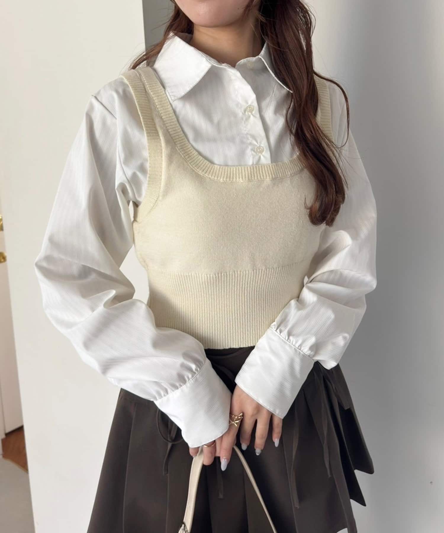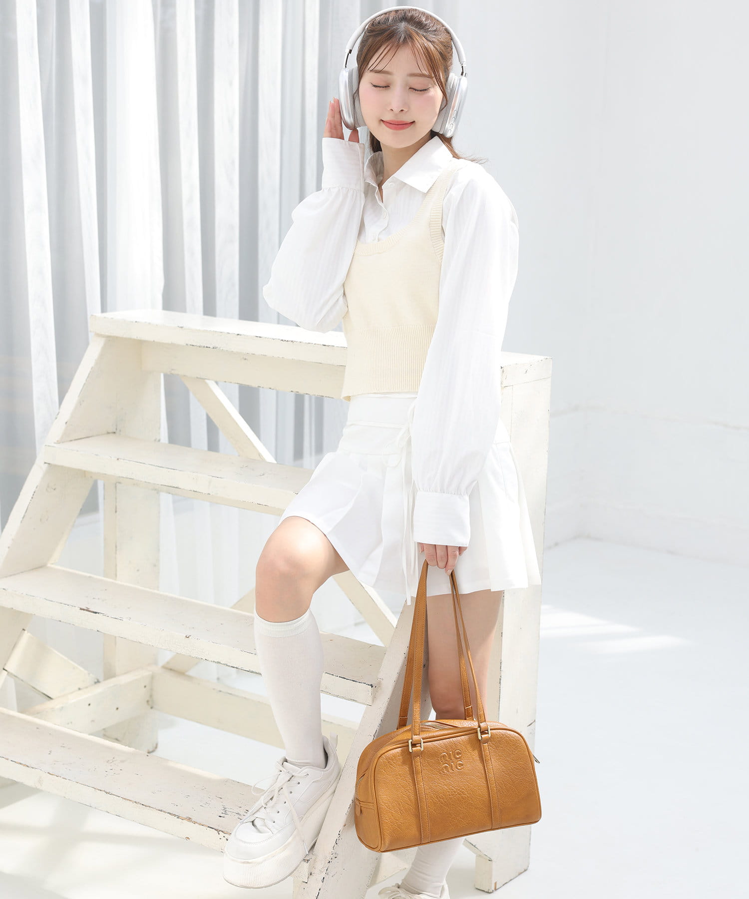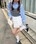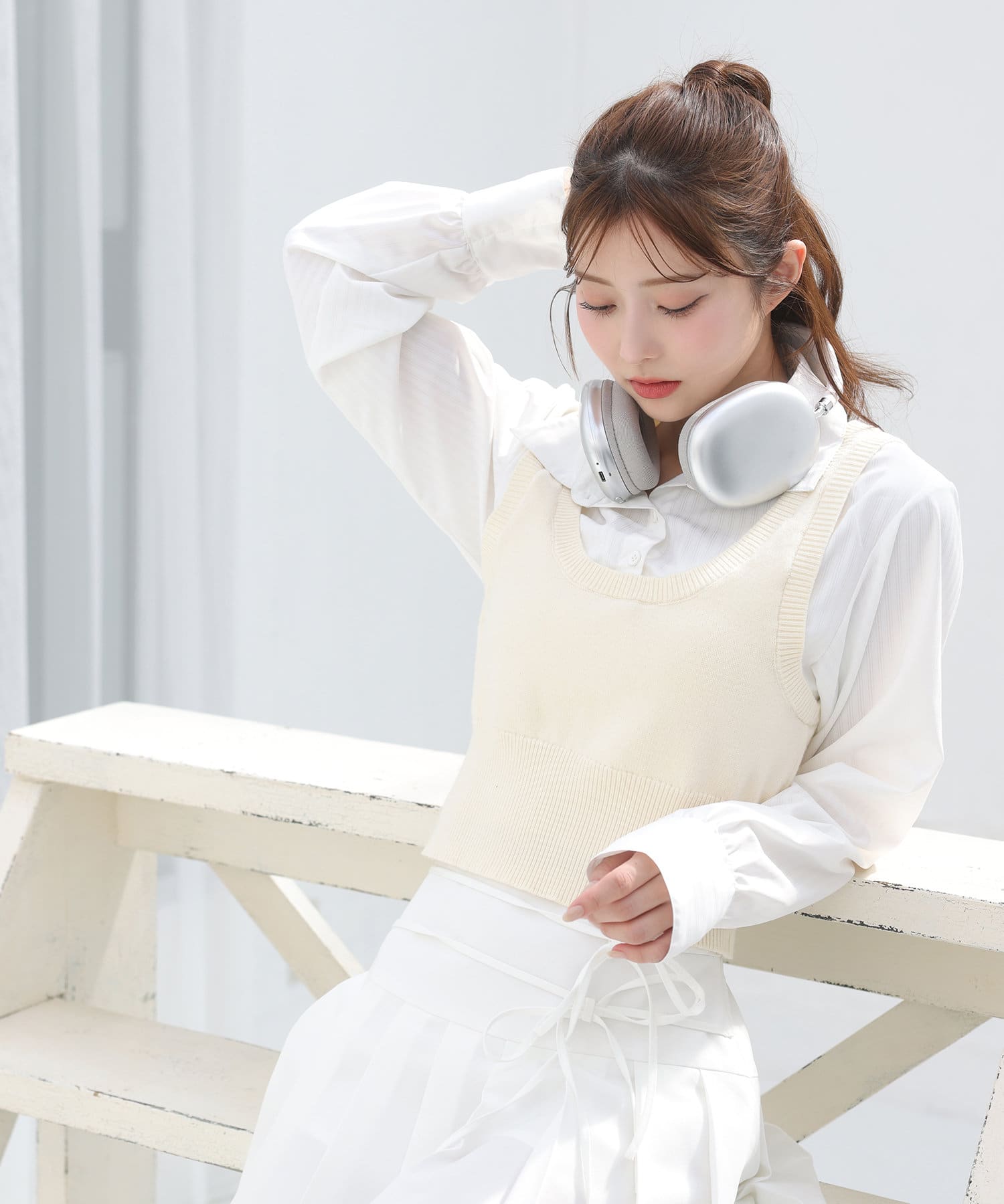 プリーツスカートやタイトスカートと組み合わせると、プレッピーファッションのような印象に。
