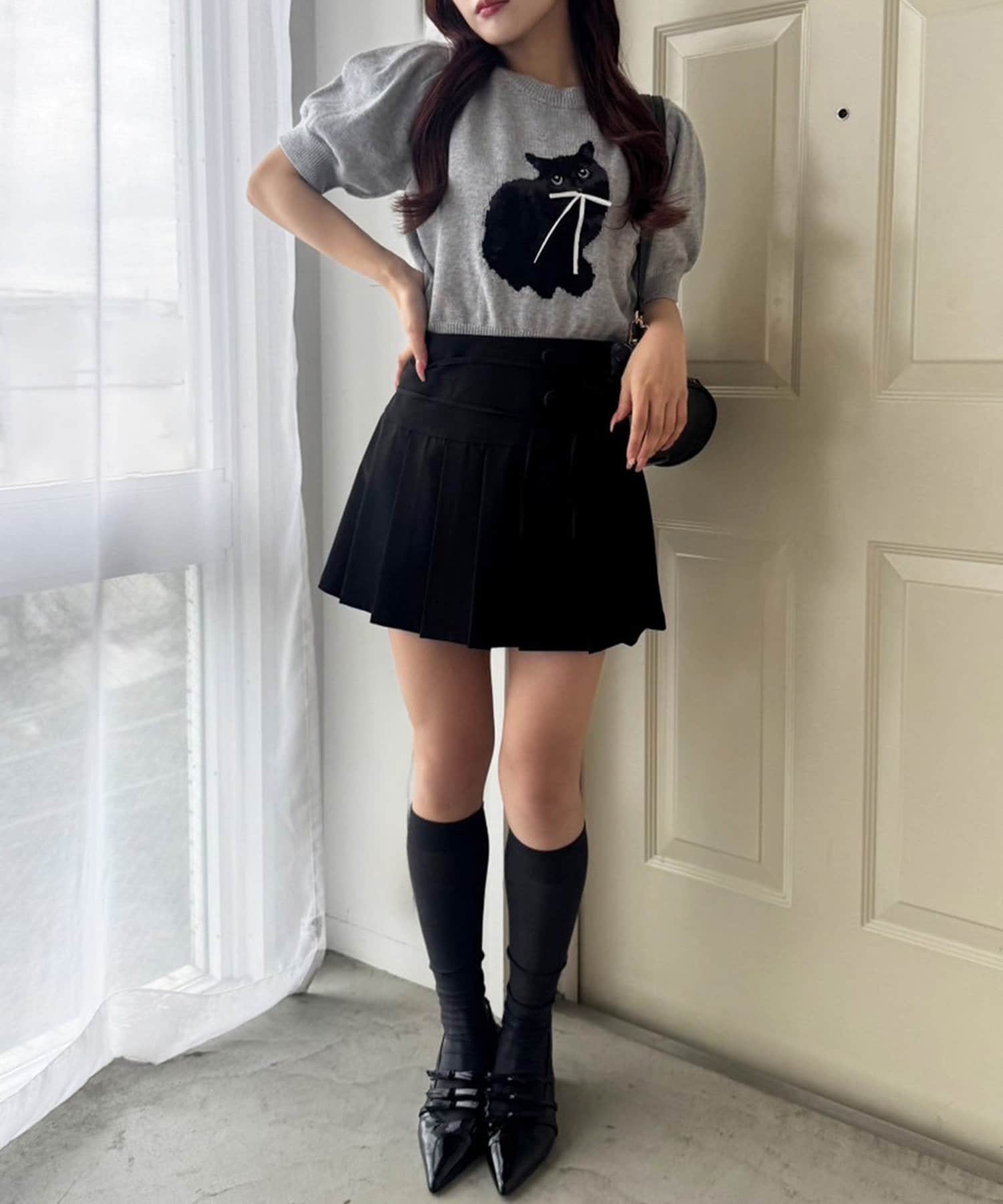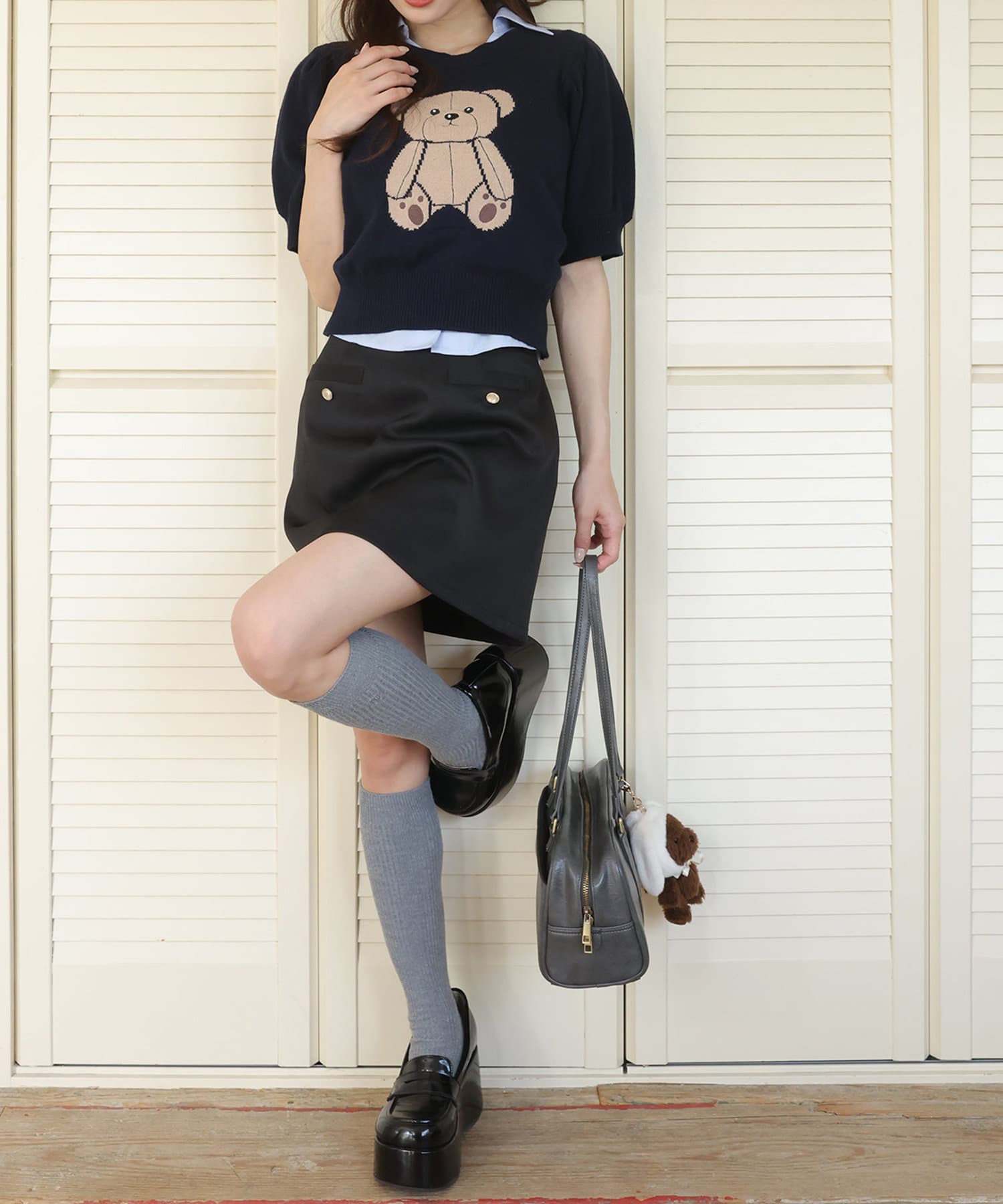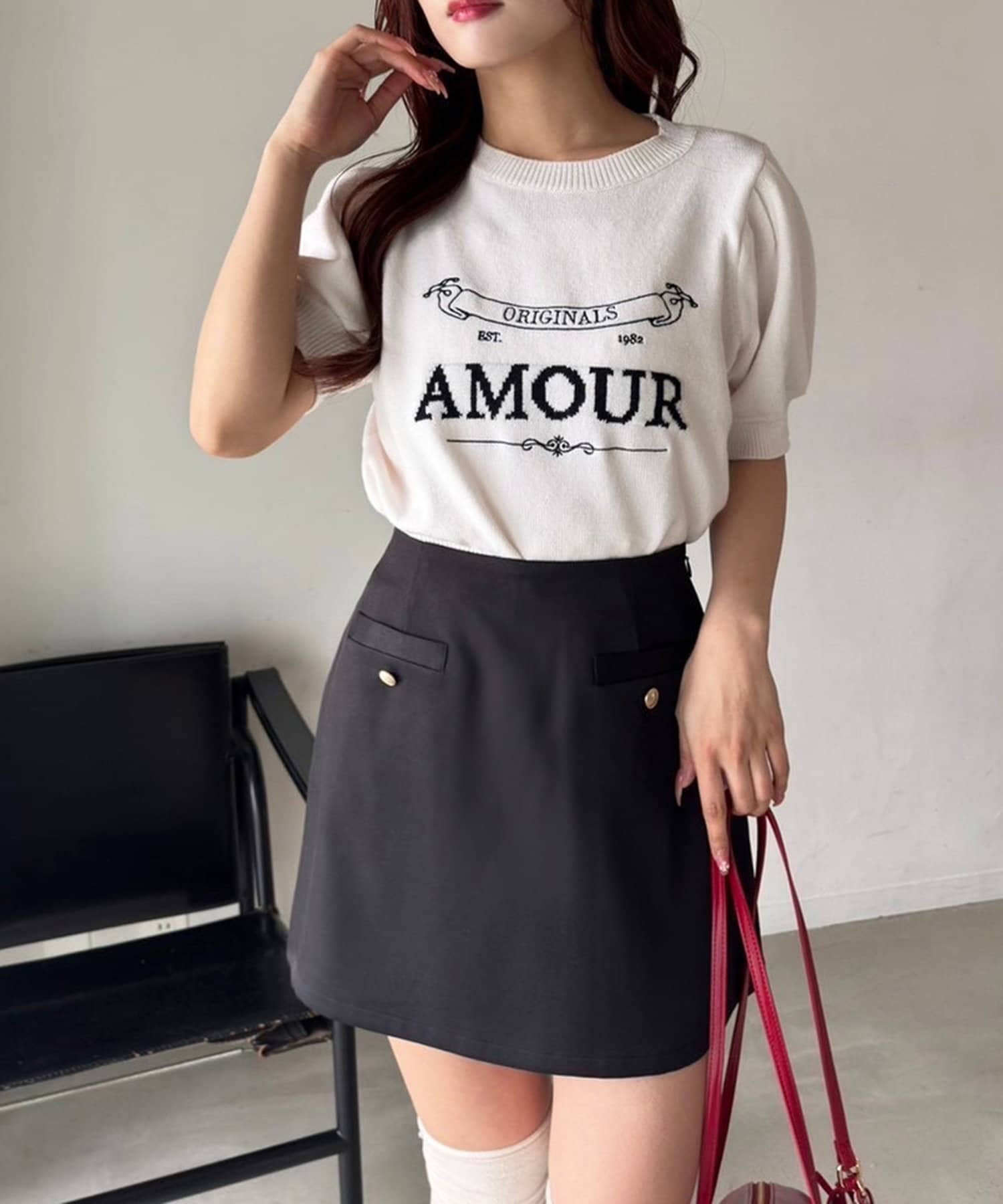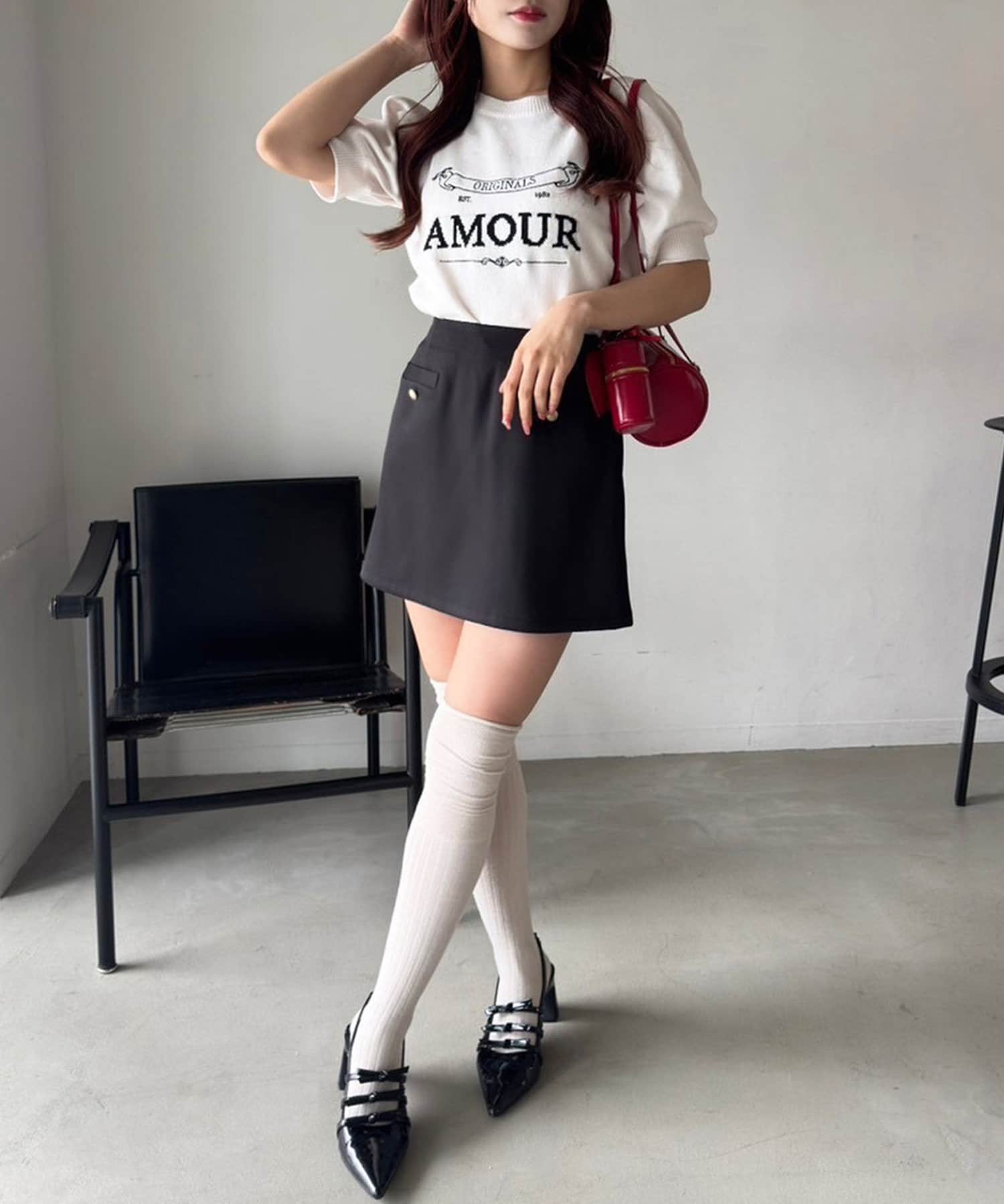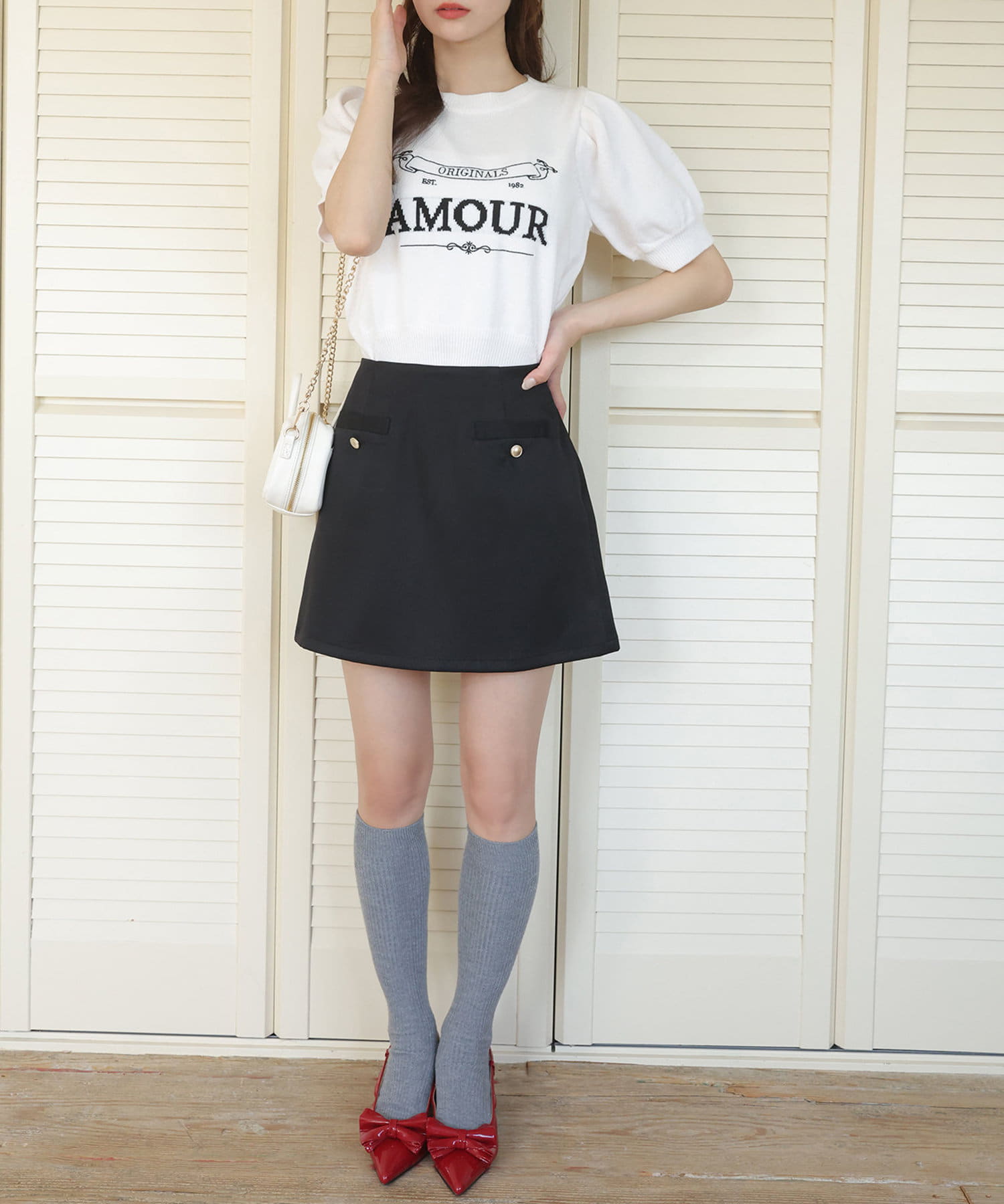 ミニ丈のボトムスと合わせると、王道韓国コーデやカジュアルガーリーコーデが完成します。