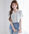 フロントのゴールドボタンが、コーディネートのアクセントに。