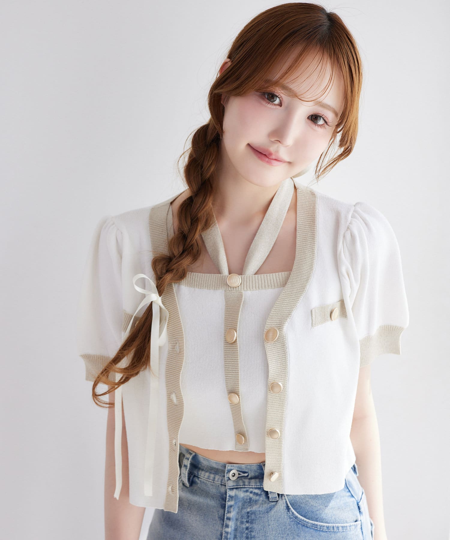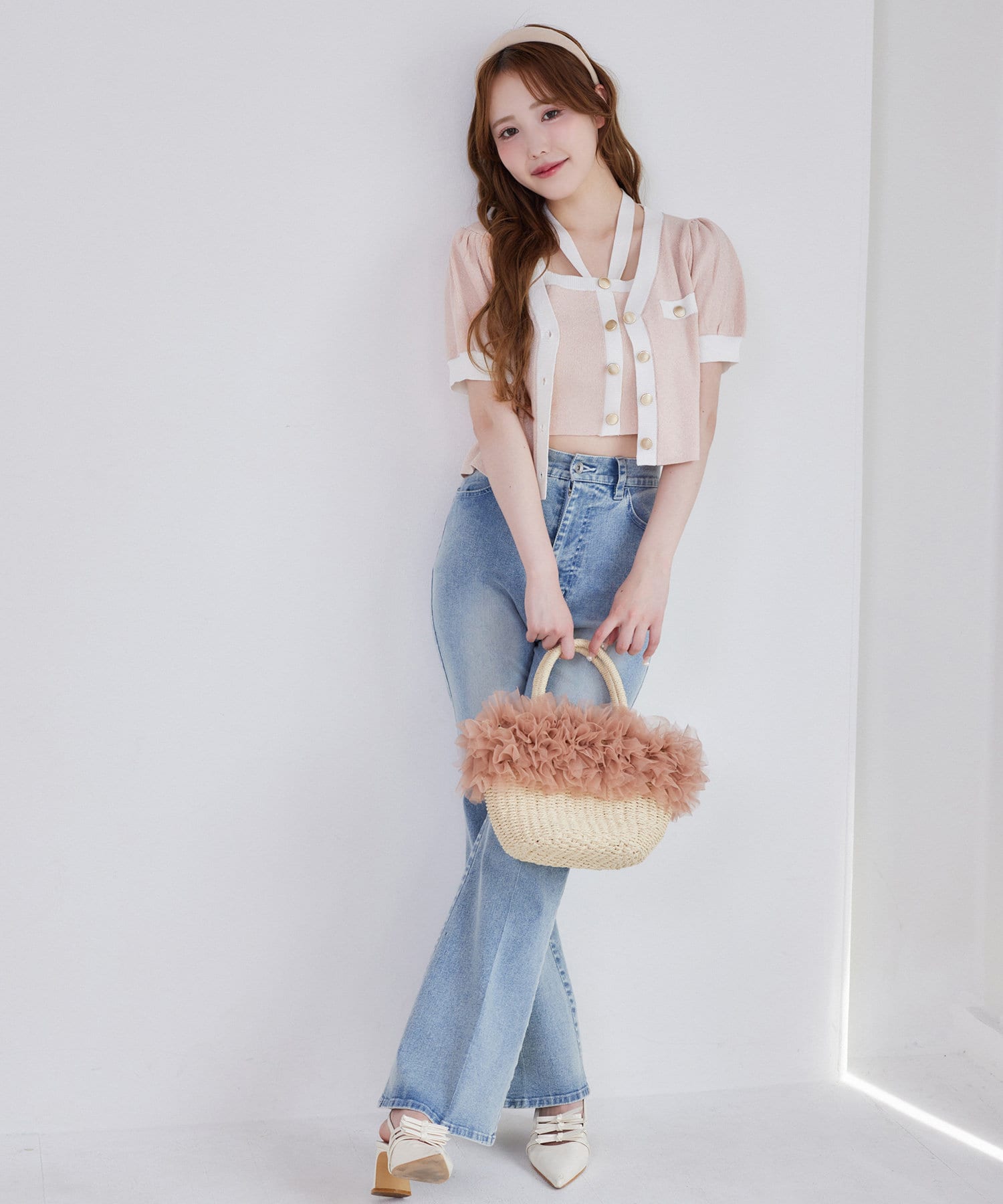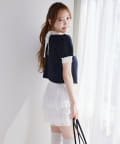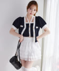 ミニスカートと合わせて、ガーリーな雰囲気に◎